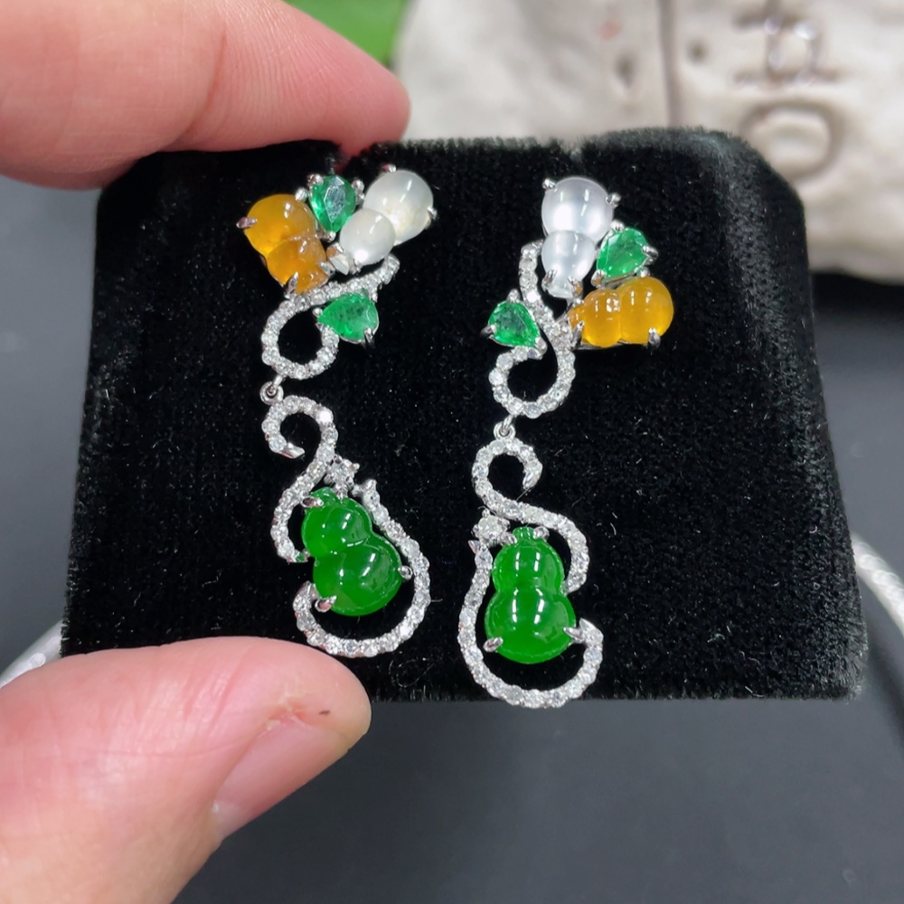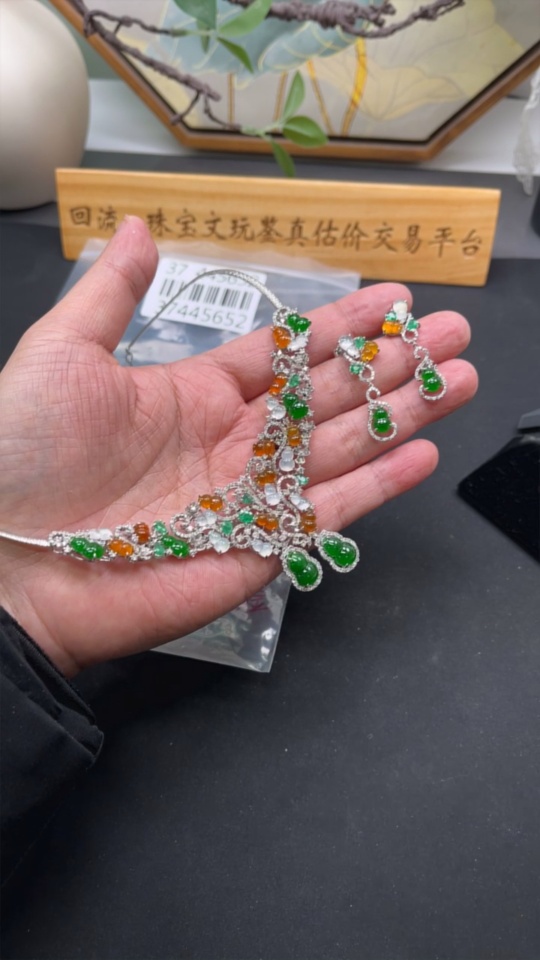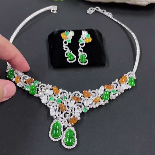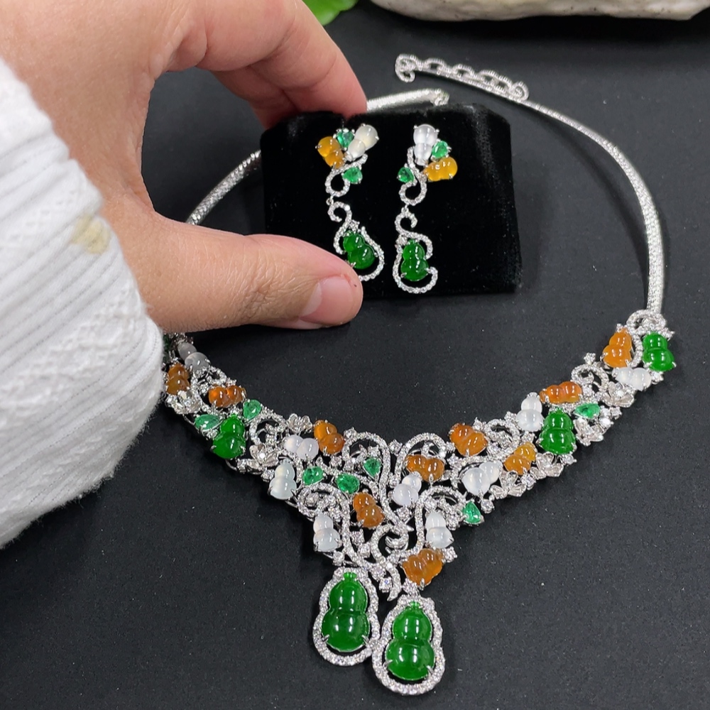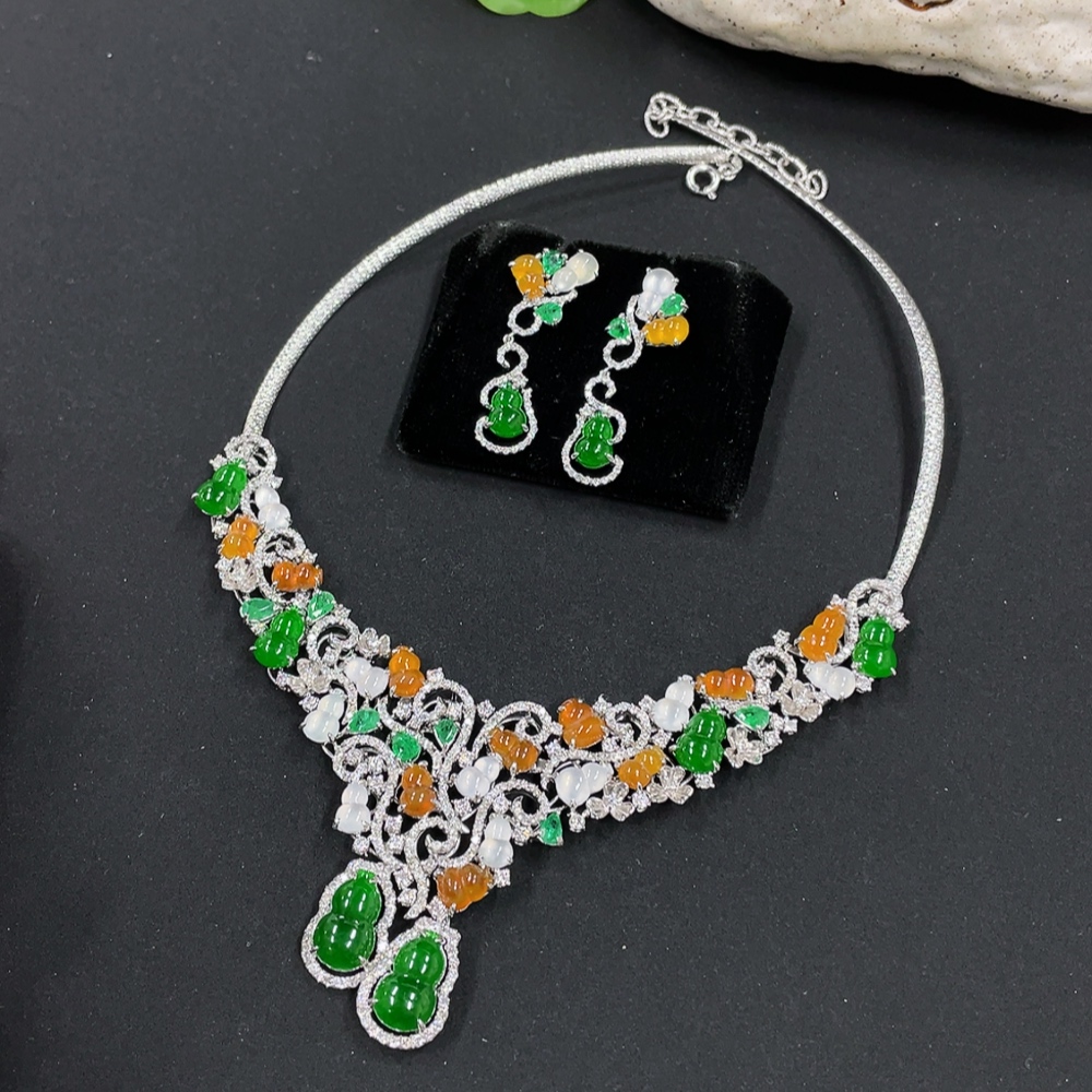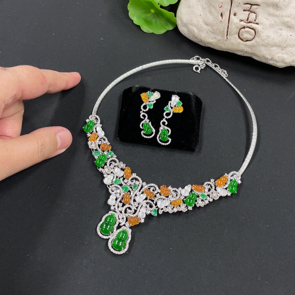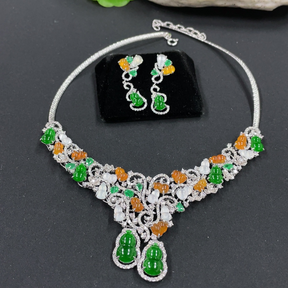 Jadeite Gourd Inlaid Necklace Set with Earrings