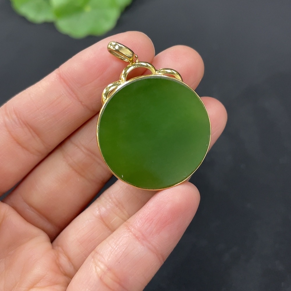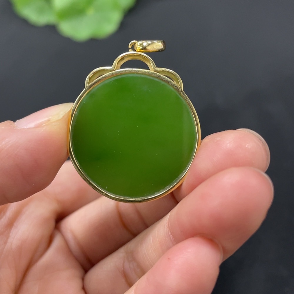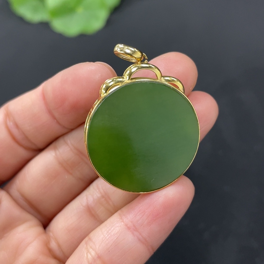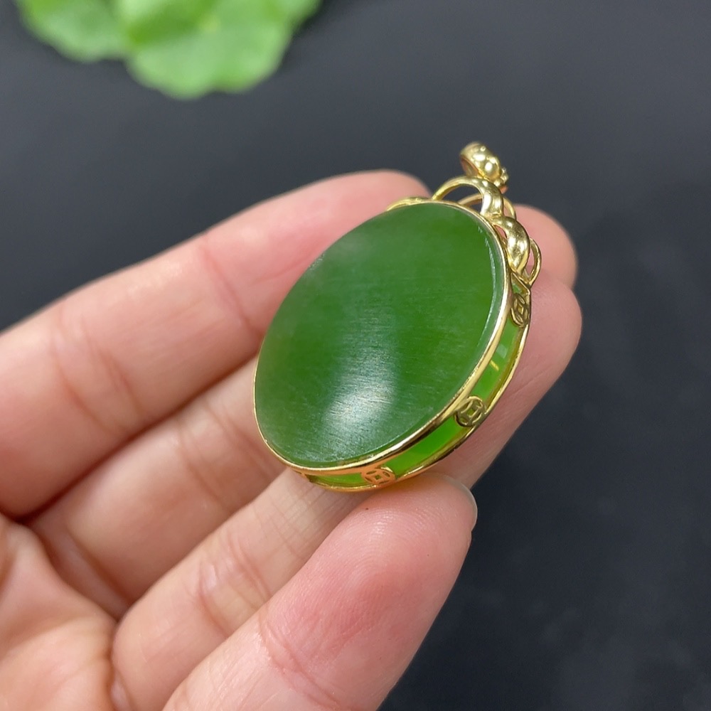 Hetian Jade Jasper Inlaid Pendant, Plain Pendant, 18k Gold, Total Weight Approx. 8.1g