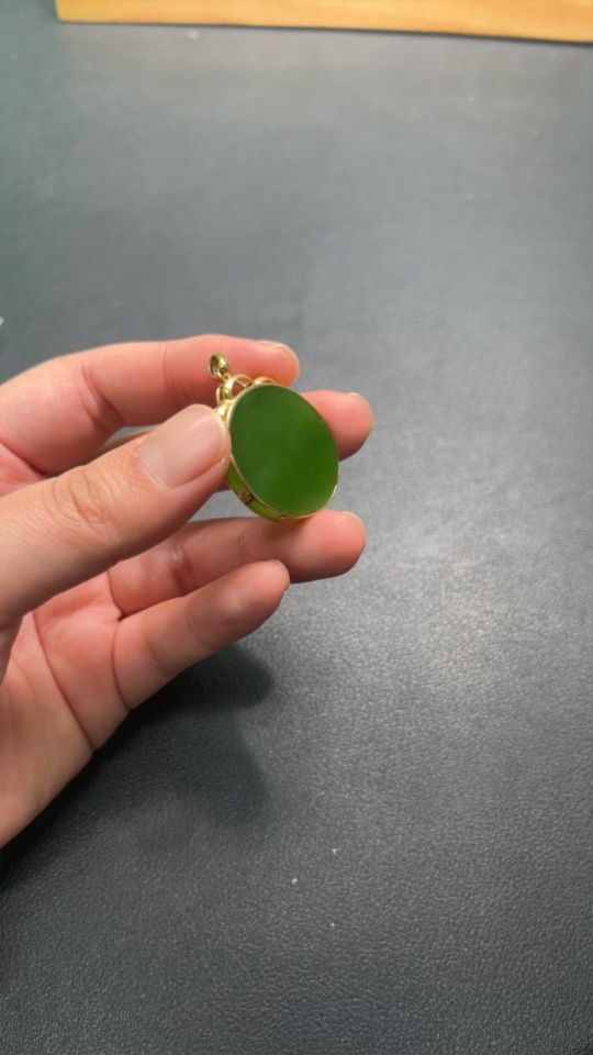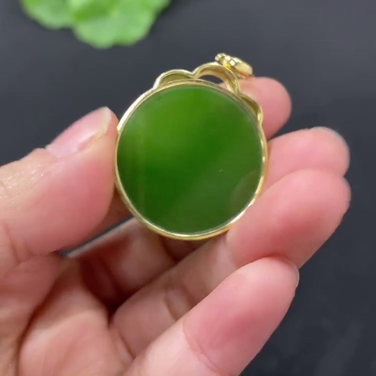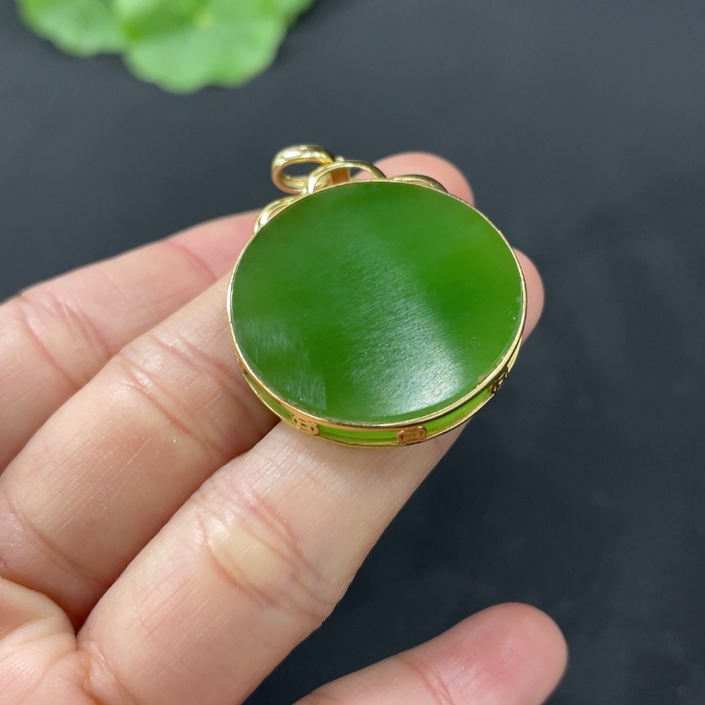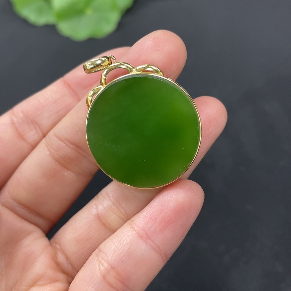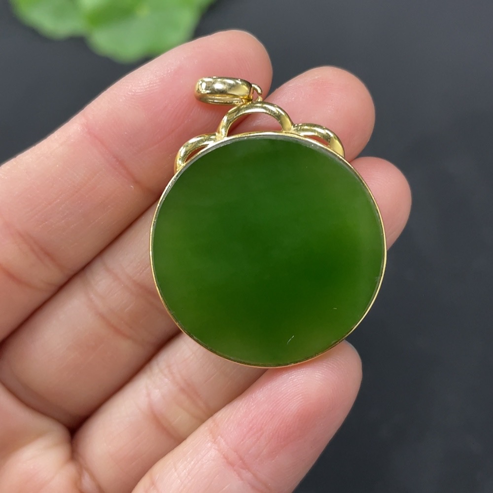 Hetian Jade Jasper Inlaid Pendant, Plain Pendant, 18k Gold, Total Weight Approx. 8.1g