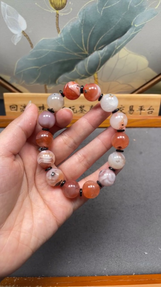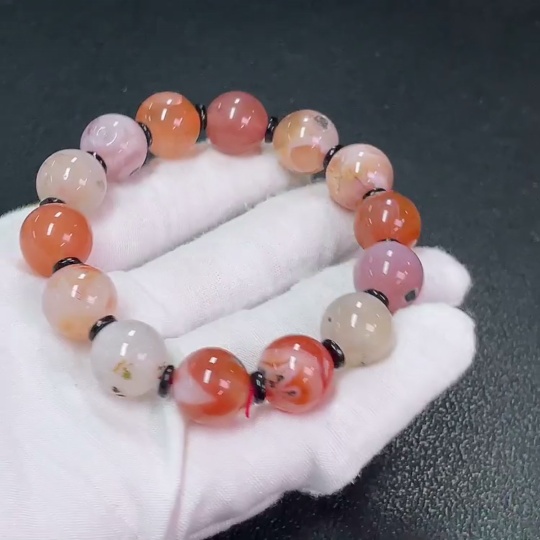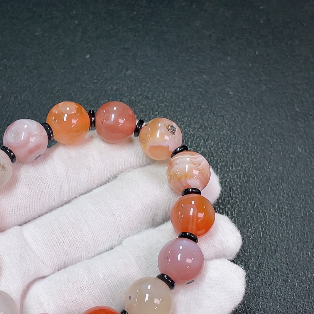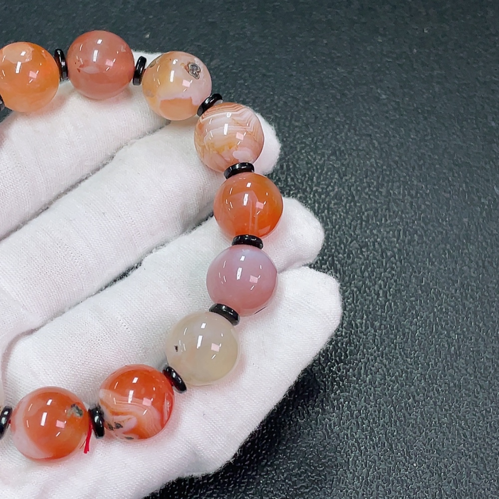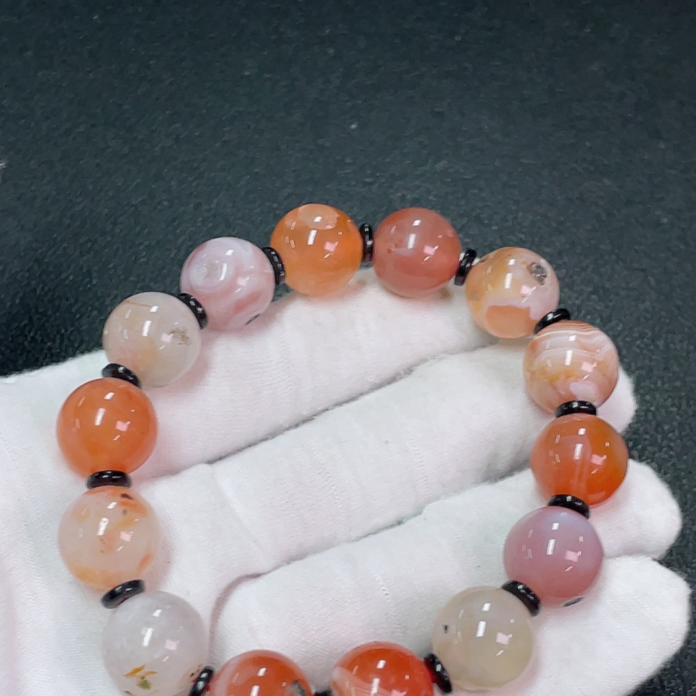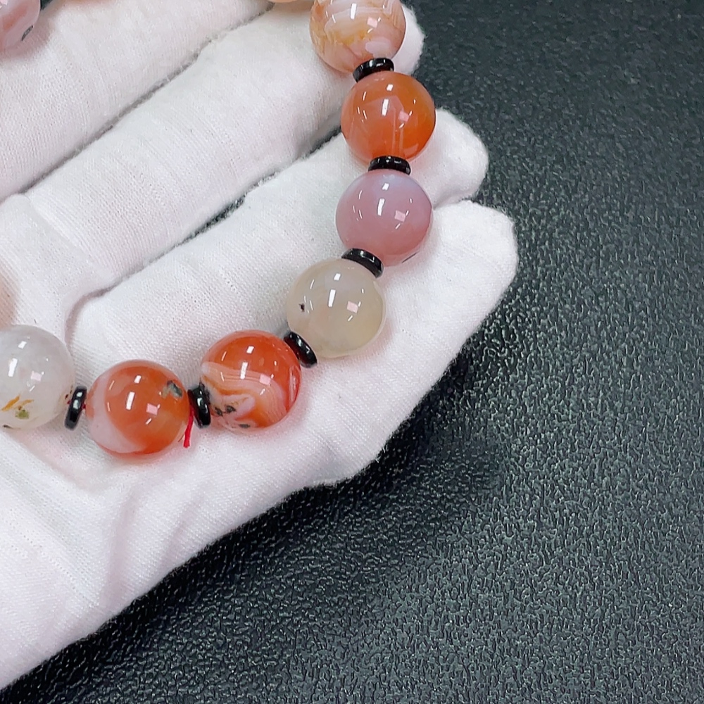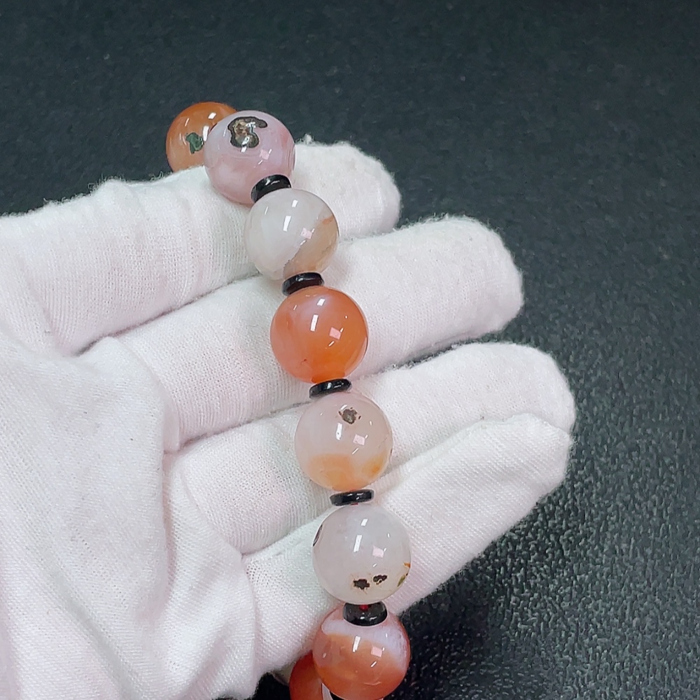 Red Agate Bracelet with Visible Organic Matter, Non-Natural Accent Stones, Total Weight Approx. 48.91g, Size About 13.4mm (Miscellaneous Stones)