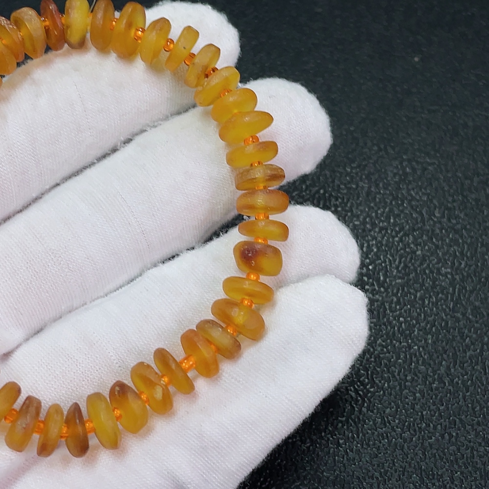 Amber Beeswax Bracelet with Non-Natural Accent Stones, Total Weight Approx. 6.94g, Size About 8.6mm