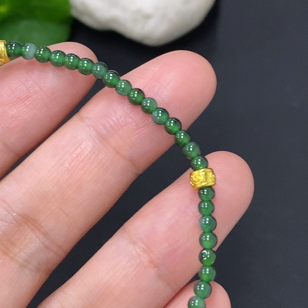 Jadeite Bead Necklace Approx. 2.8mm Non-Gold Total Weight Approx. 3.4g