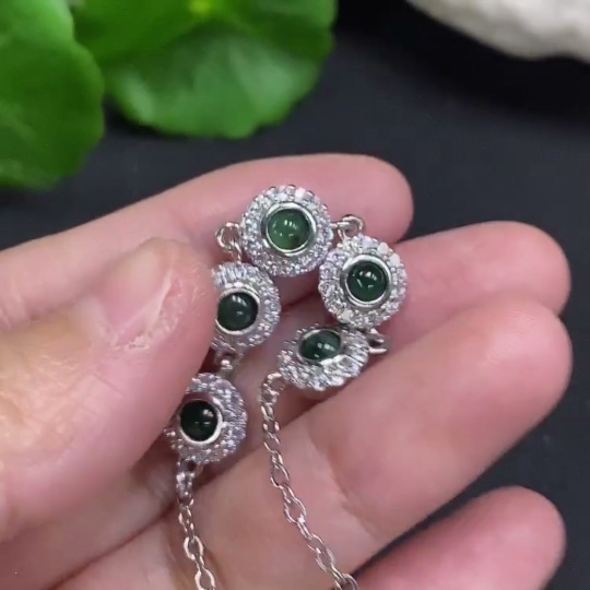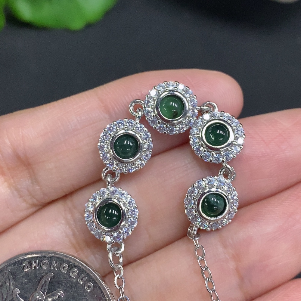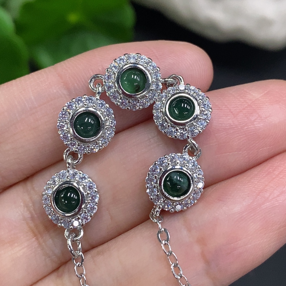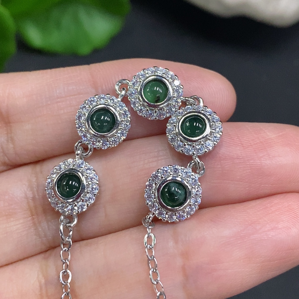 Jadeite Cabochon Inlaid Bracelet Non-Gold Setting Total Weight Approx. 6g