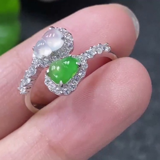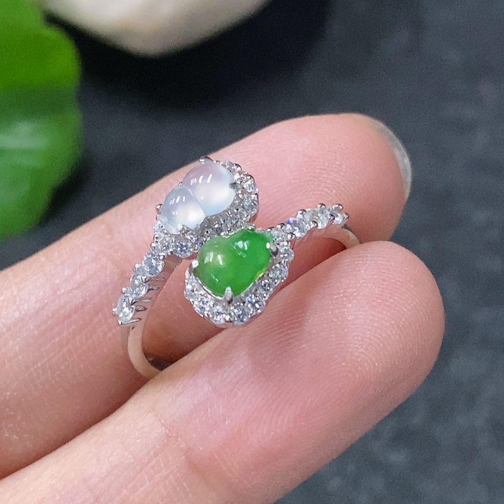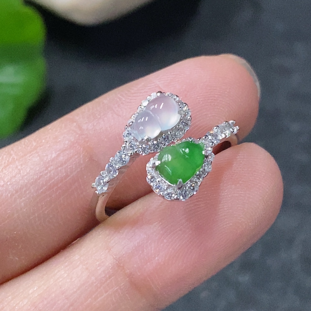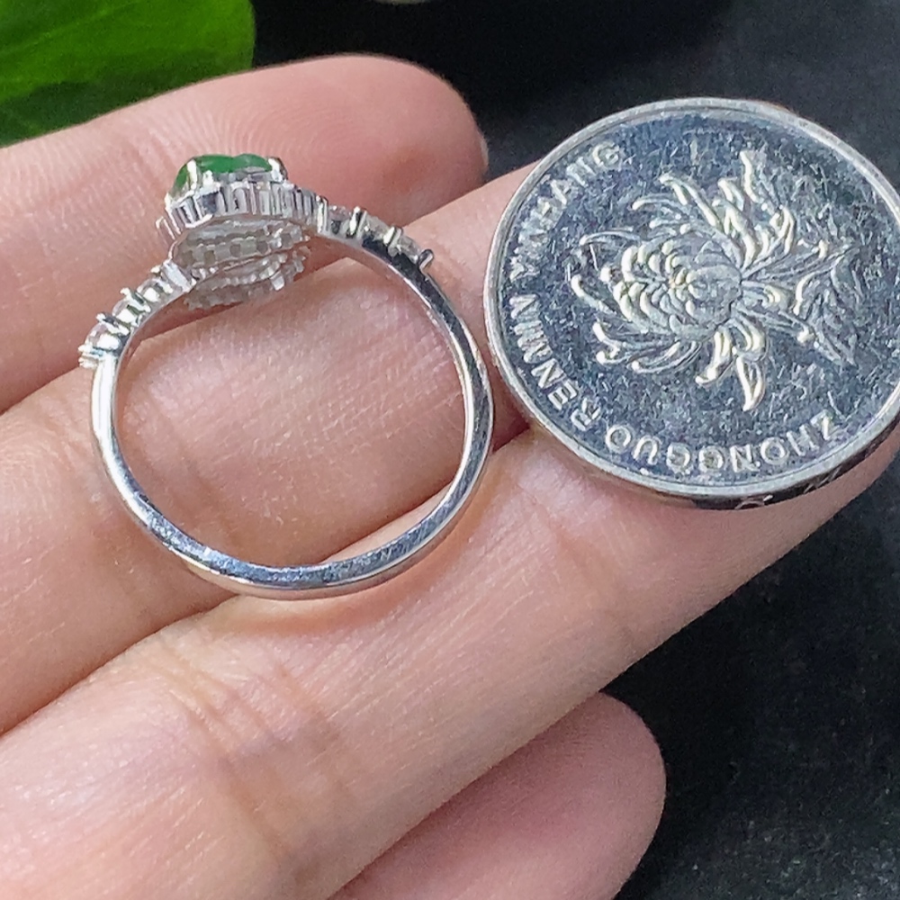 Jadeite Inlaid Ring Non-Gold Adjustable Total Weight Approx. 2.15g