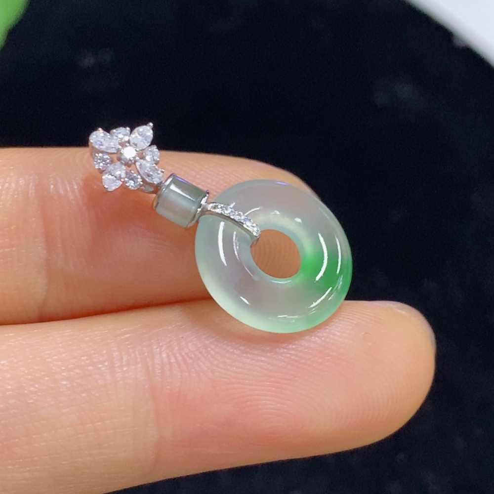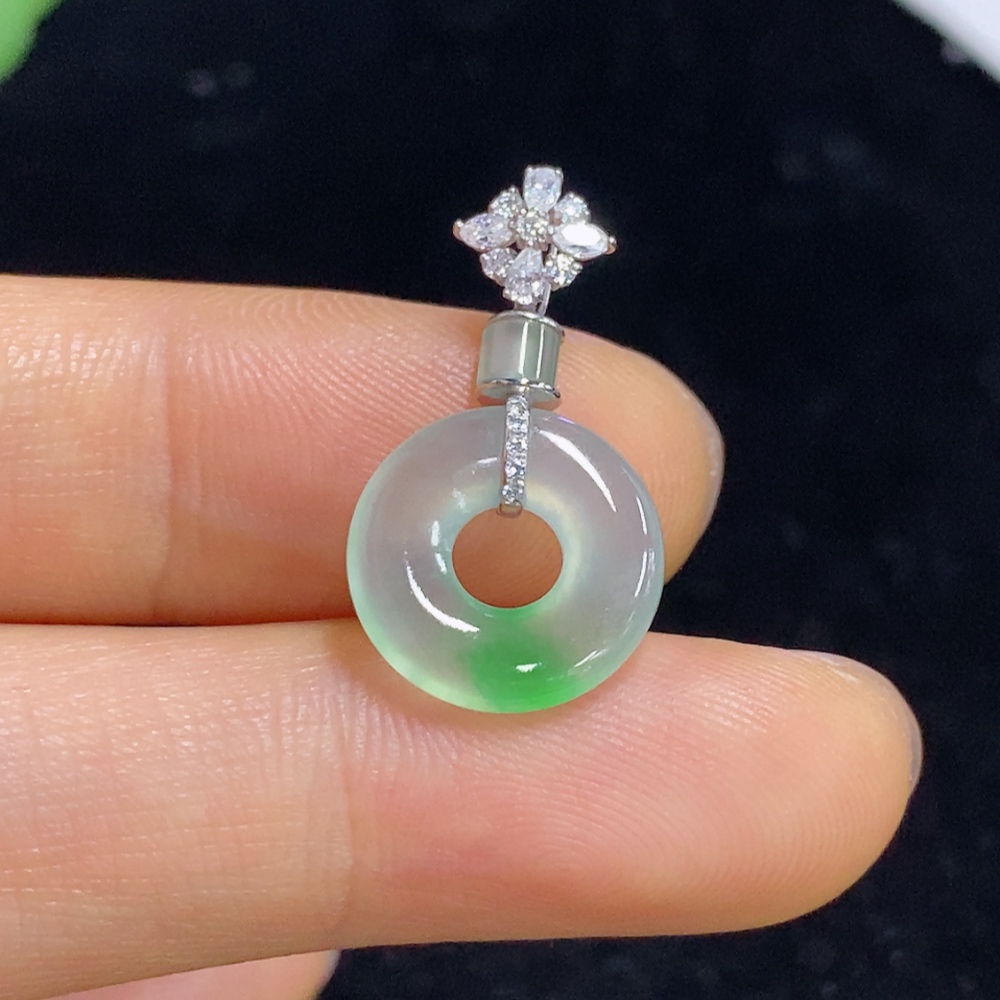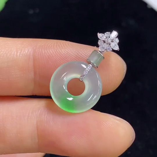 Jadeite Pendant with 18k Clasp, Total Weight Approximately 1.3g