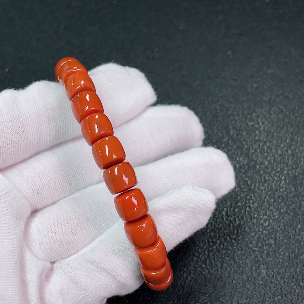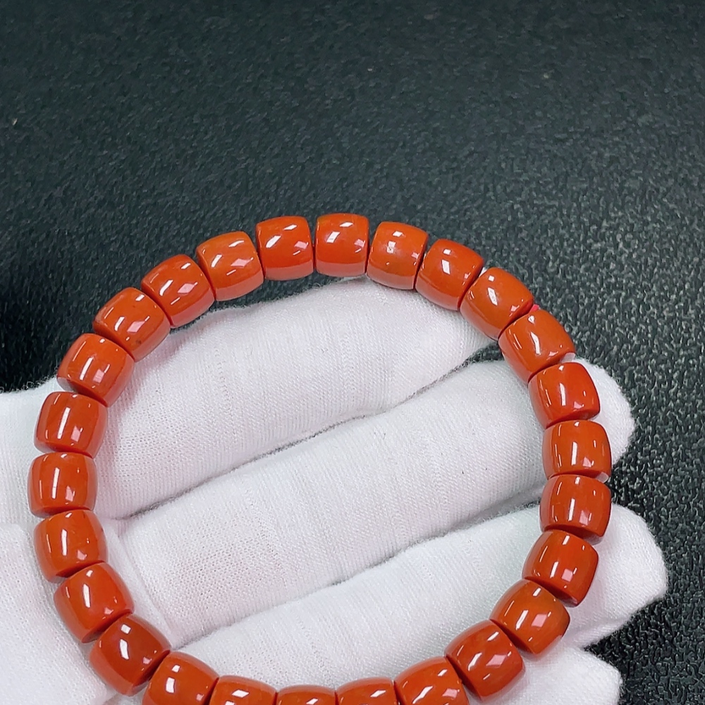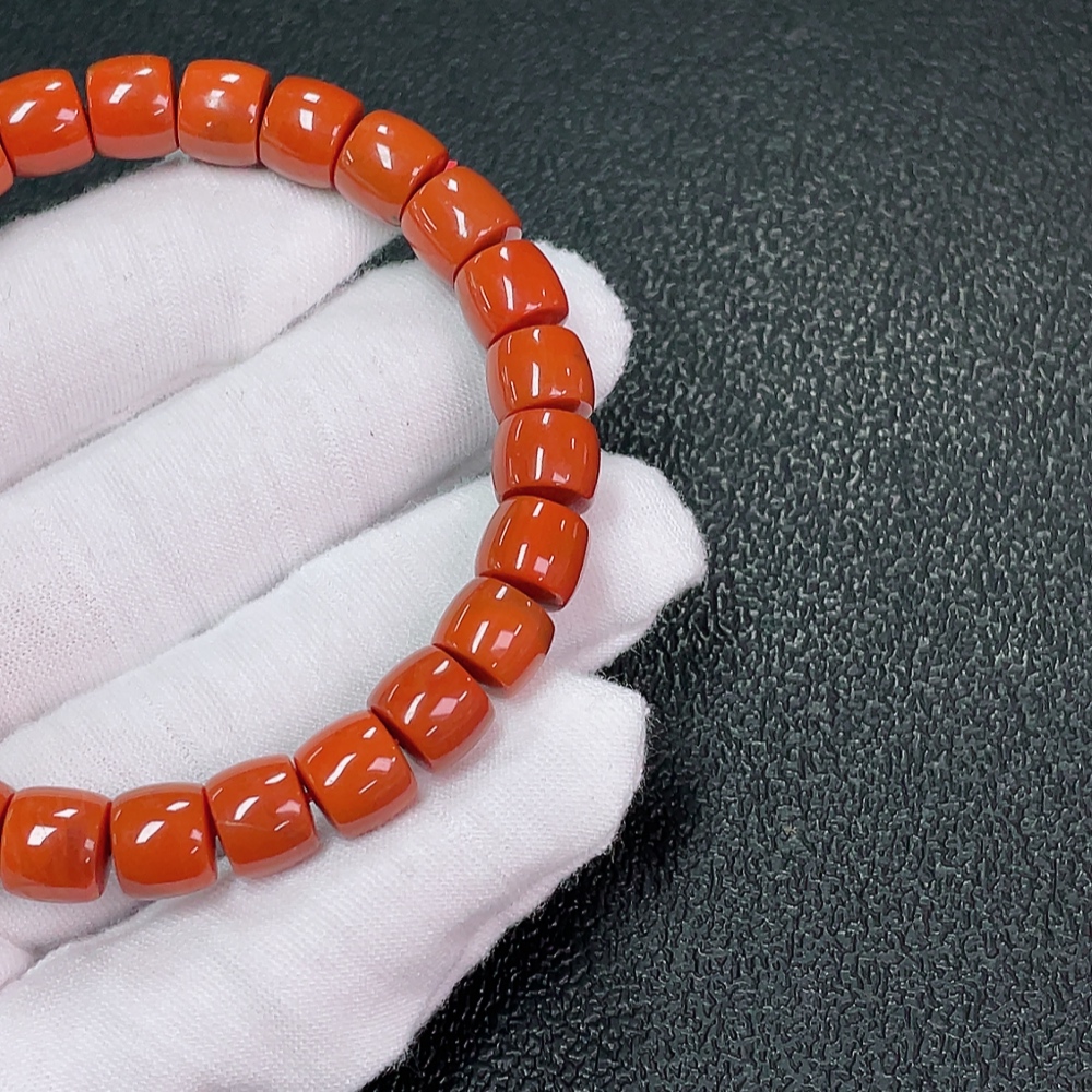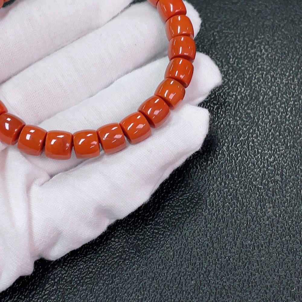 Red Agate Bracelet with Visible Organic Matter, Total Weight Approximately 24.63g, Size About 8.4mm