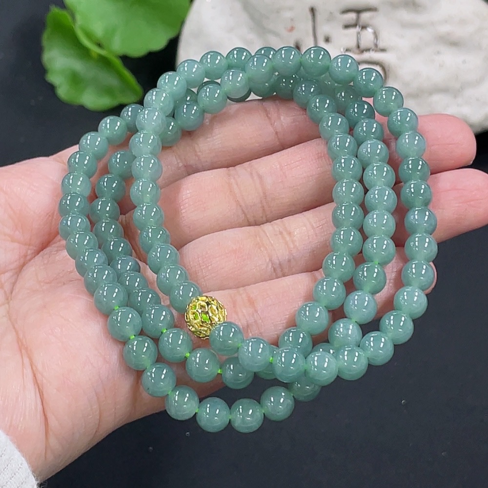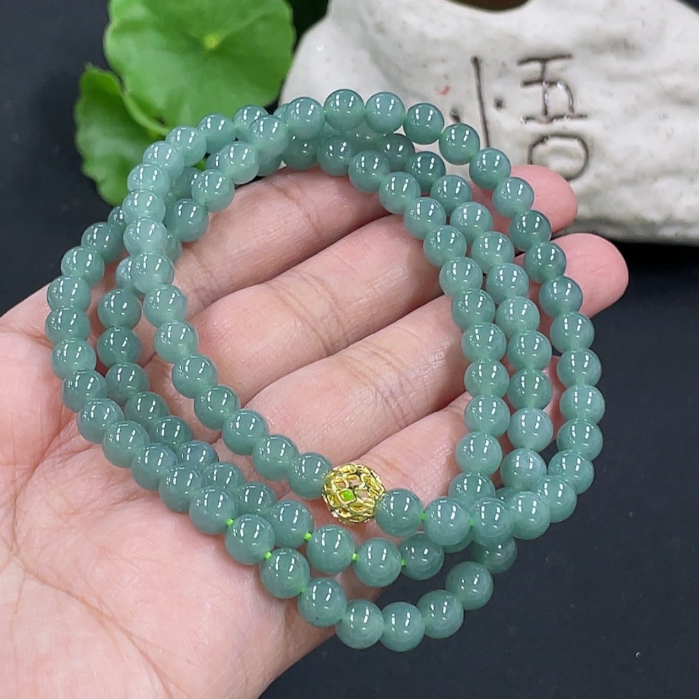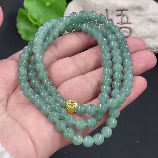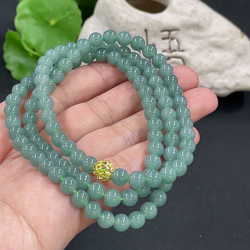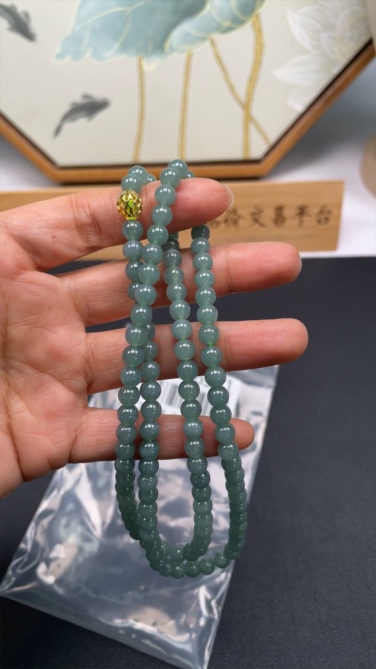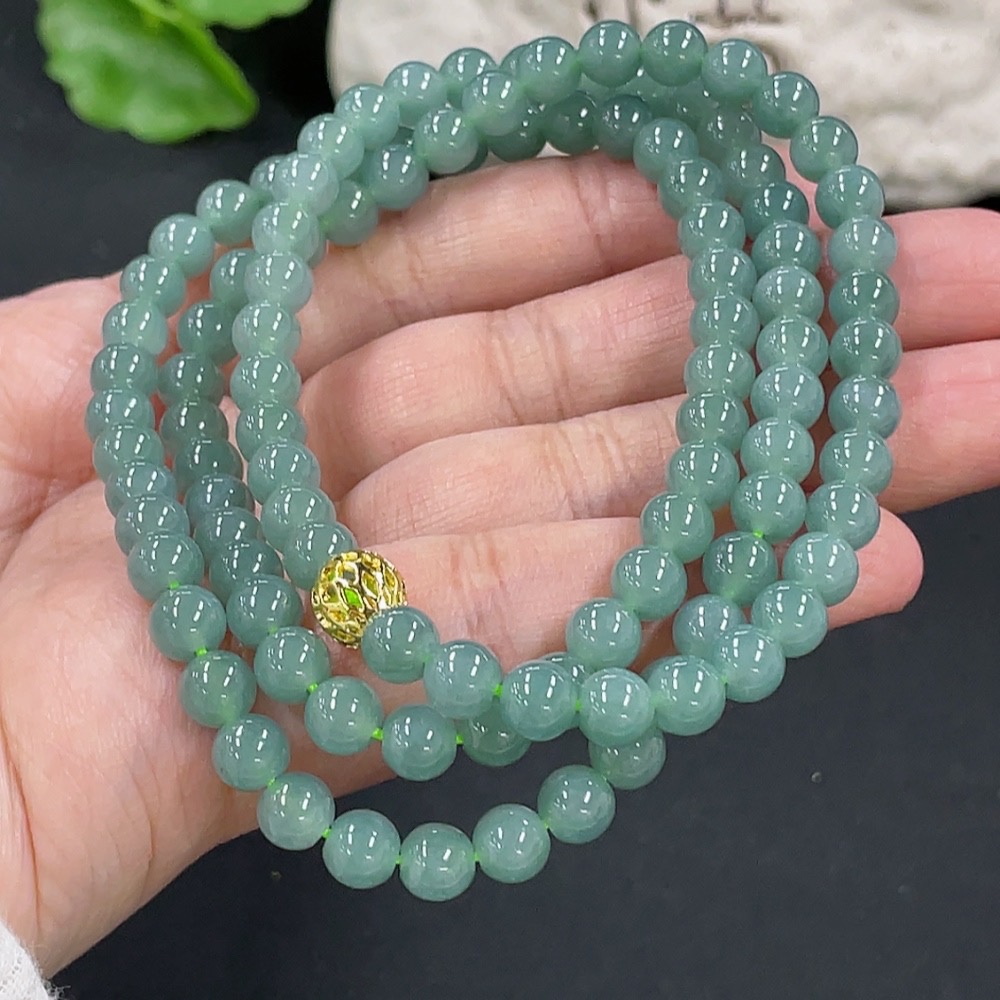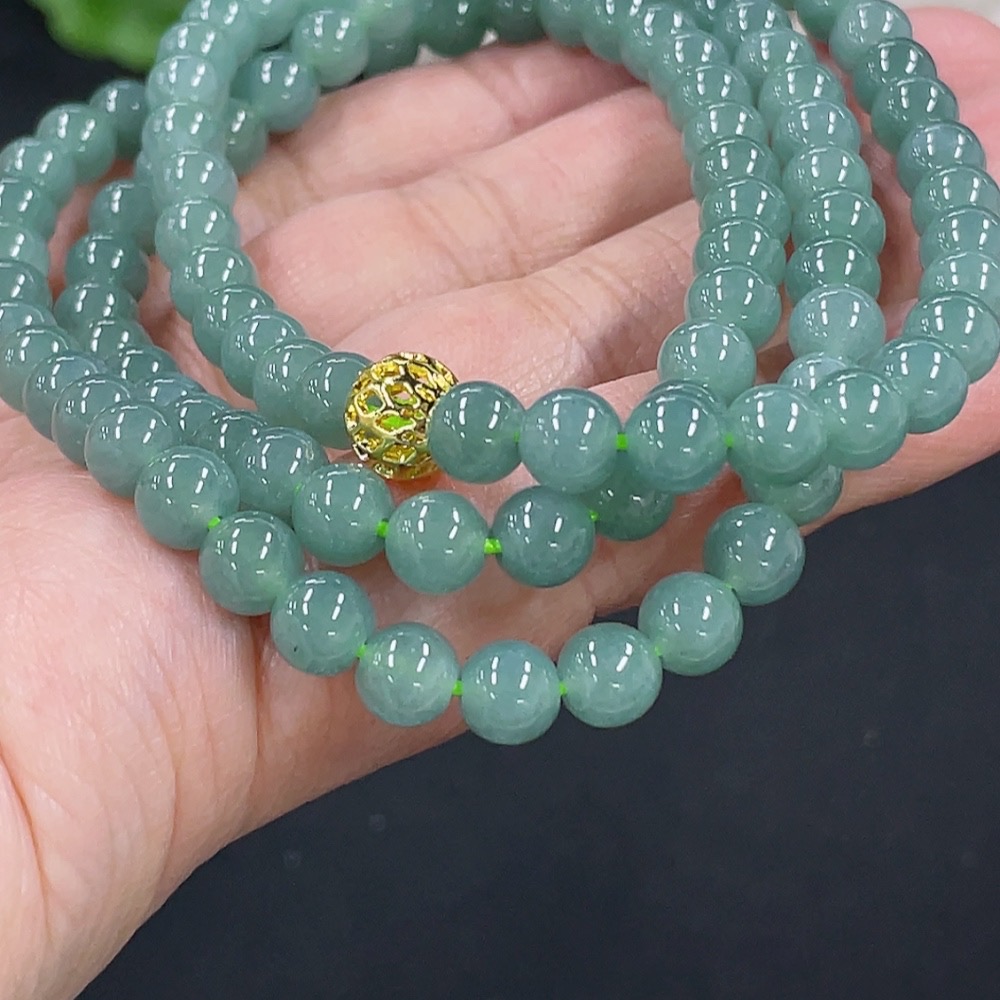 Jadeite Bead Necklace Approx. 5.8mm Non-Gold Total Weight Approx. 37.9g