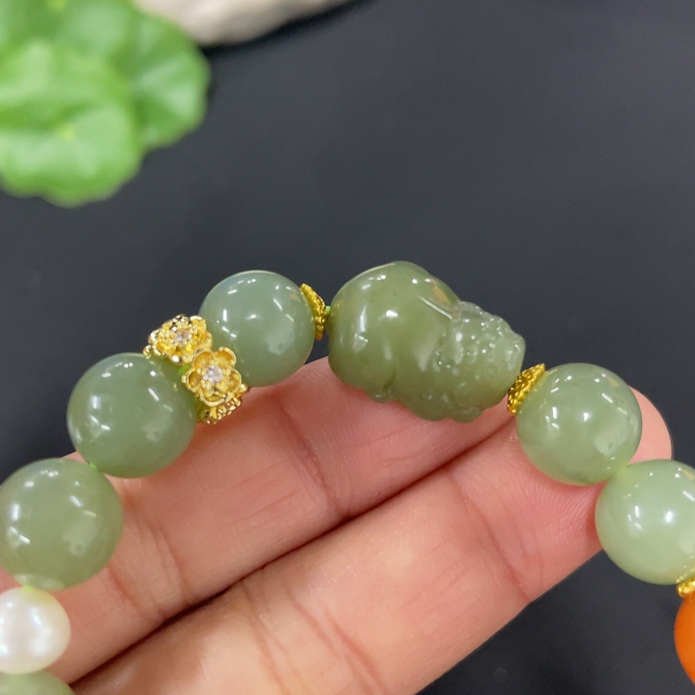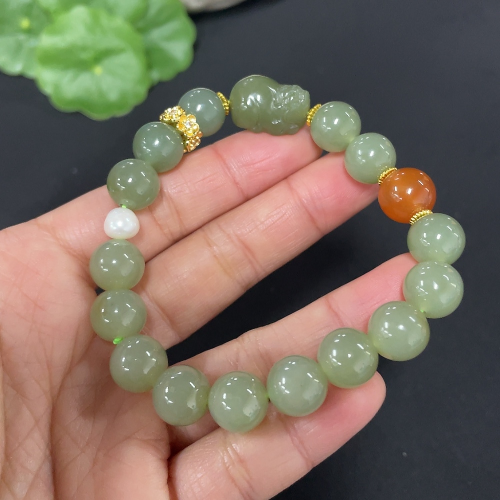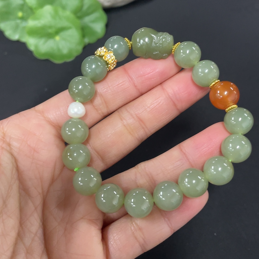 Hetian Jade Bracelet, Approx. 9.7mm, Non-Gold Inlaid, Total Weight Approx. 29.1g, Beads Not Hetian Jade