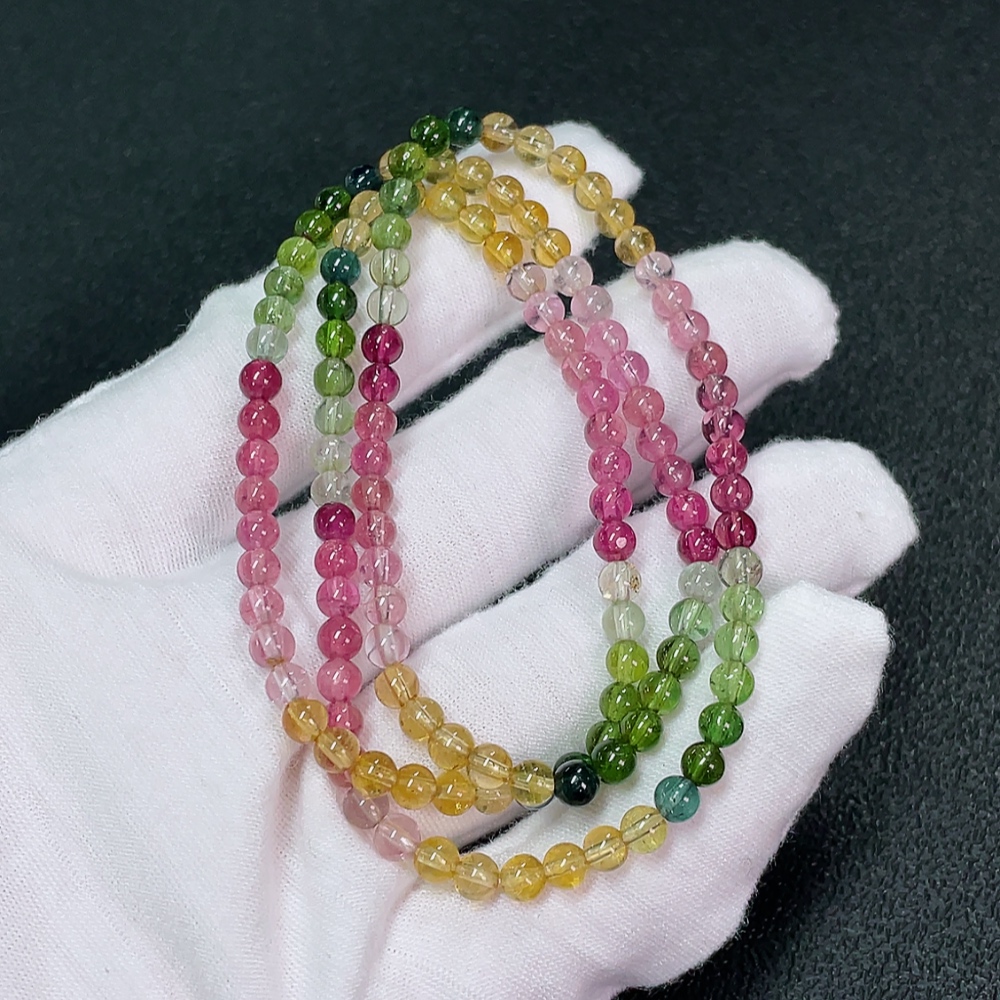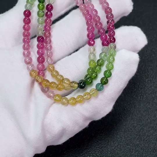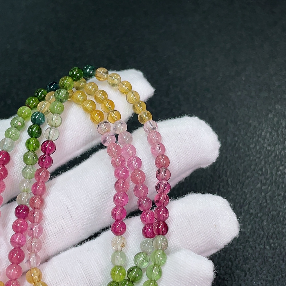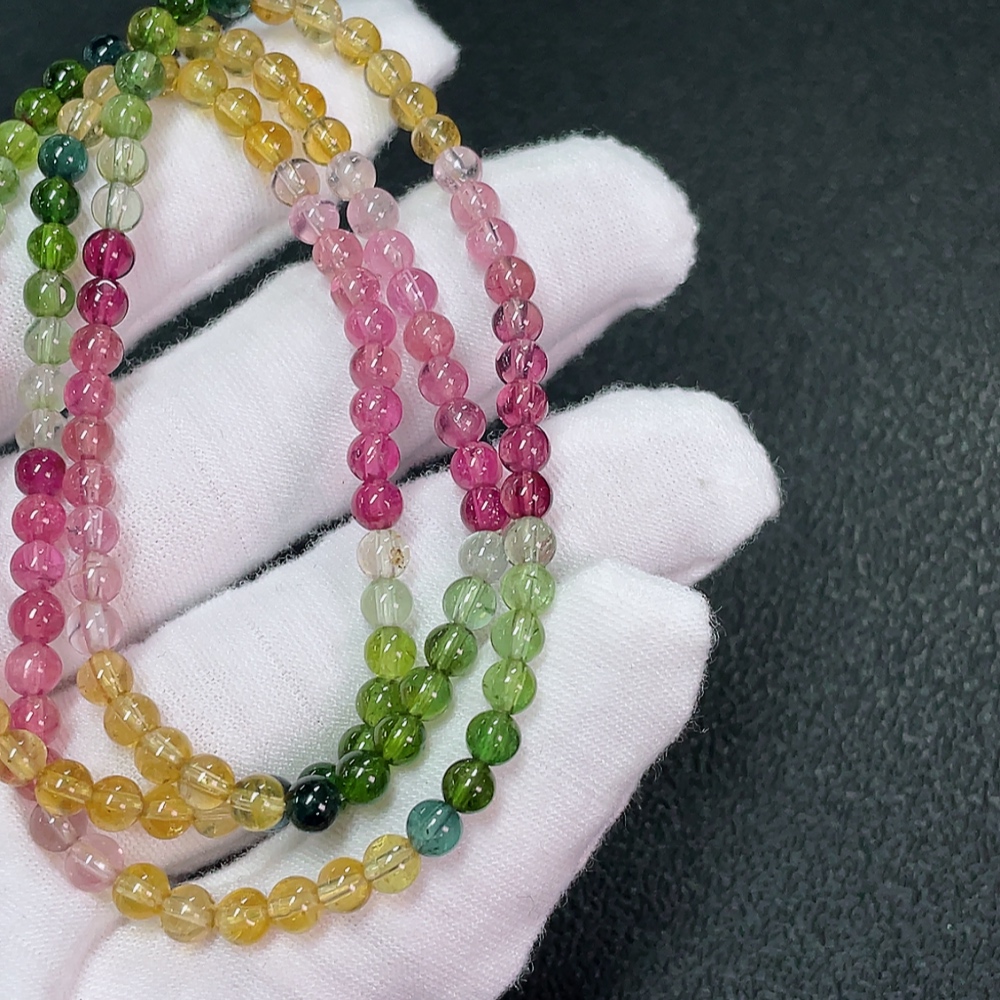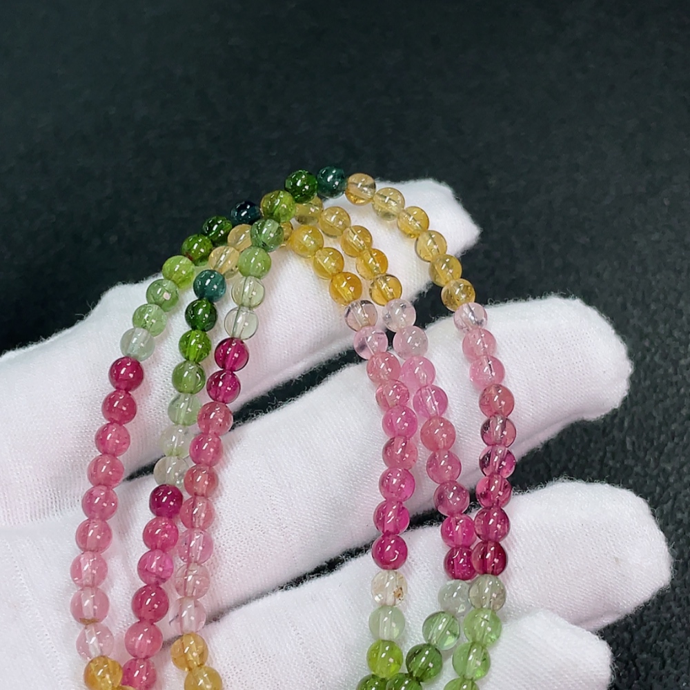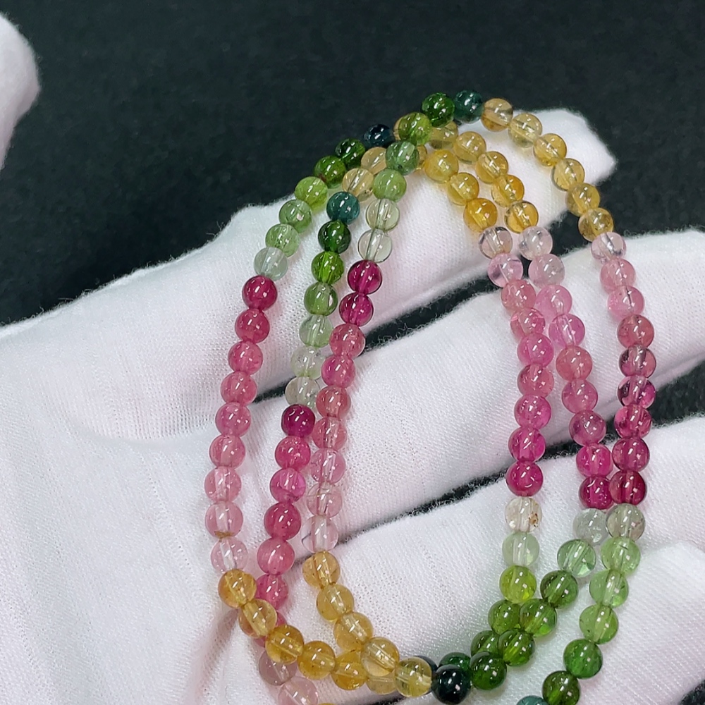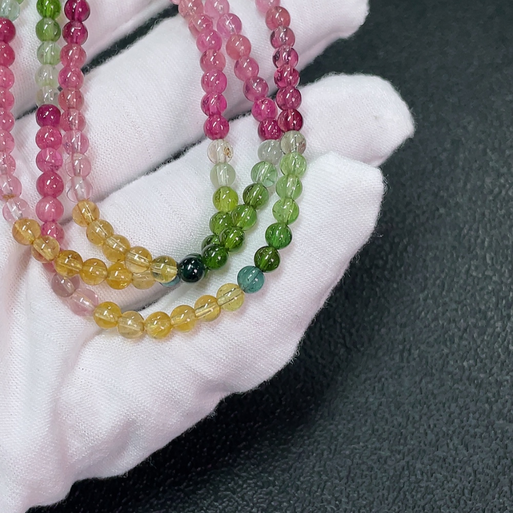 Tourmaline Bead Necklace with Visible Organic Matter, Total Weight Approx. 15.67g, Bead Size About 4.2mm