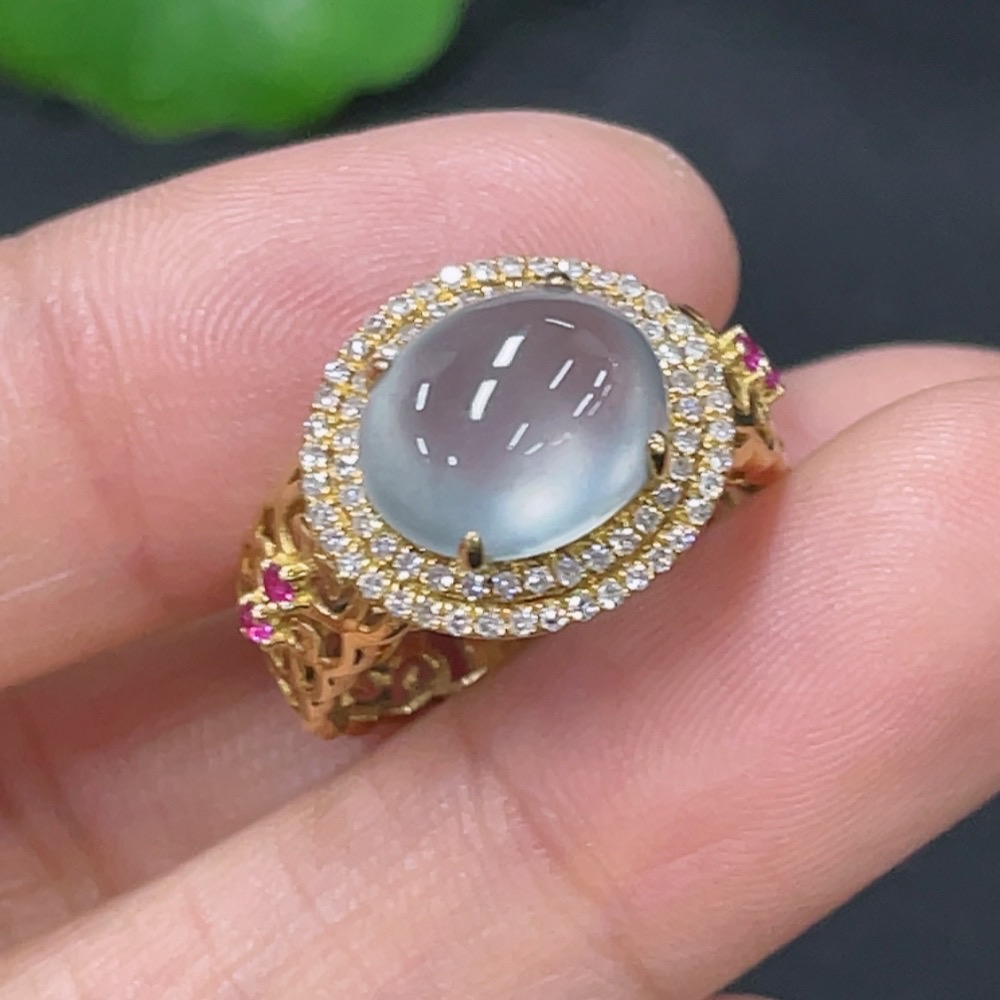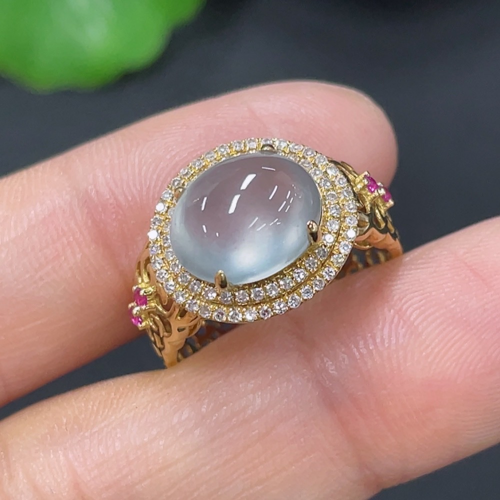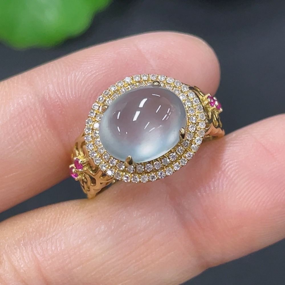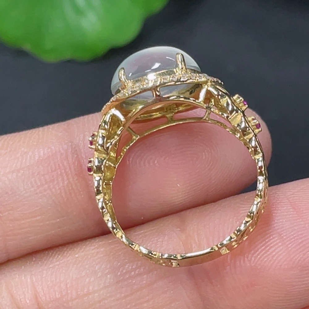 Jadeite inlaid ring 18k with diamond (colorless) size 9 total weight approx. 2.67g