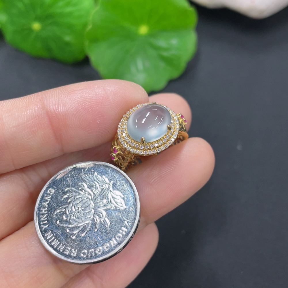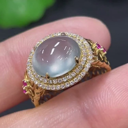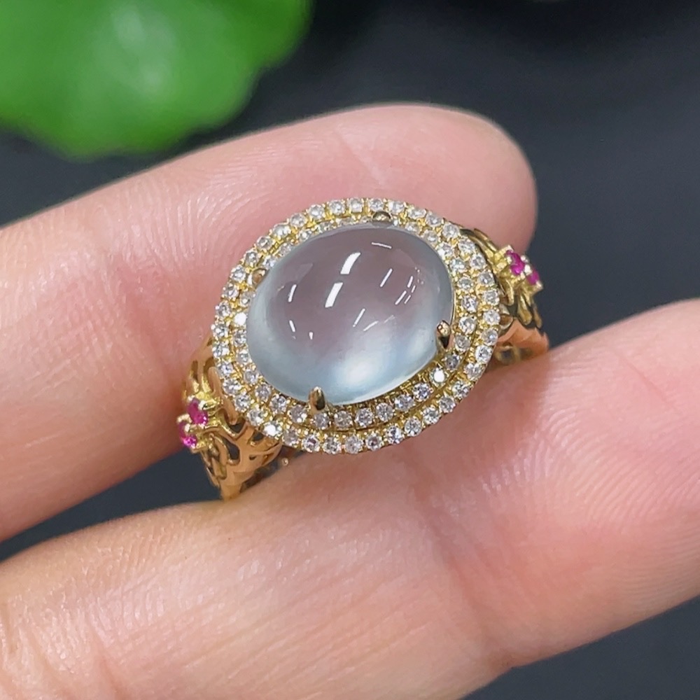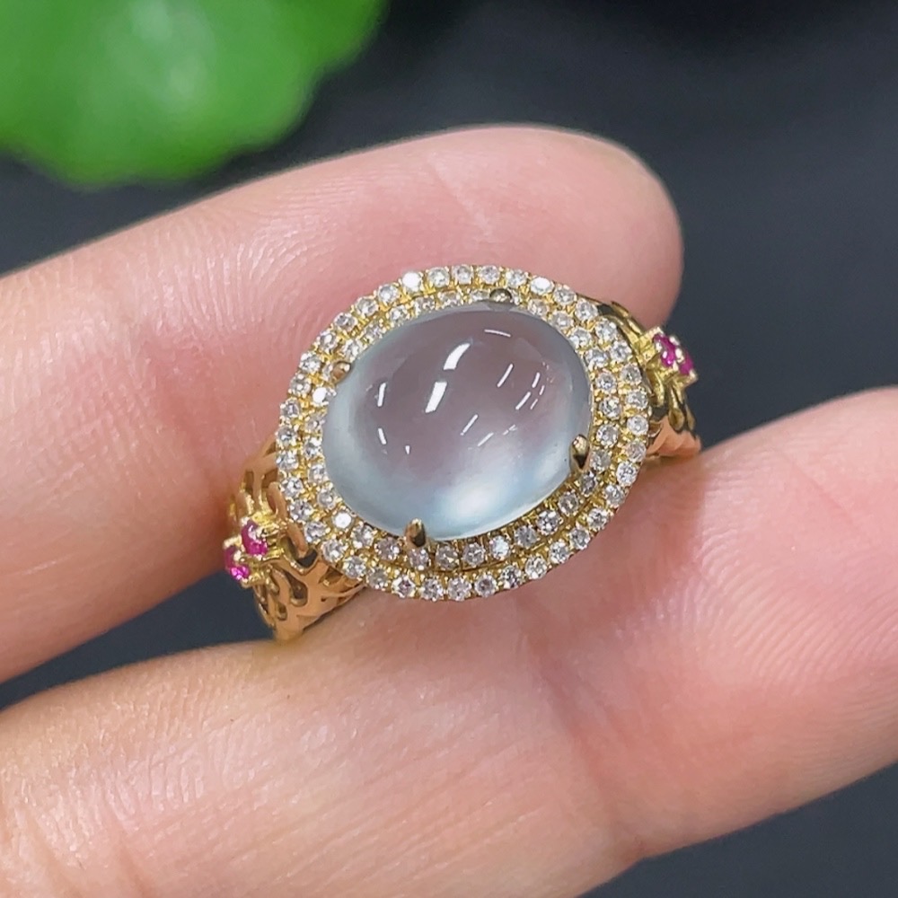 Jadeite inlaid ring 18k with diamond (colorless) size 9 total weight approx. 2.67g