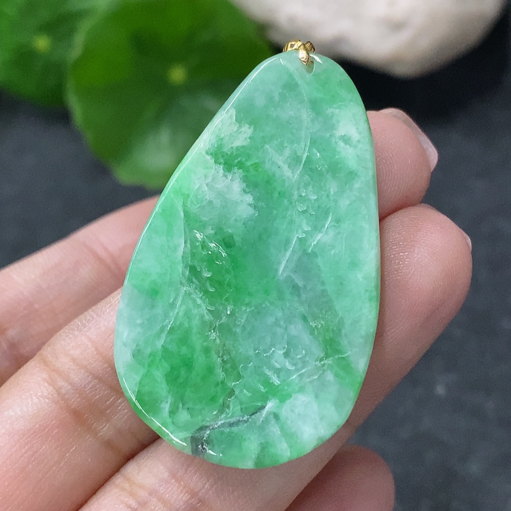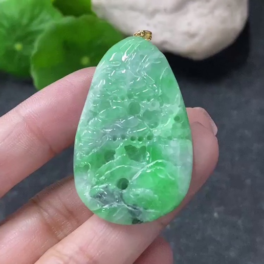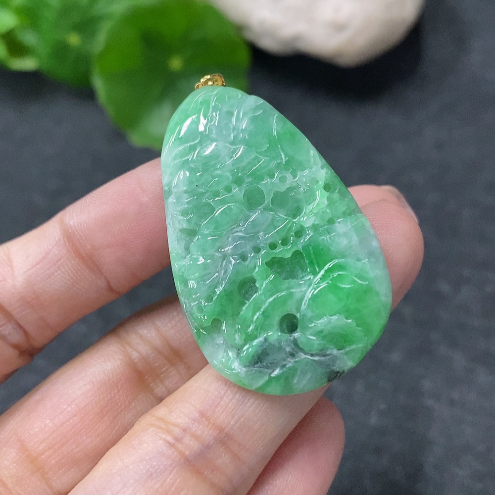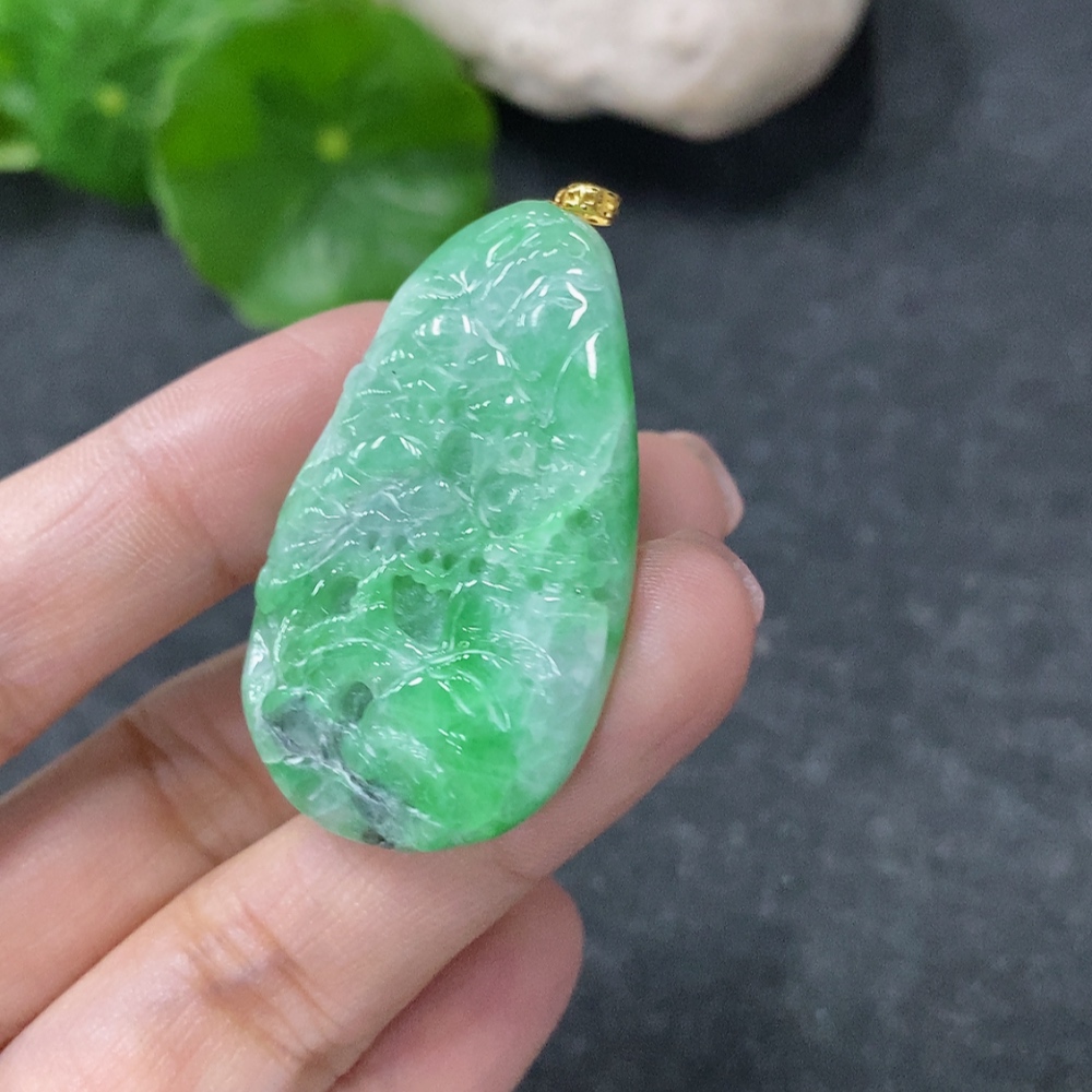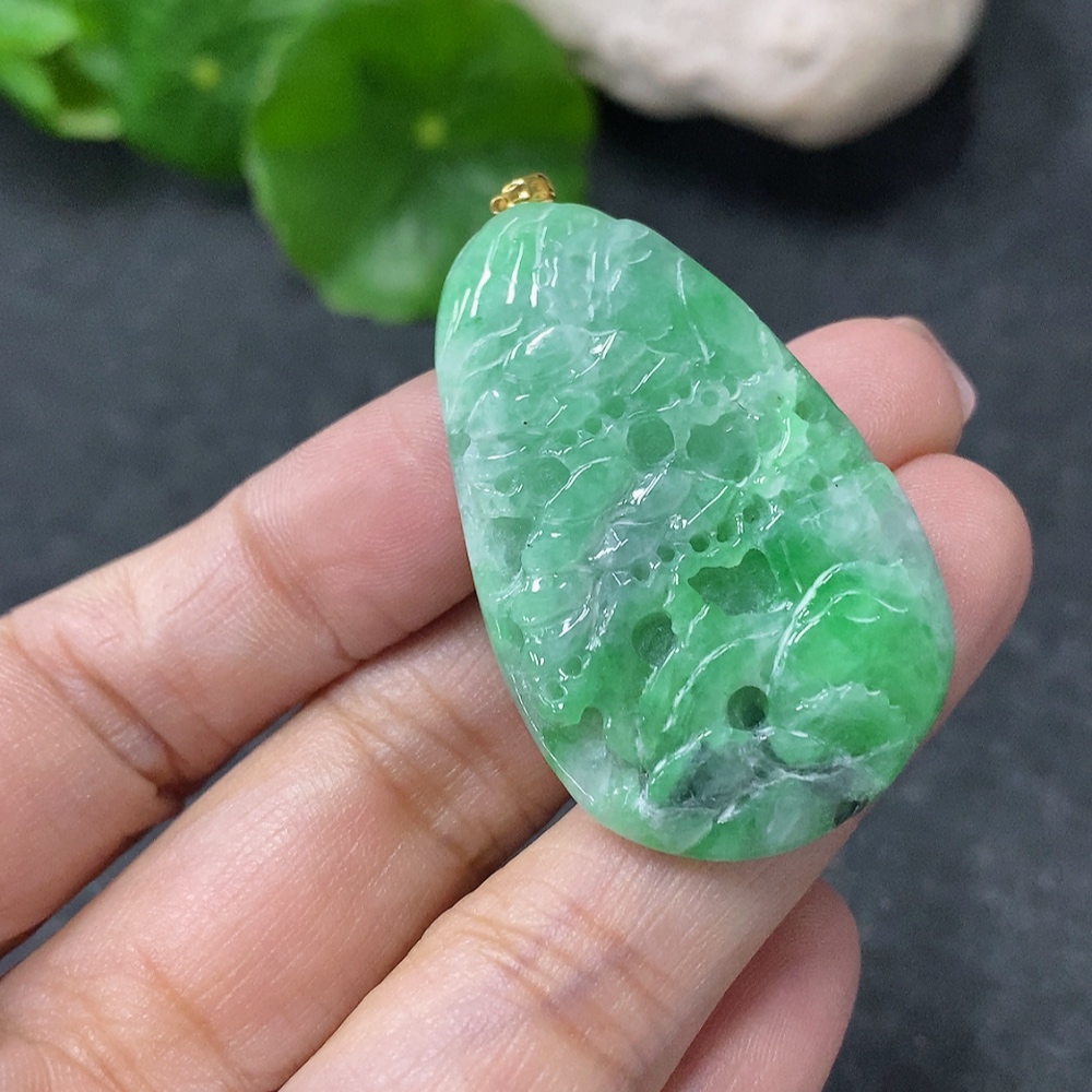 Jadeite Landscape Pendant with 18k Gold Clasp, Total Weight Approx. 10.16g, Contains Other Mineral Components