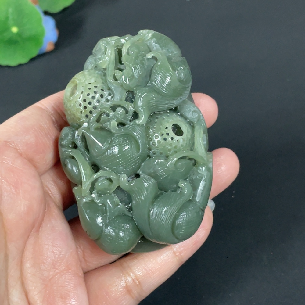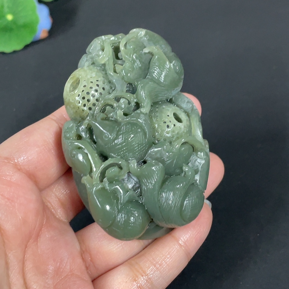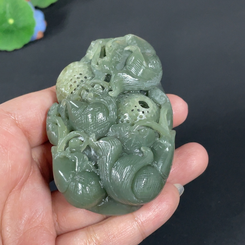 Hetian Jade Handheld Carving Fish Basket Total Weight Approx. 154.8g