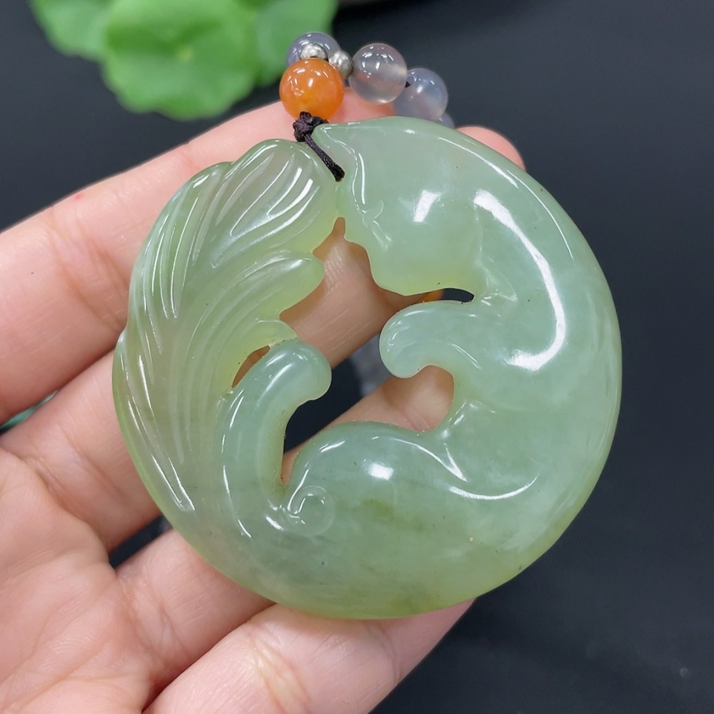 Xiuyu (Serpentine Jade) Pendant Nine-Tailed Fox Chain Not Included in Xiuyu Total Weight Approx. (Including Chain) 54.3g