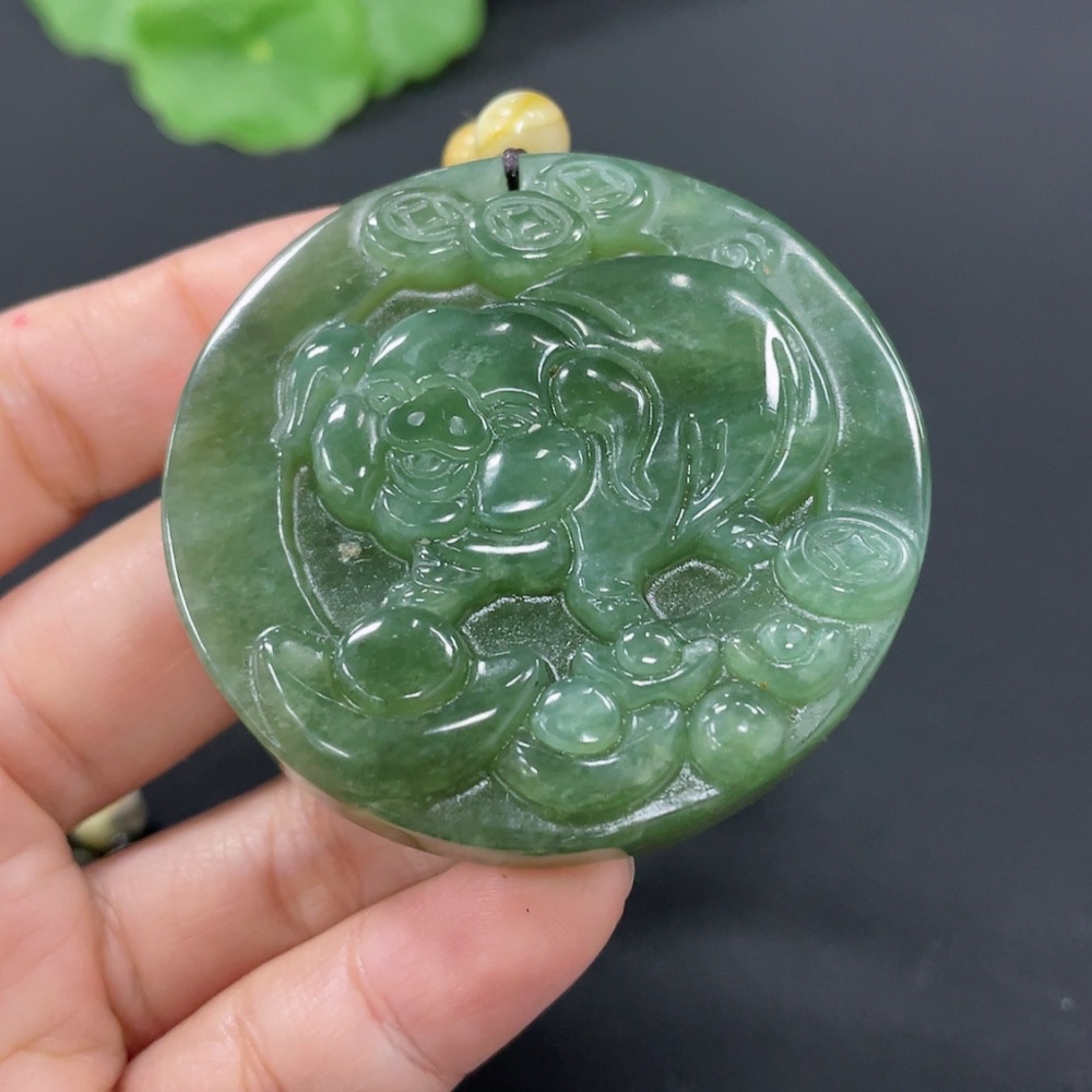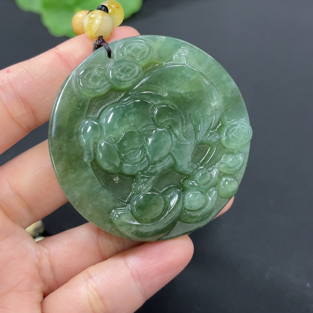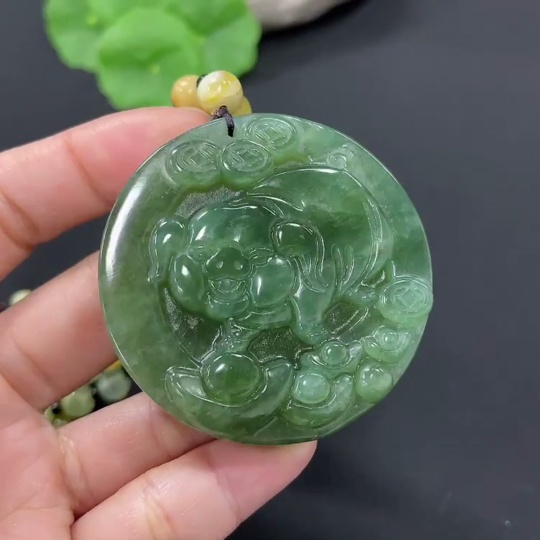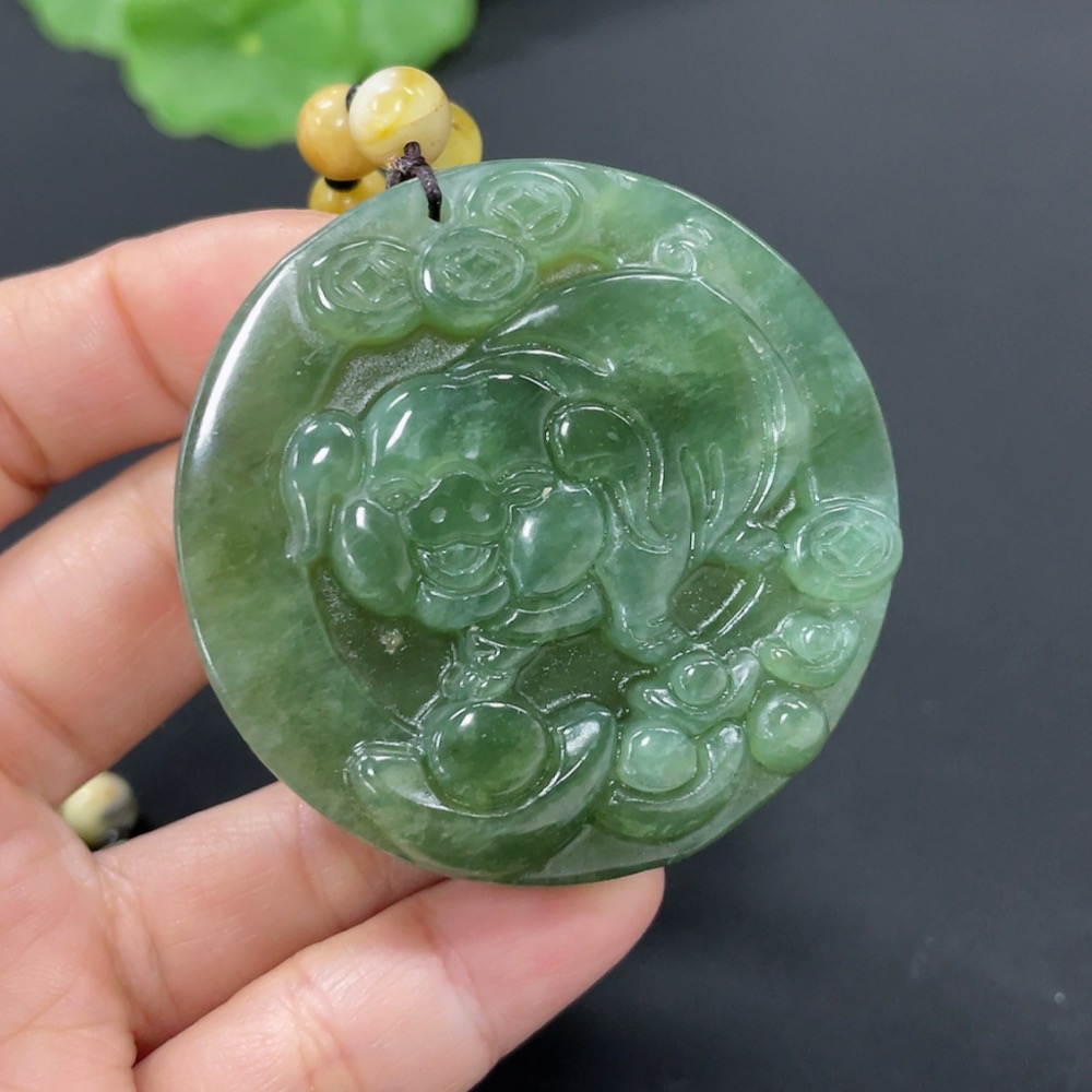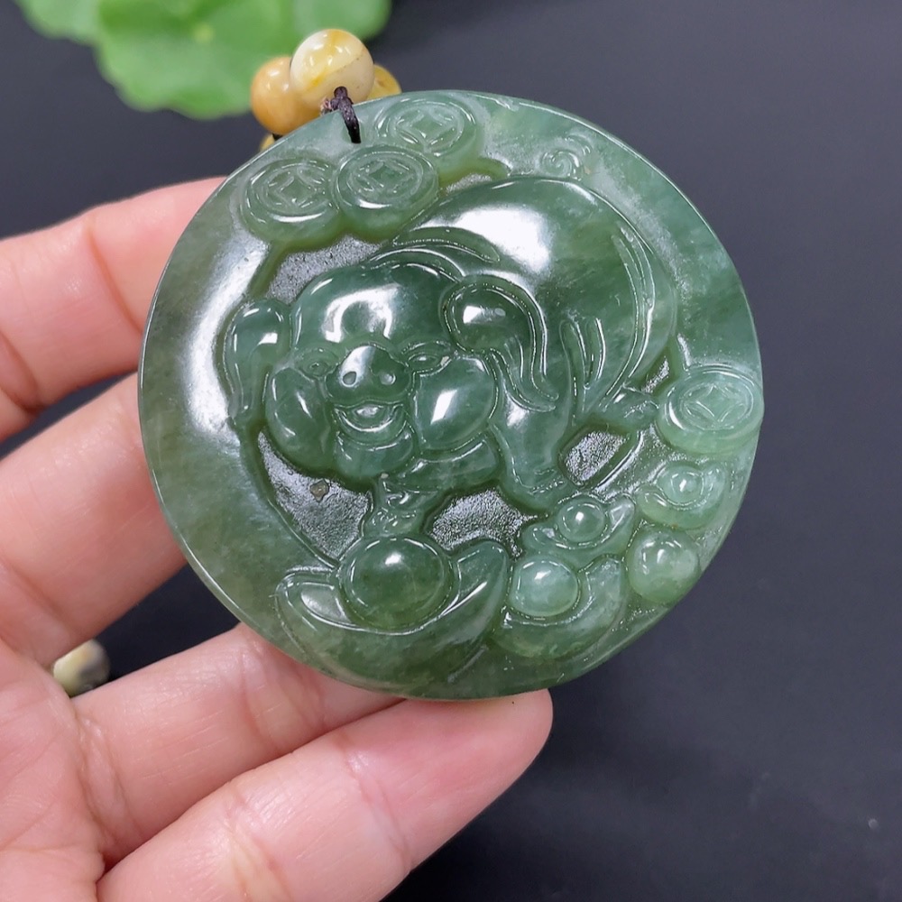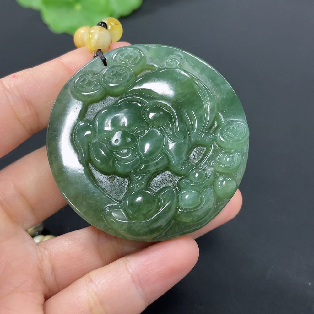 Xiuyu (Serpentine Jade) Pendant Pig with Non-Xiuyu Chain Total Weight Approx. 87.7g (Including Chain)