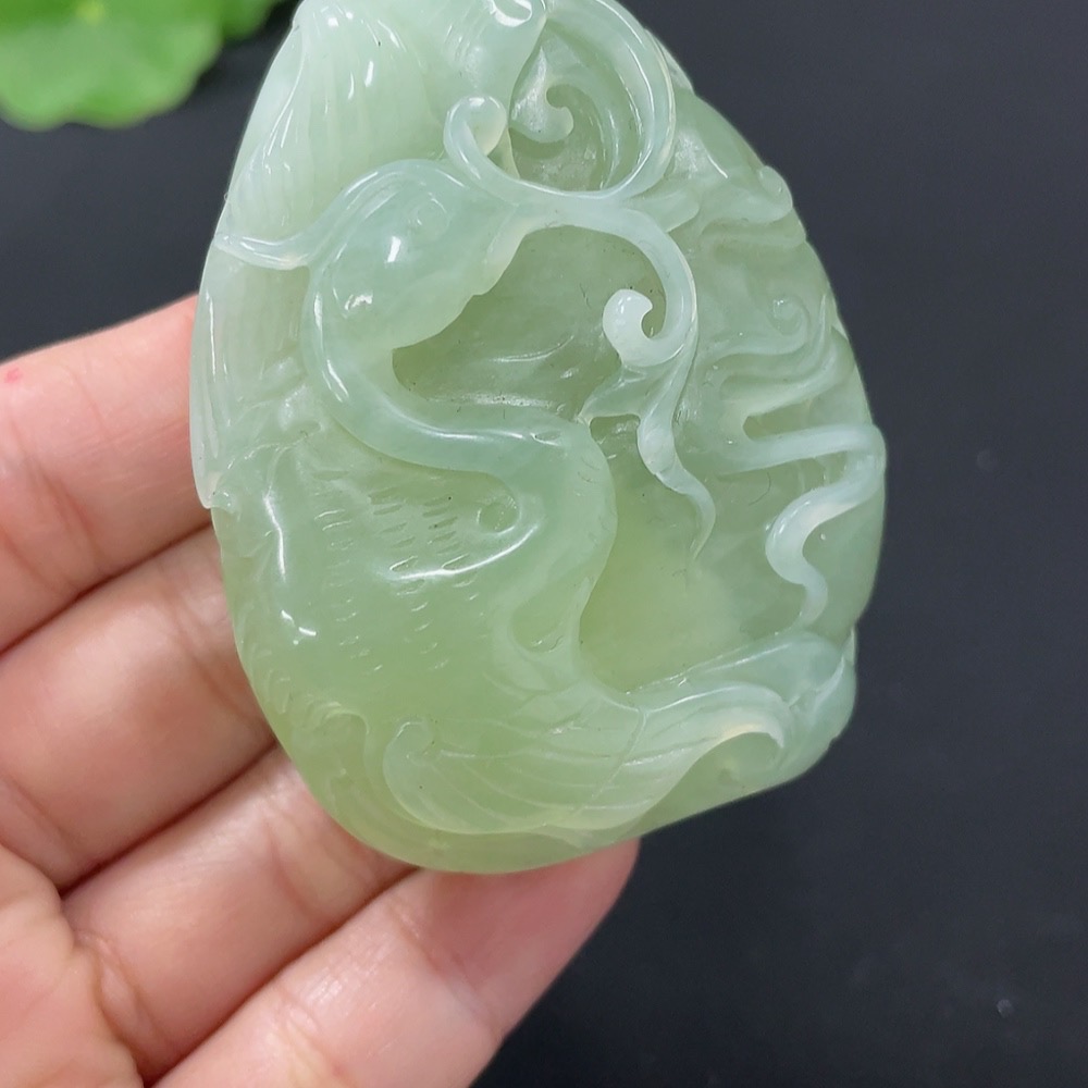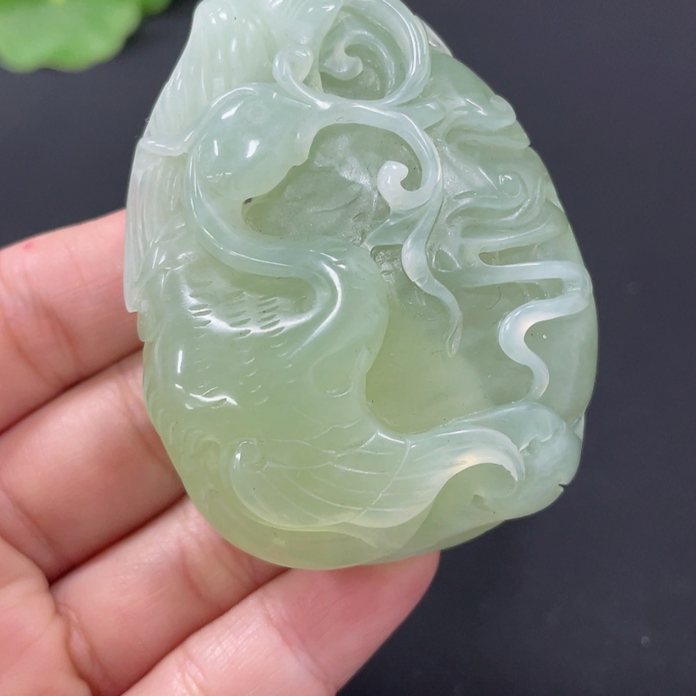 Xiuyu (serpentine jade) pendant Phoenix Total weight about 69.3g