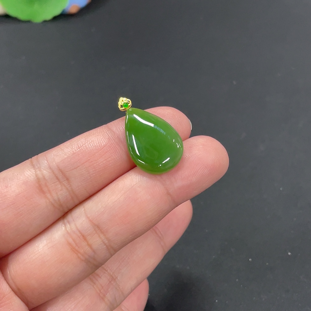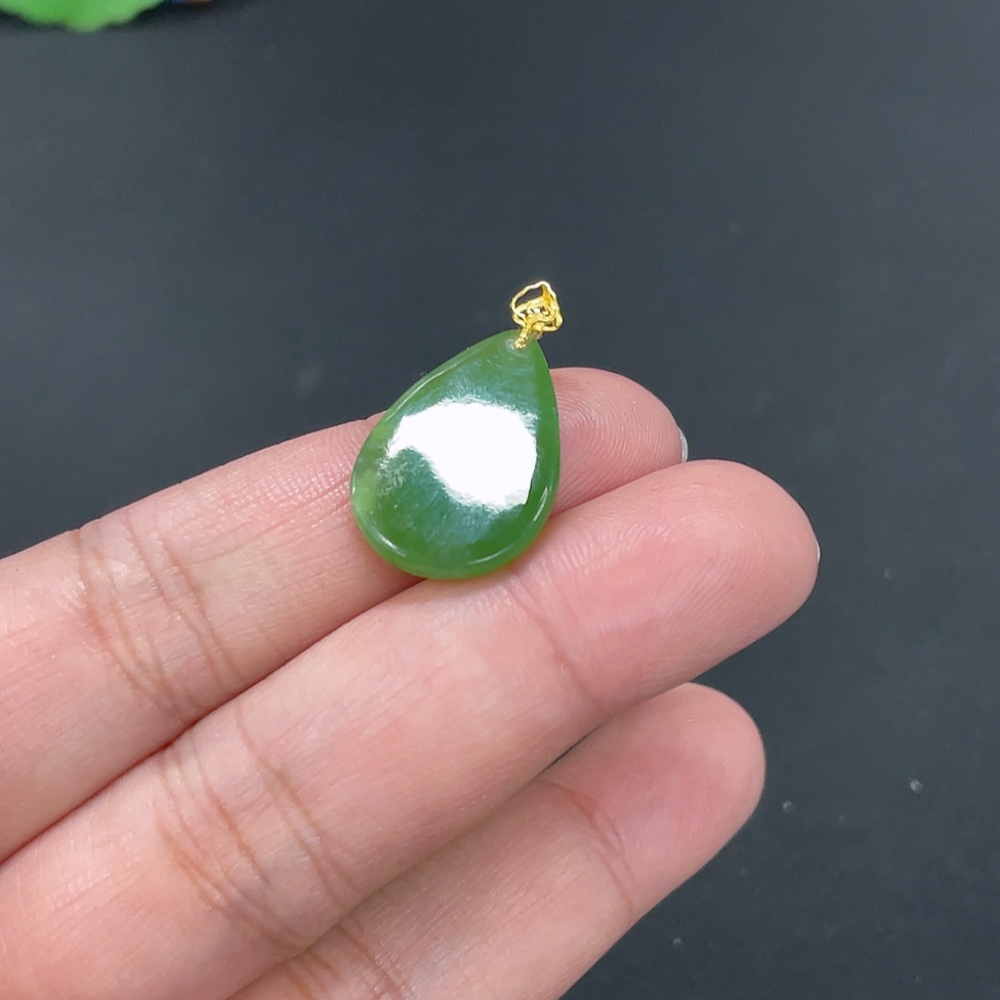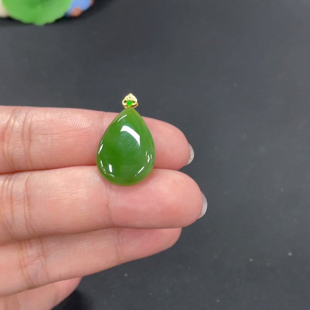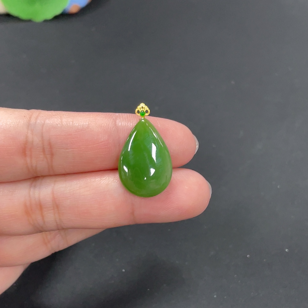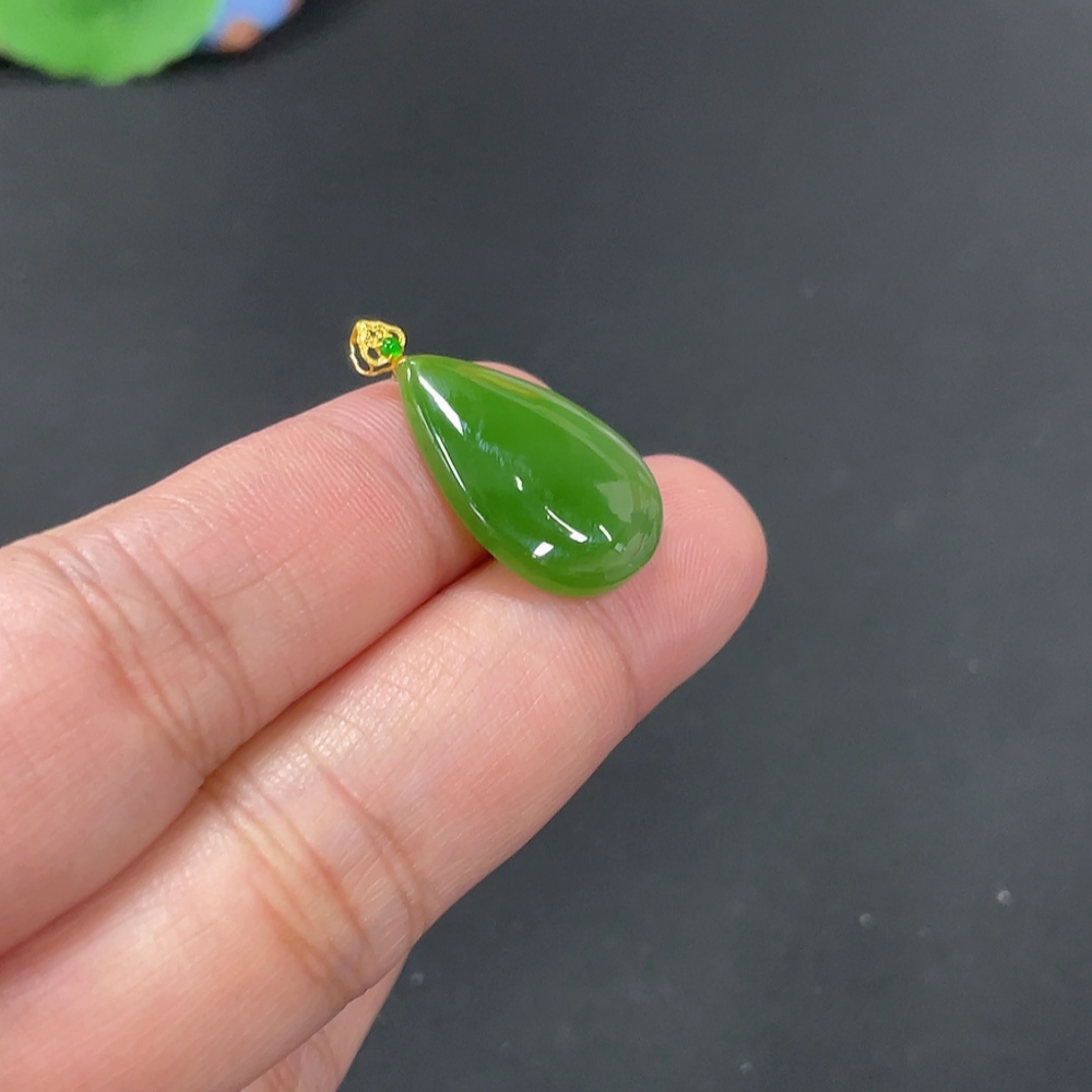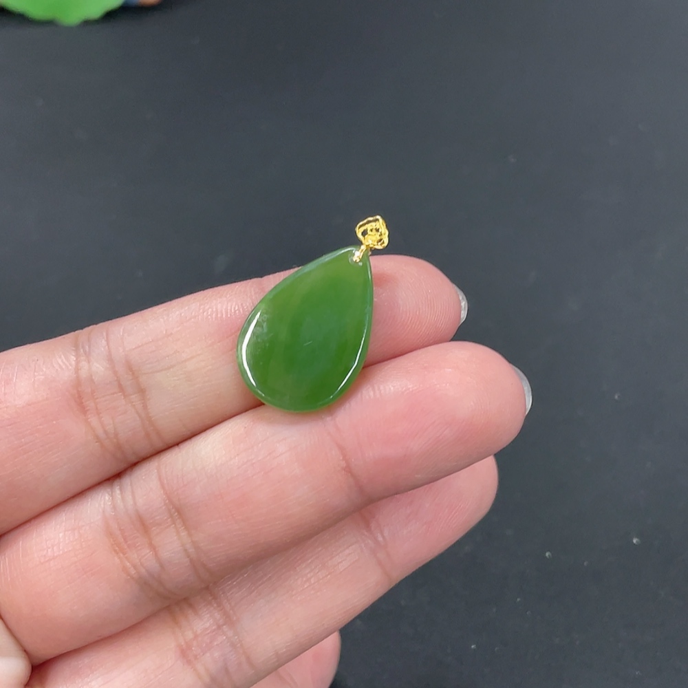 Hetian Jade Jasper Inlaid Pendant Water Droplet Total Weight Approx. 2.5g 18k