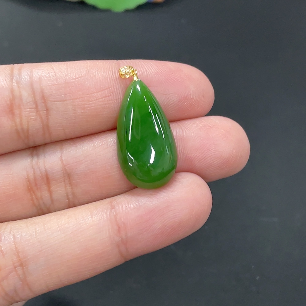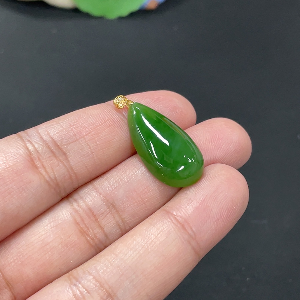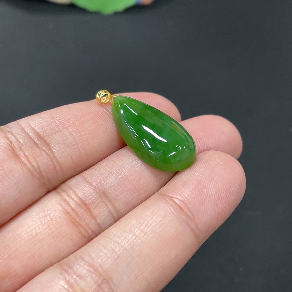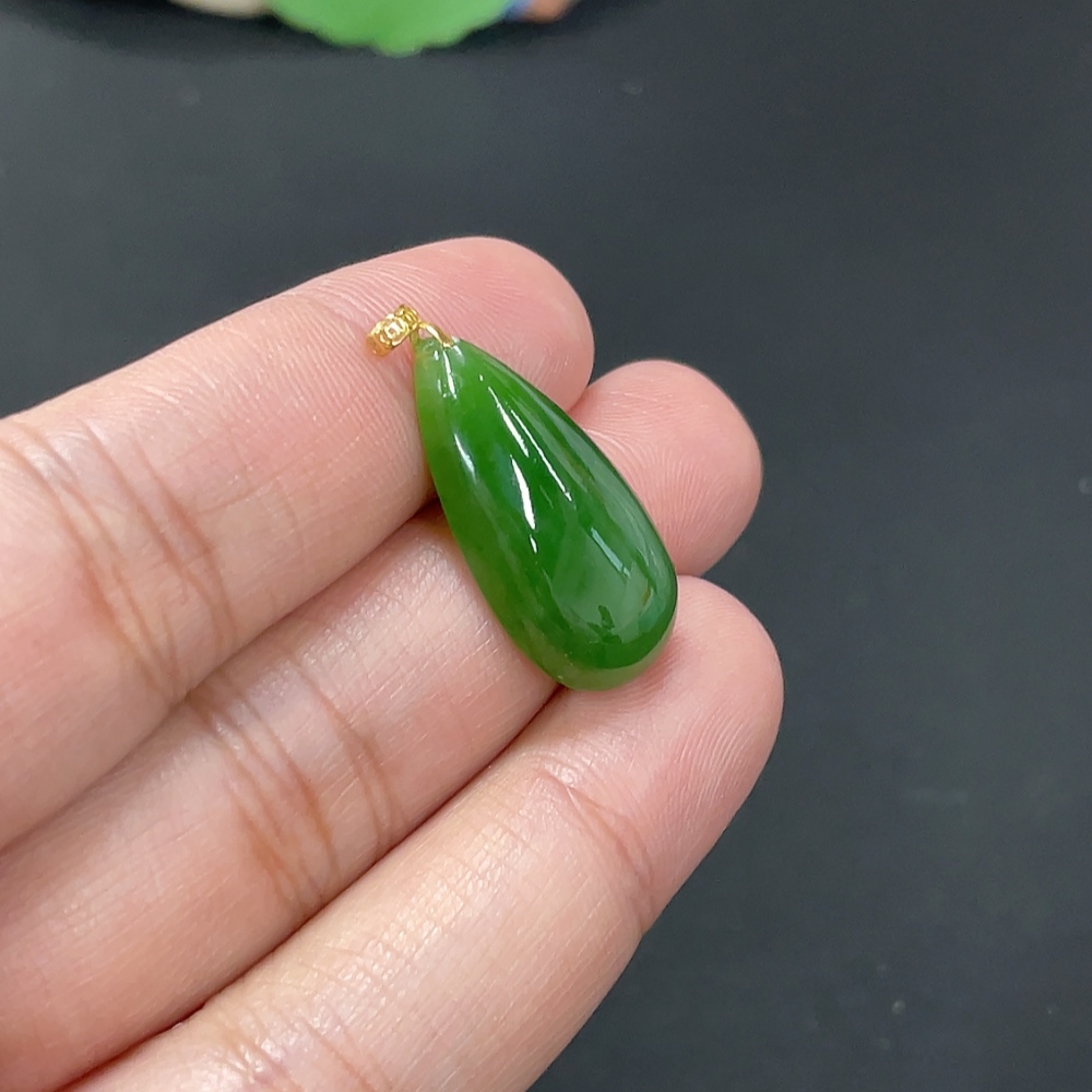Hetian Jade Inlaid Pendant Water Drop 18k Total Weight Approx. 3.1g