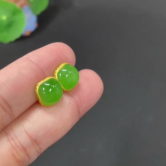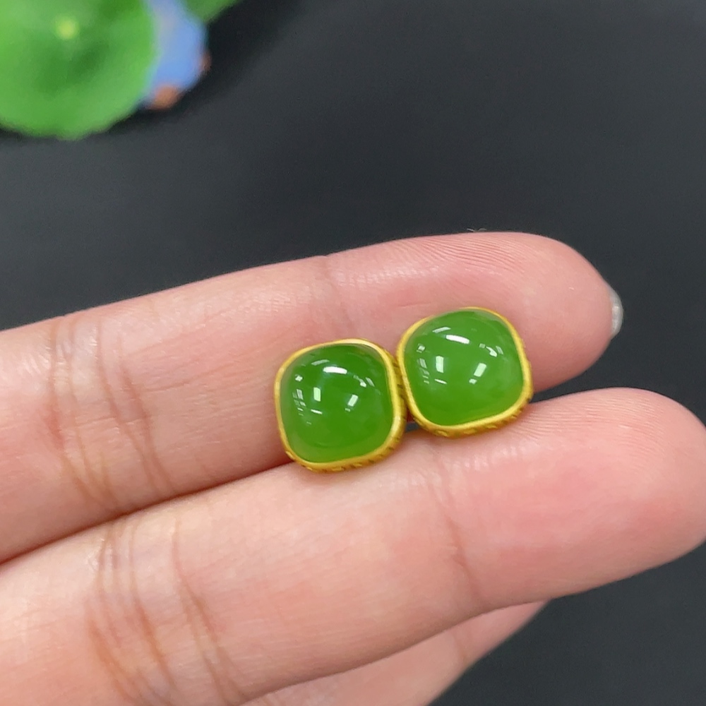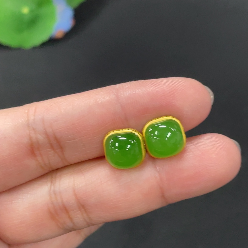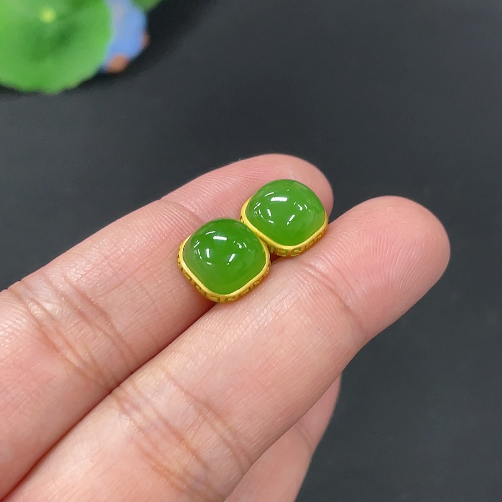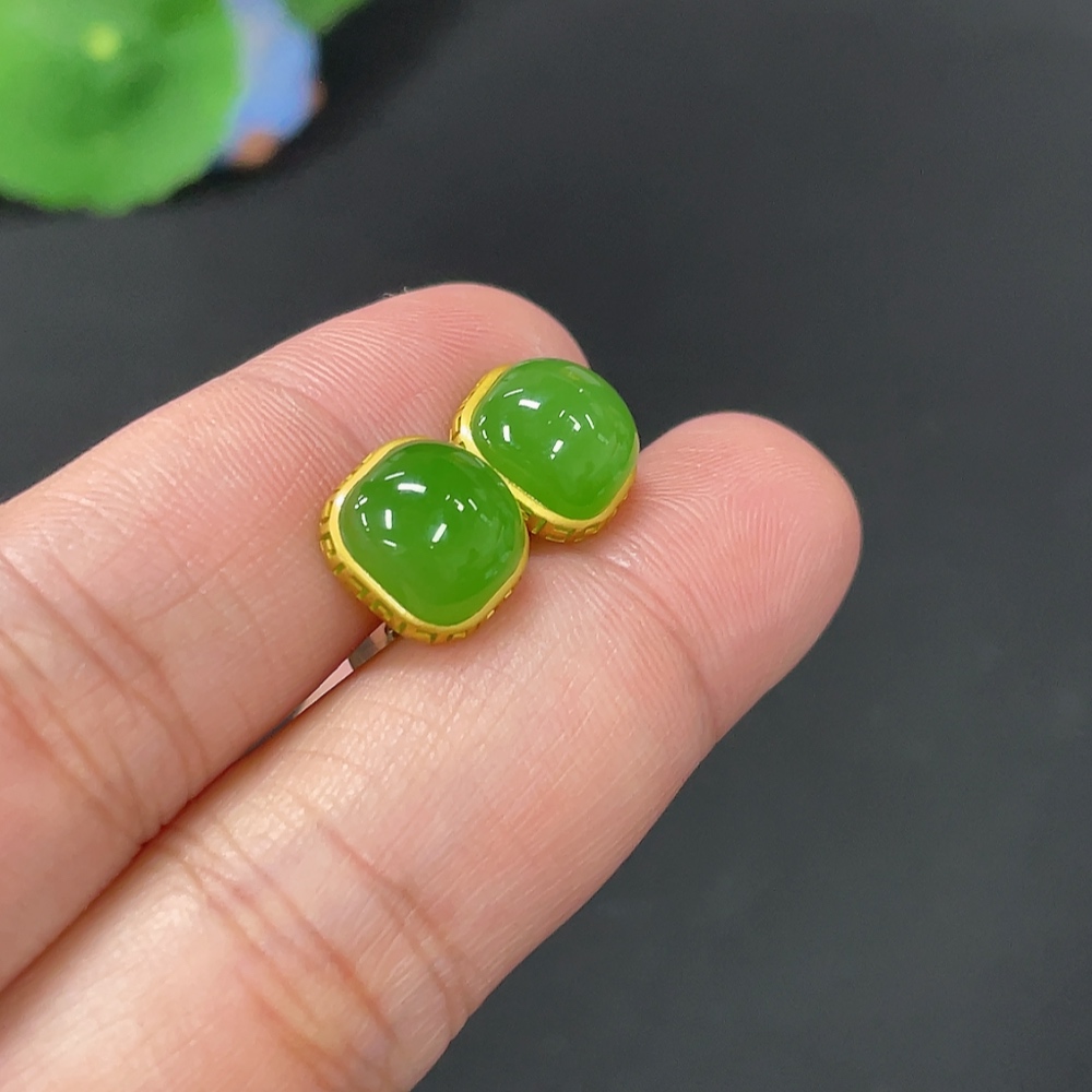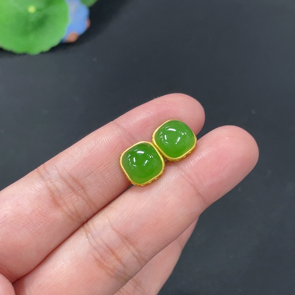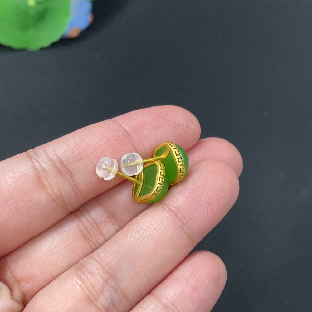 Hetian Jade Jasper Inlaid Earrings Total Weight Approx. 3g 18k