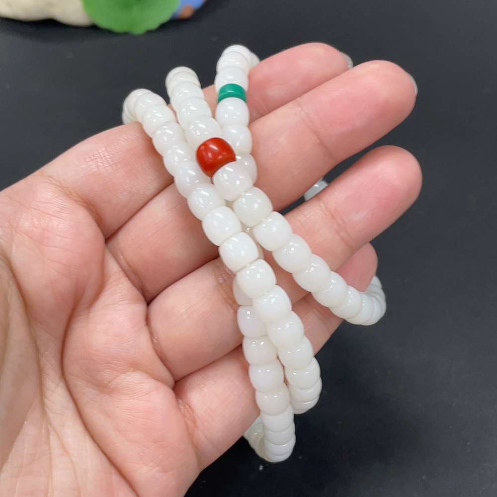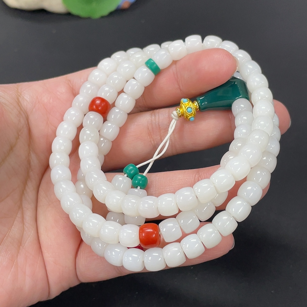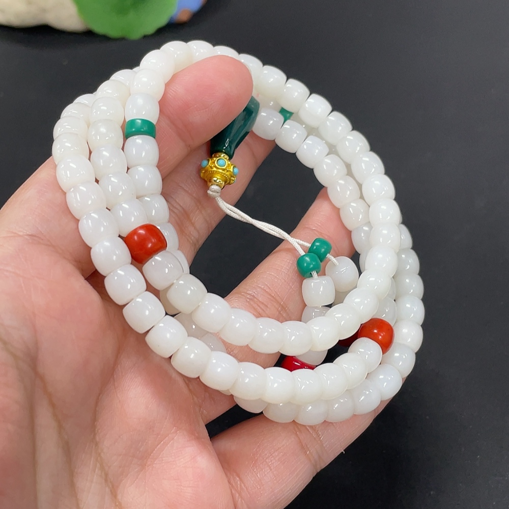 Hetian Jade Bead Necklace, Approx. 6.7mm, Total Weight About 67.2g, Non-Hetian Jade Matching Beads
