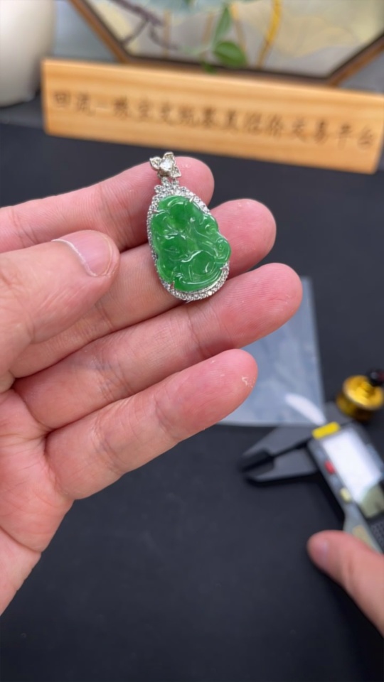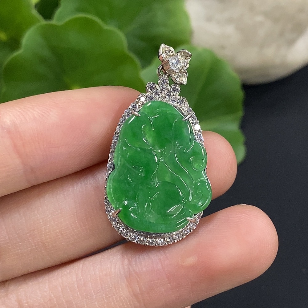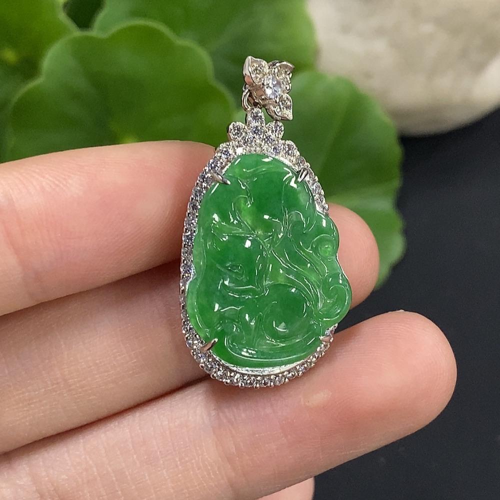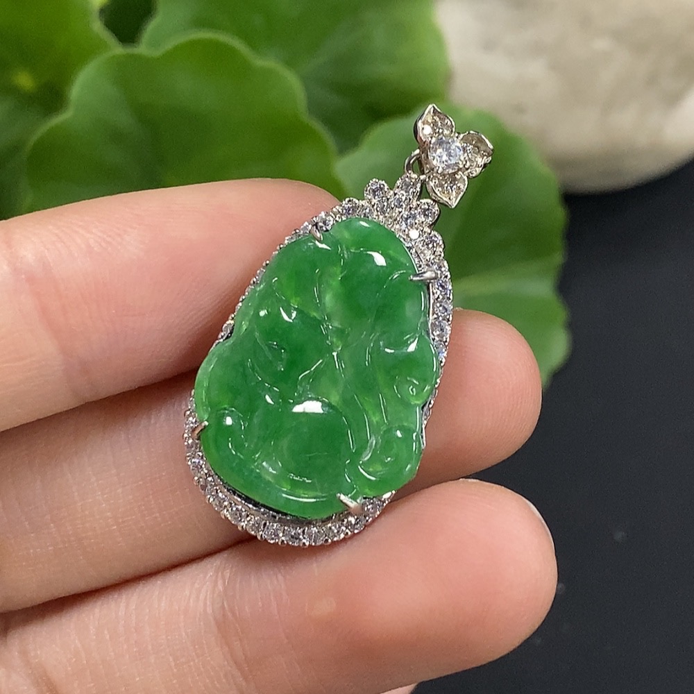 Jadeite inlaid pendant Total weight about 3.2g (non-gold inlaid)