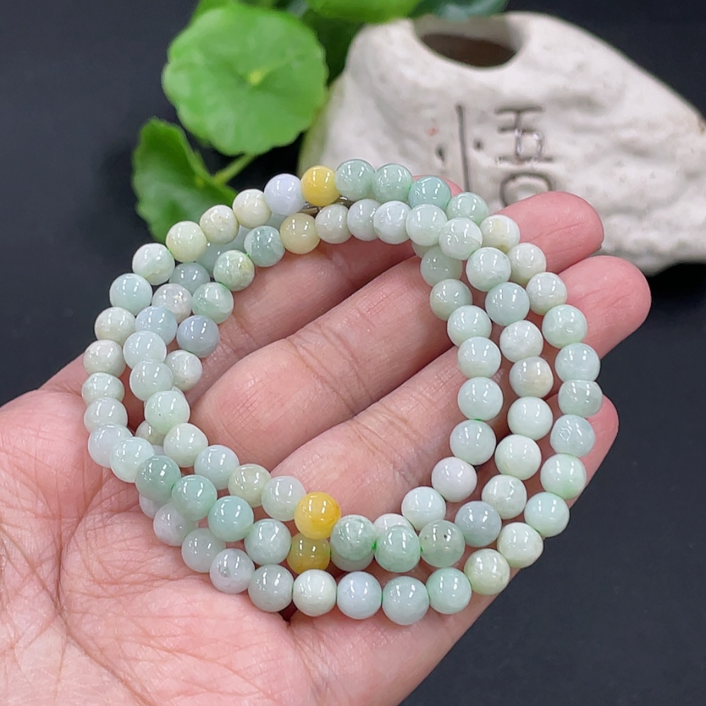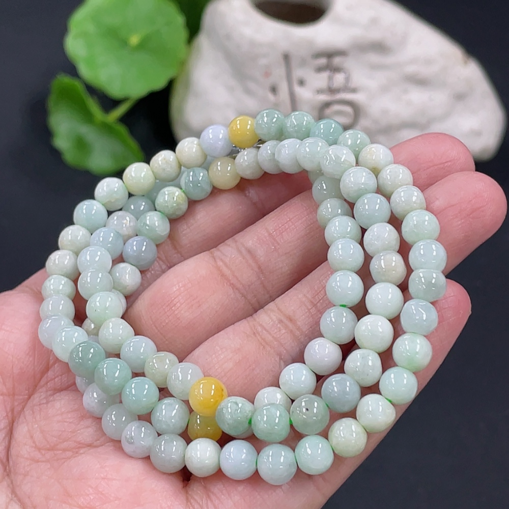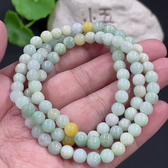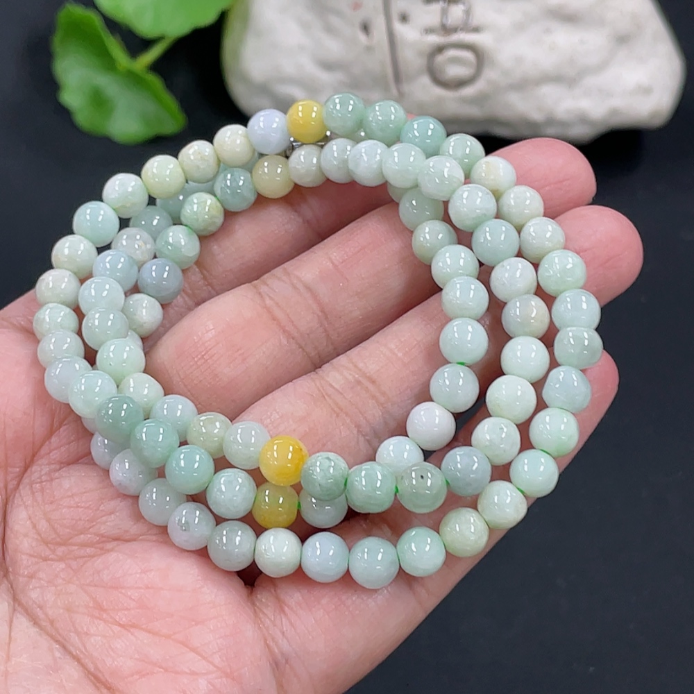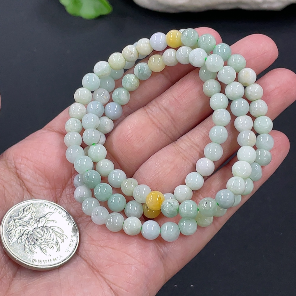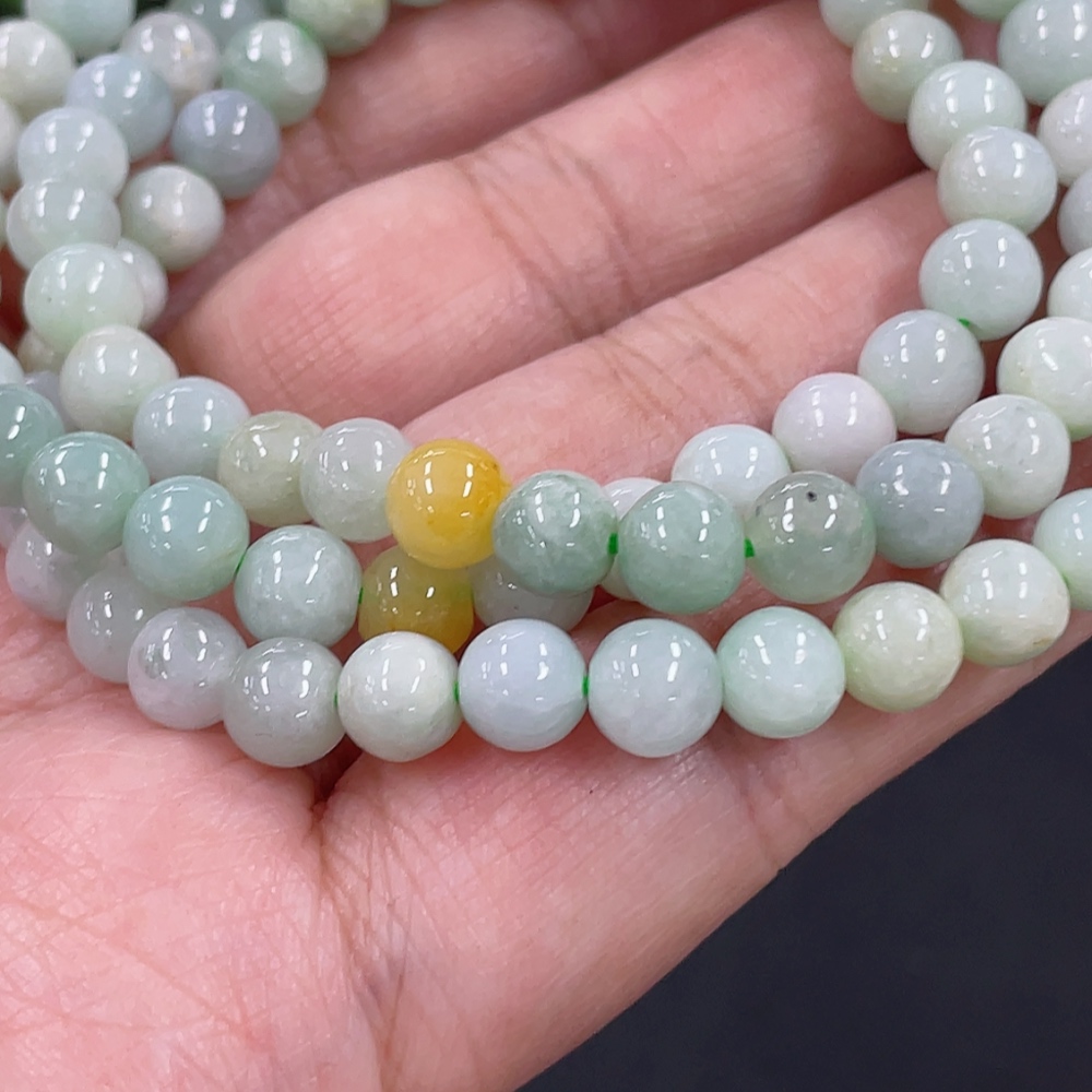 Jadeite Bead Necklace Approx. 5.9mm Total Weight Approx. 33.2g Yellow Beads Non-A
