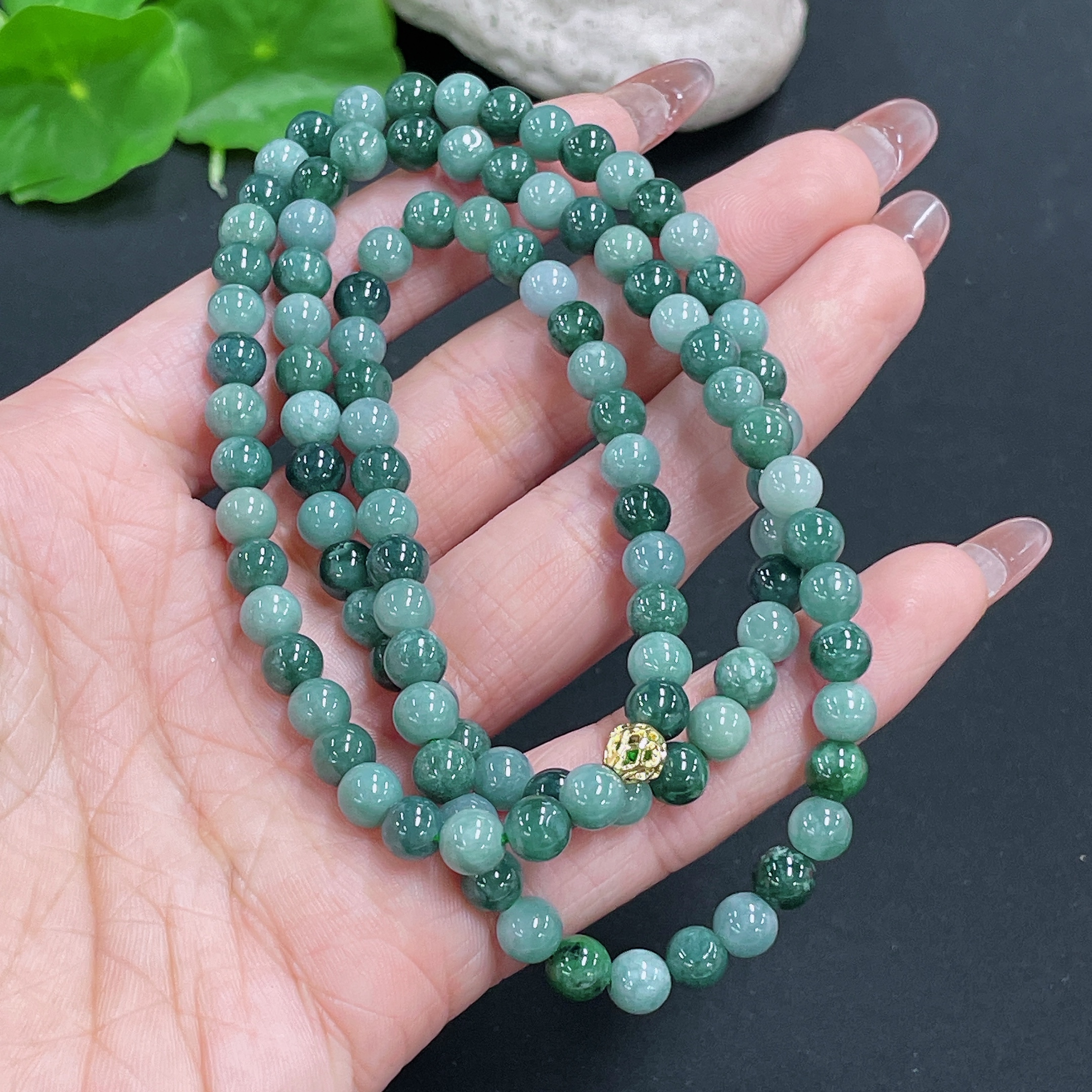 Jadeite Bead Necklace Non-Gold Total Weight Approx. 38.24g Size Around 6mm