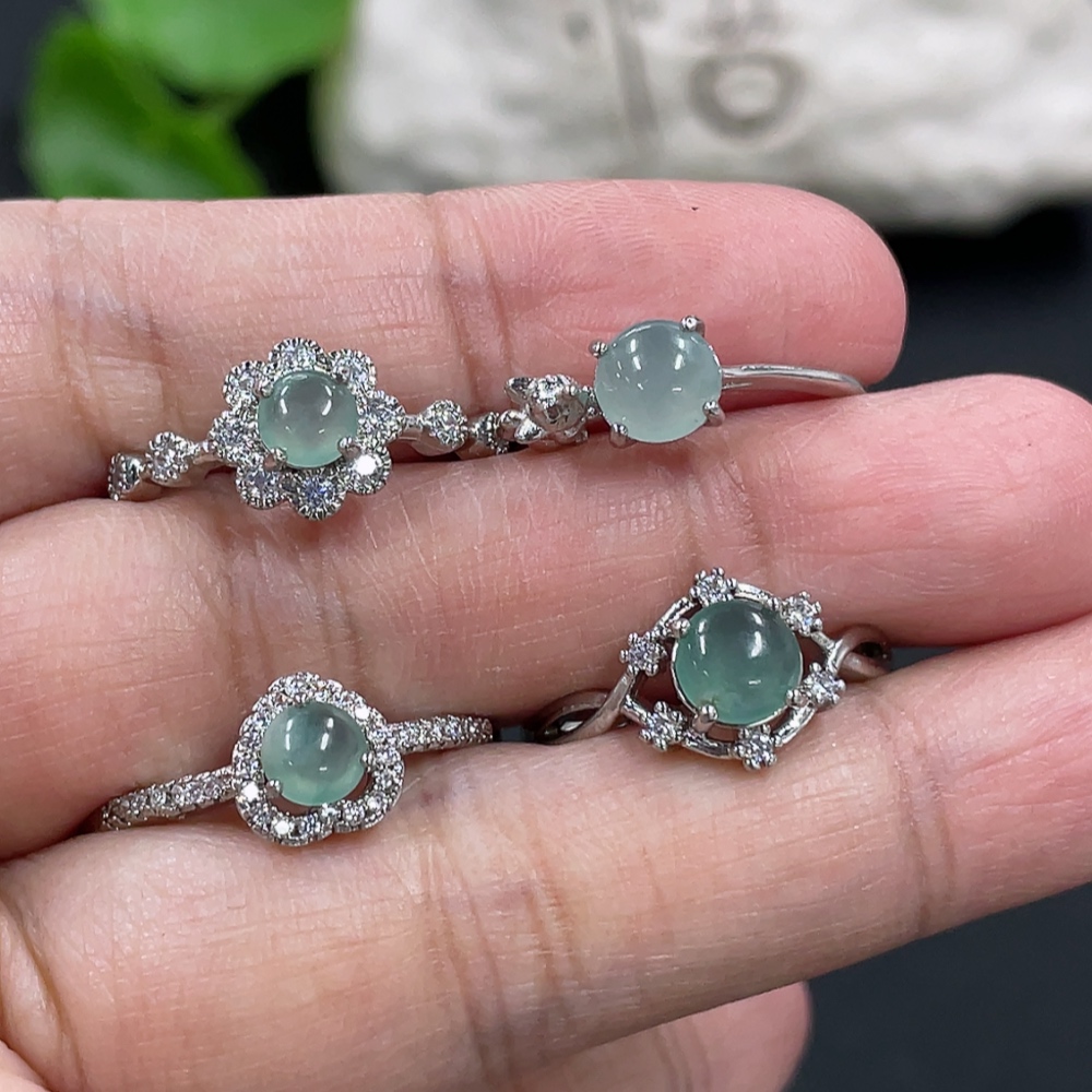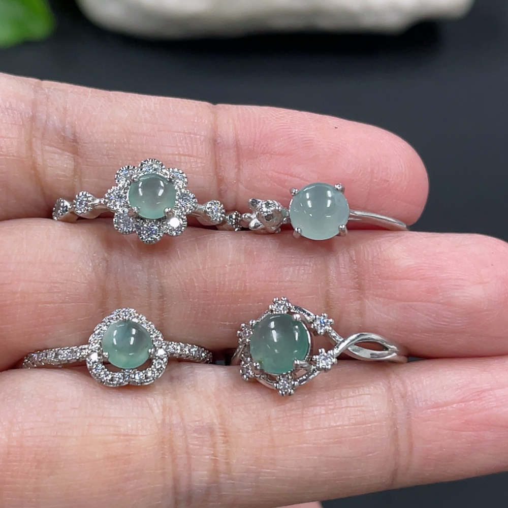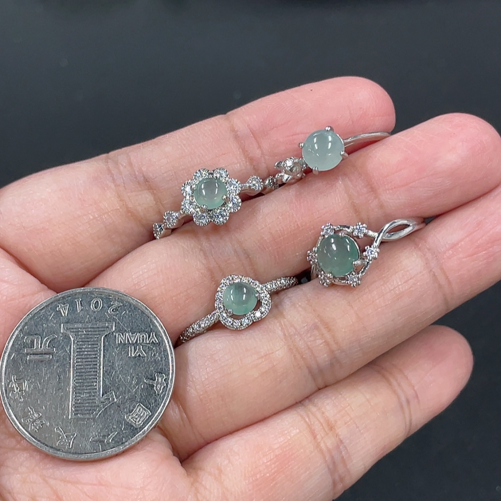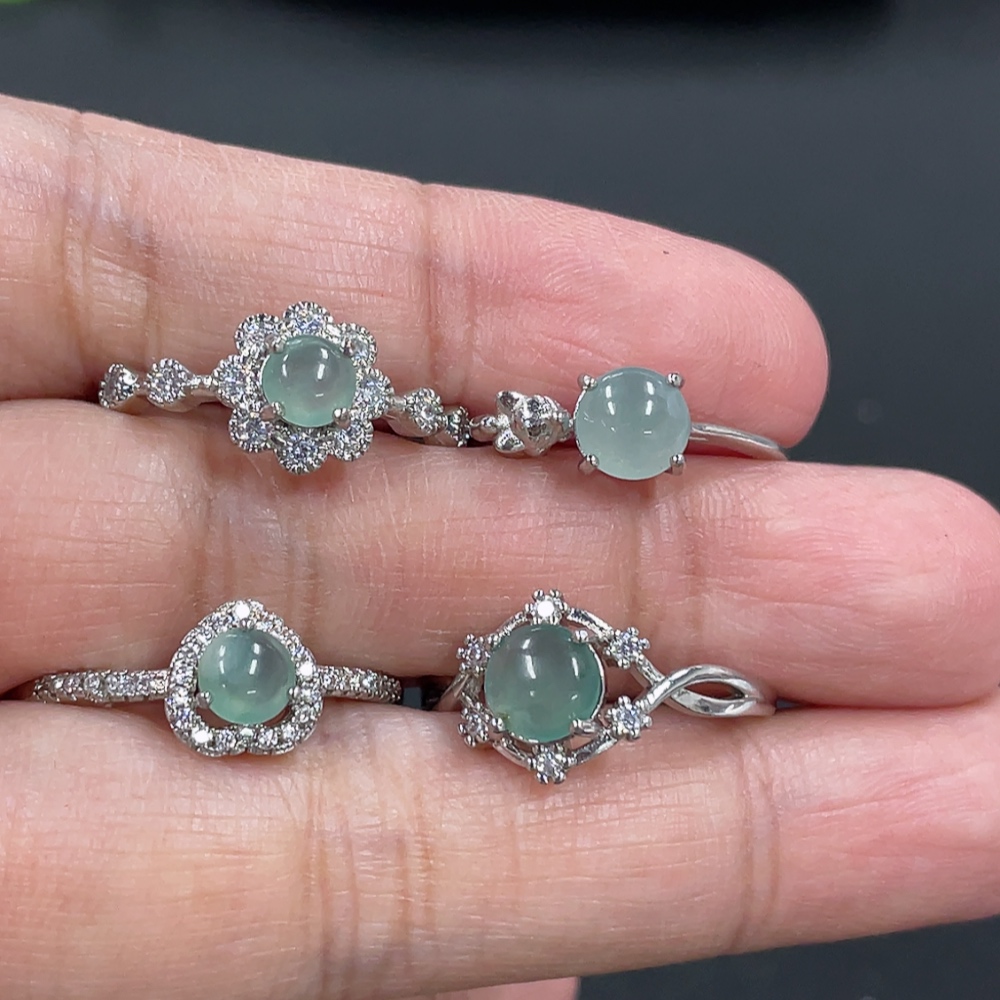 Jadeite Cabochon Ring Non-Gold Setting Adjustable Size Total Weight Approx. 6.2g