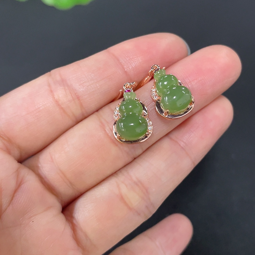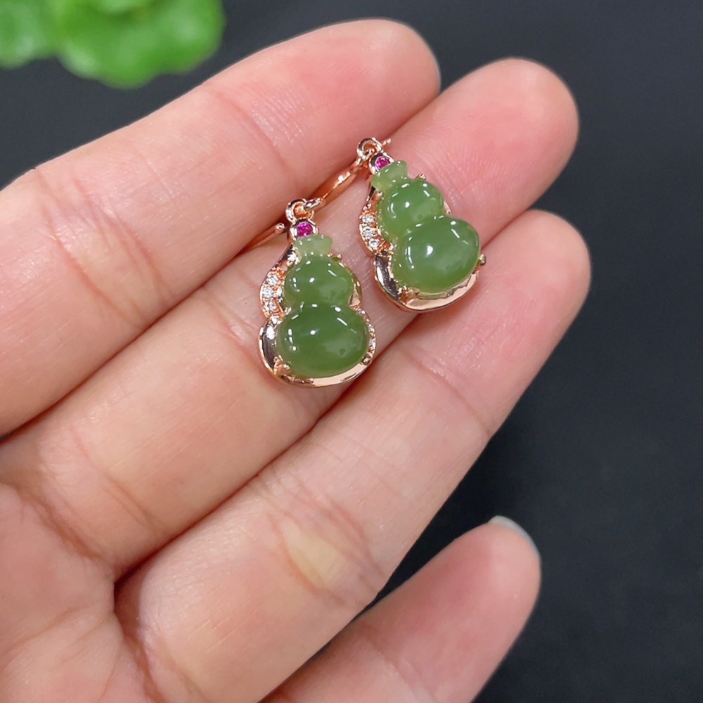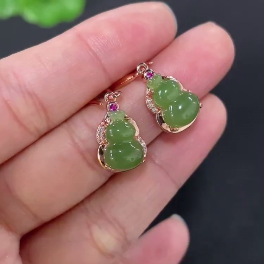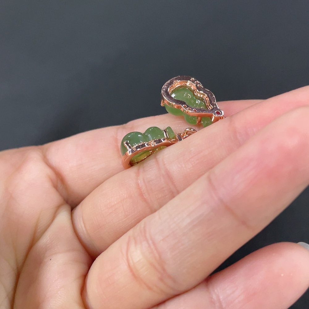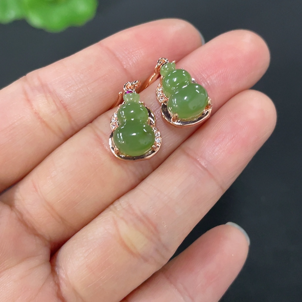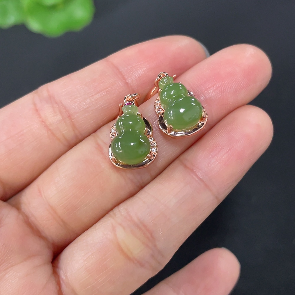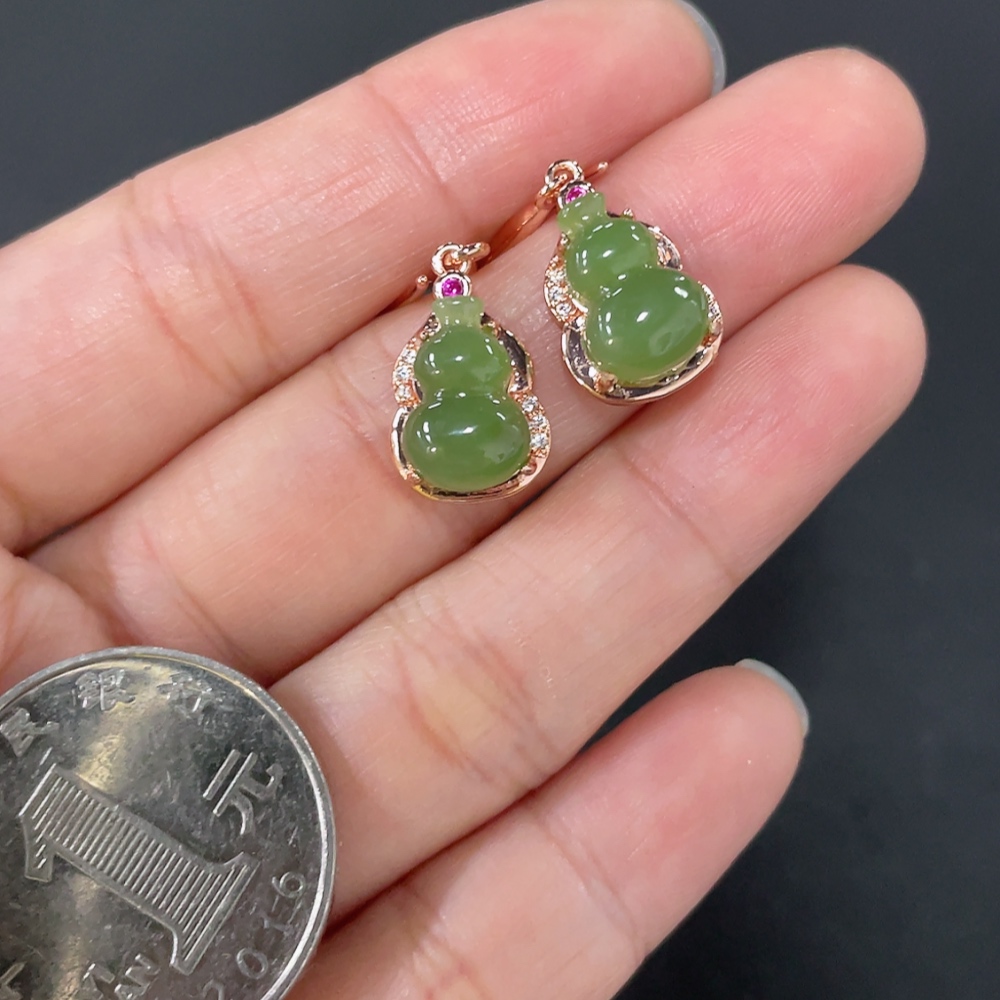 Hetian Jade Gourd Inlaid Earrings Non-Gold Inlaid Total Weight Approx. 3.2g