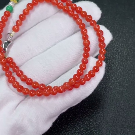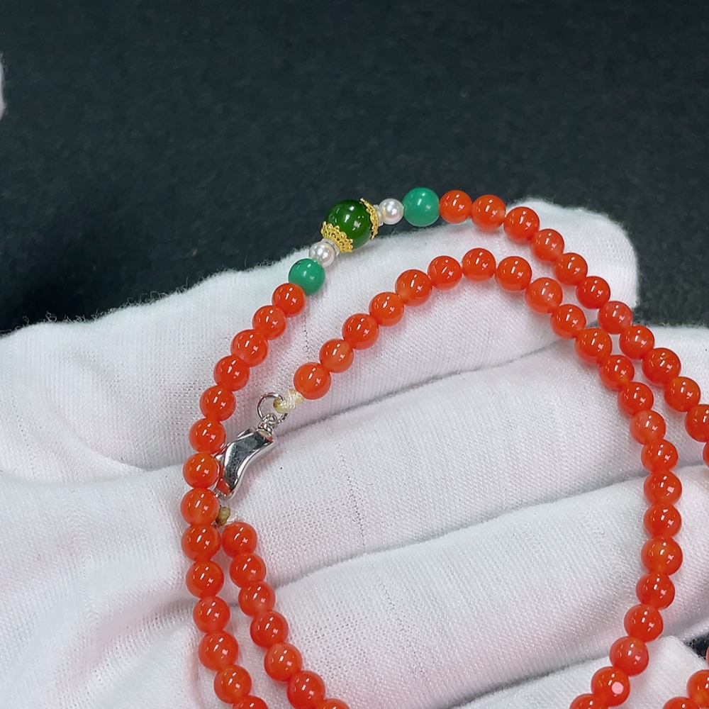 South Red Agate Bead Necklace with Visible Organic Matter, Total Weight Approx. 9.28g, Size 4.1mm, Paired with Hetian Jade, Non-Natural Accent Stones Considered, Non-Metal