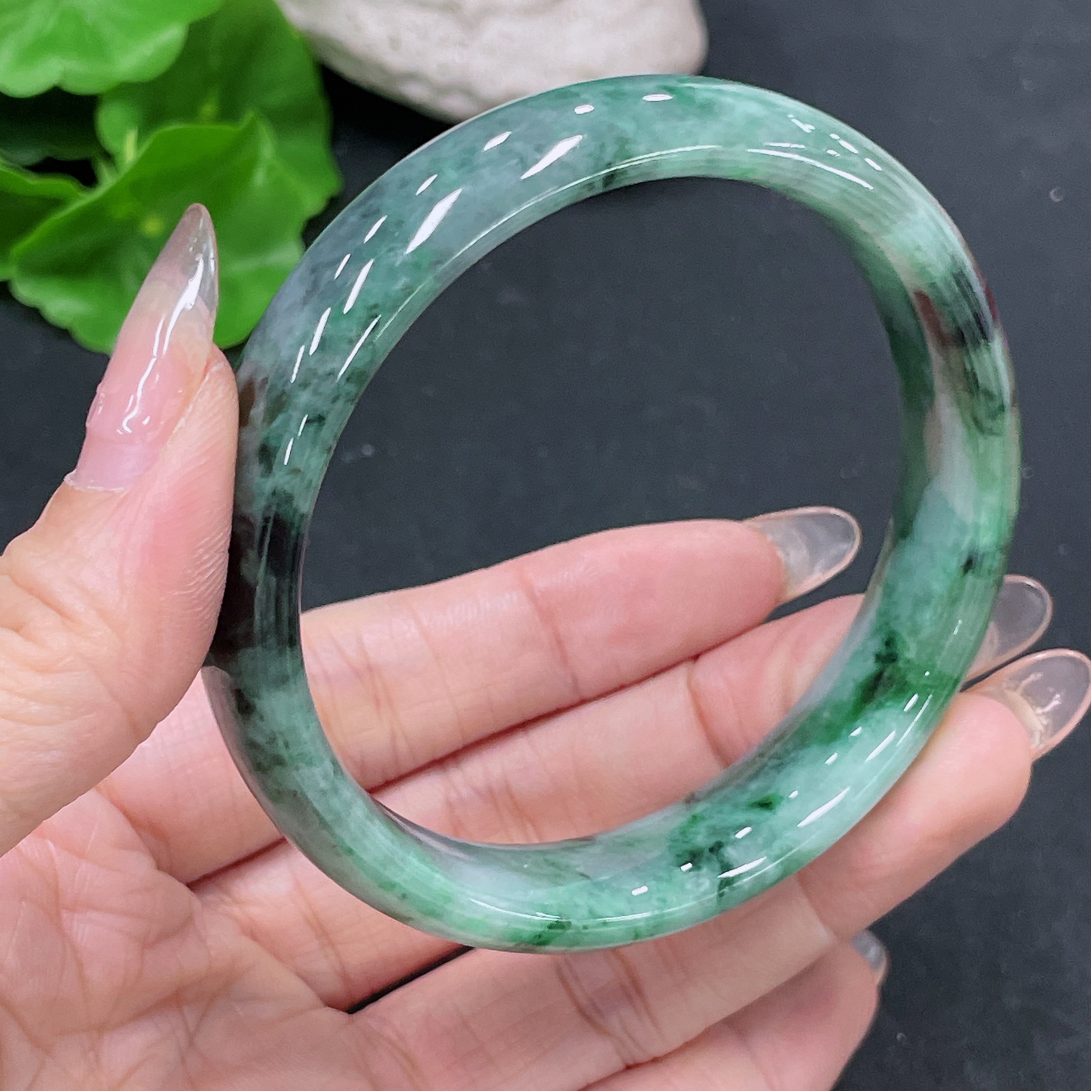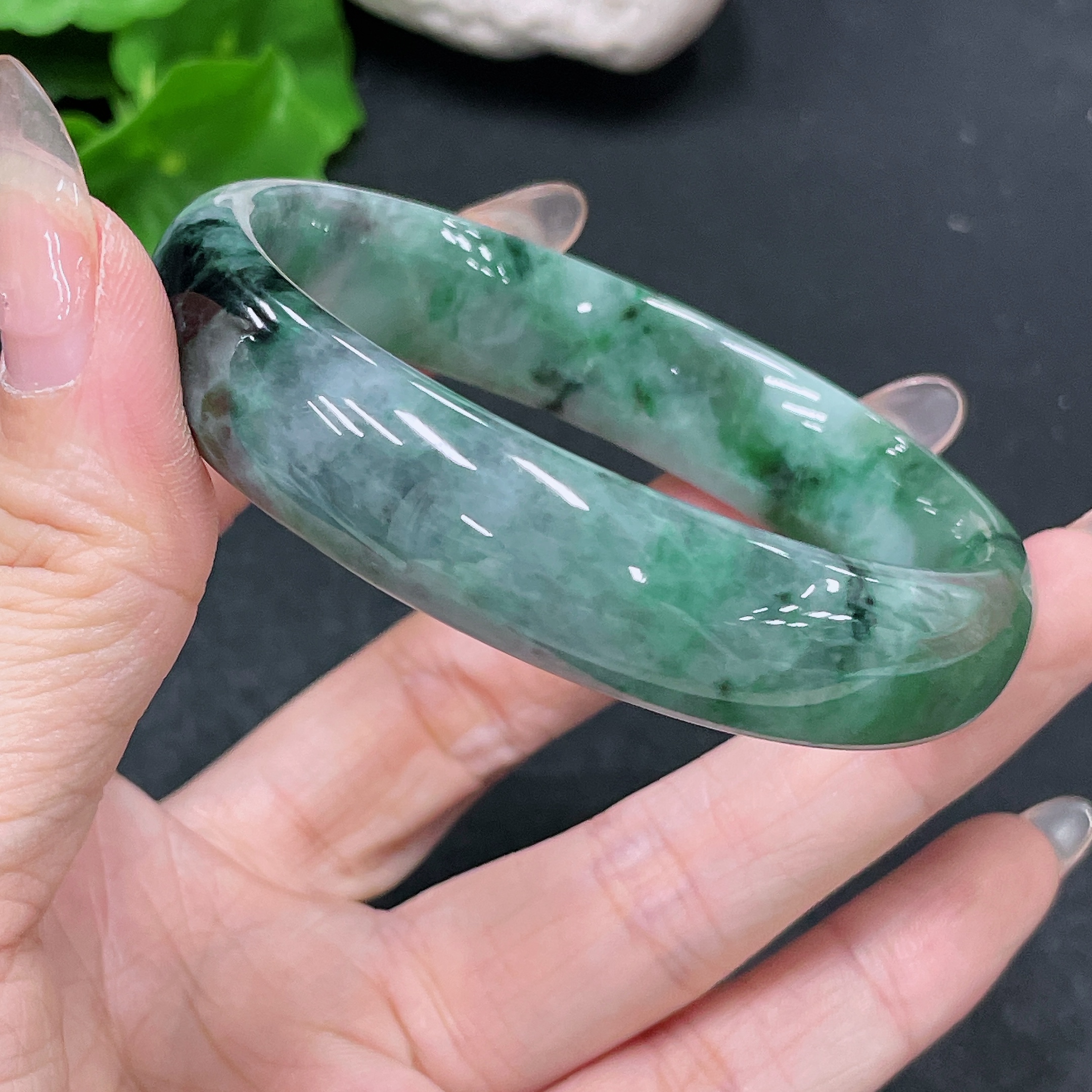 Jadeite Round Bangle, Total Weight Approx. 53.71g, Contains Other Mineral Components, Size 59.3