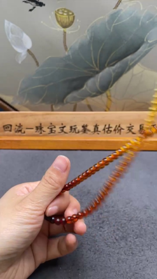 Amber Beeswax Bead Necklace with Non-Natural Gemstones, Total Weight Approx. 6.1g, Size About 6.7mm