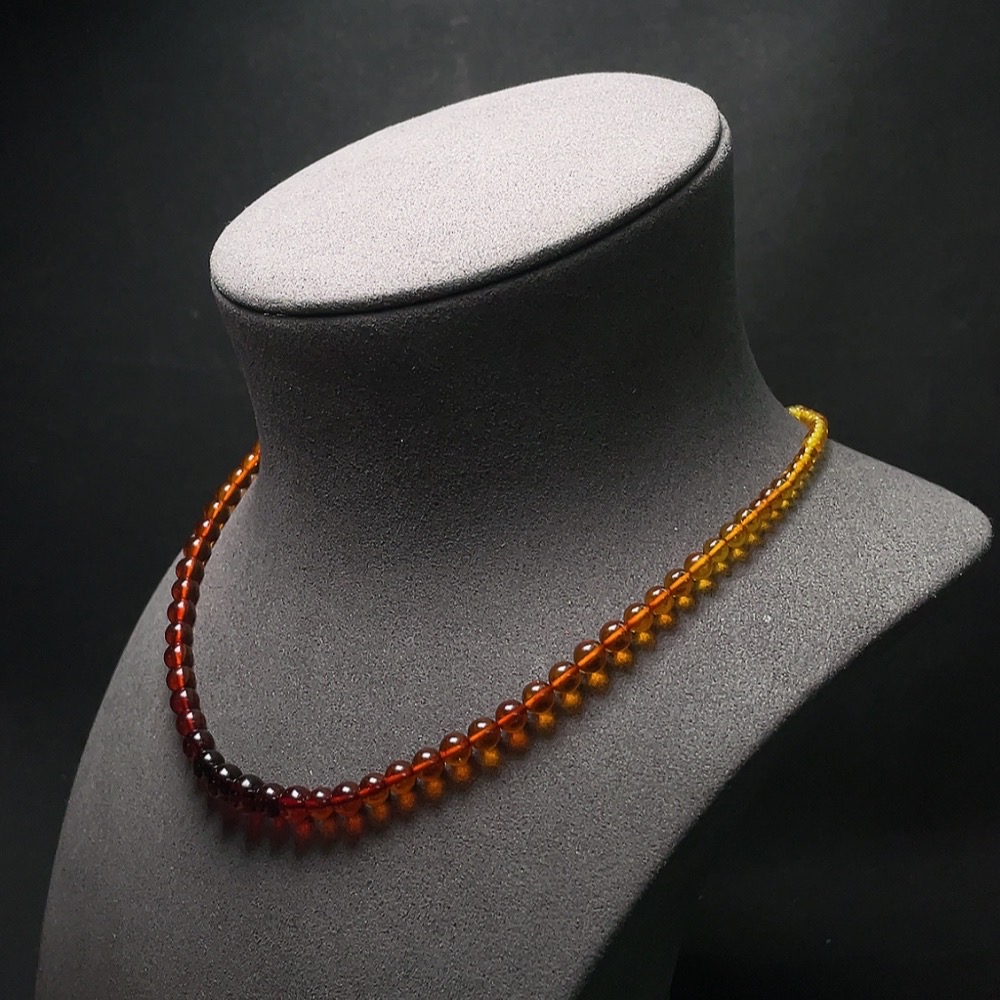 Trezaar - Amber Beeswax Bead Necklace with Non-Natural Gemstones, Total Weight Approx. 6.1g, Size About 6.7mm