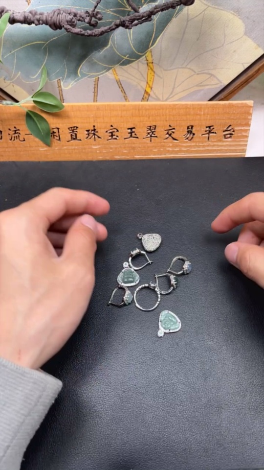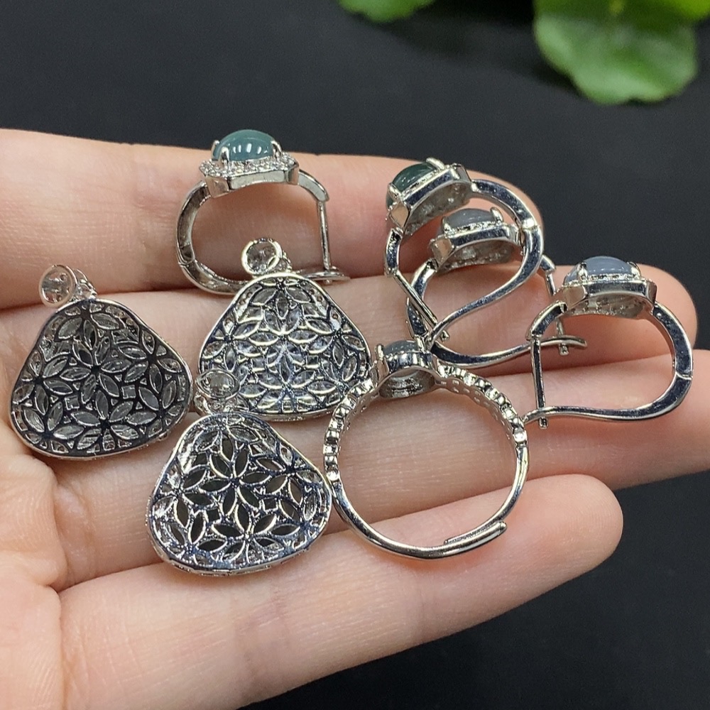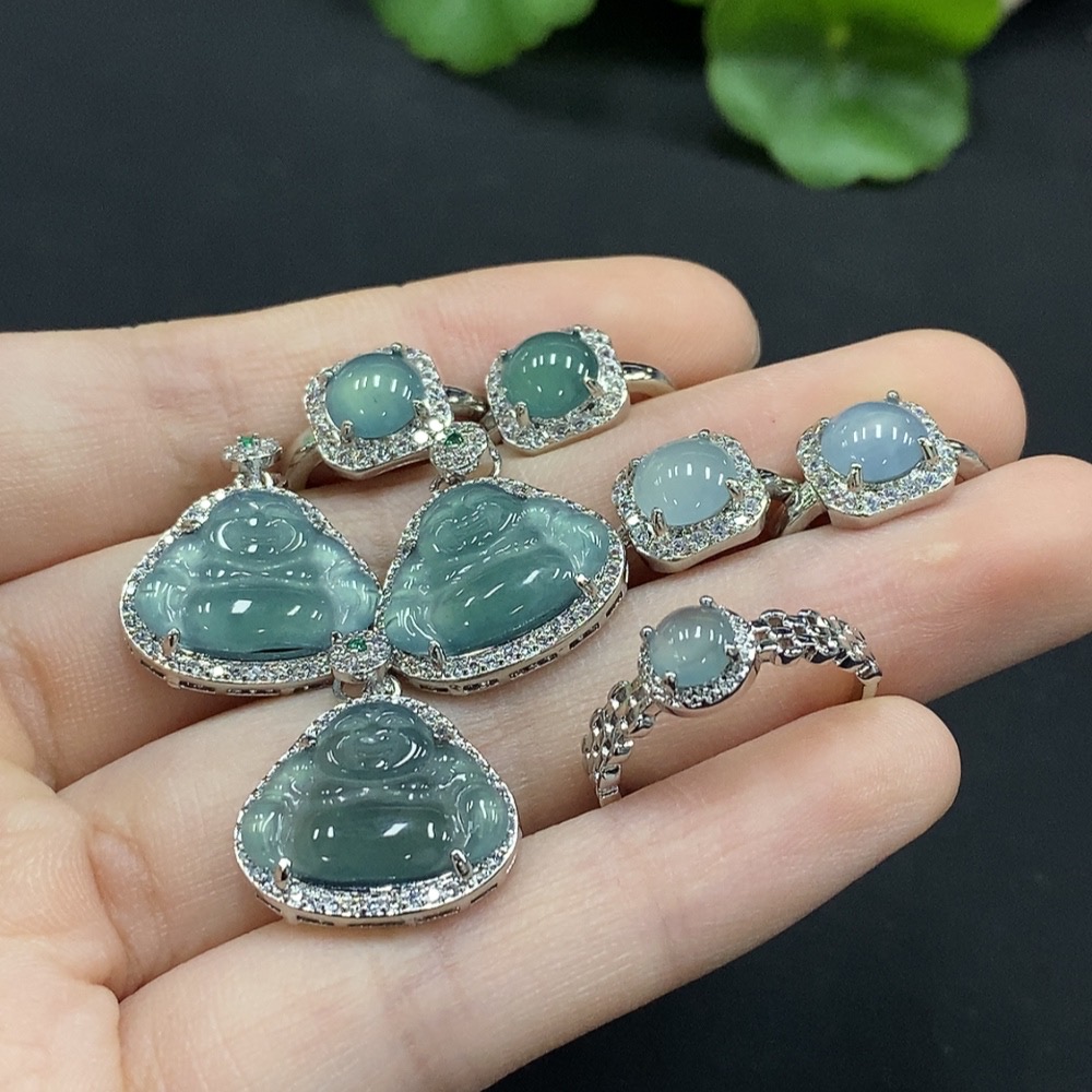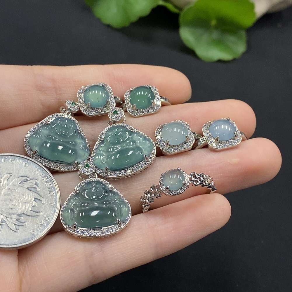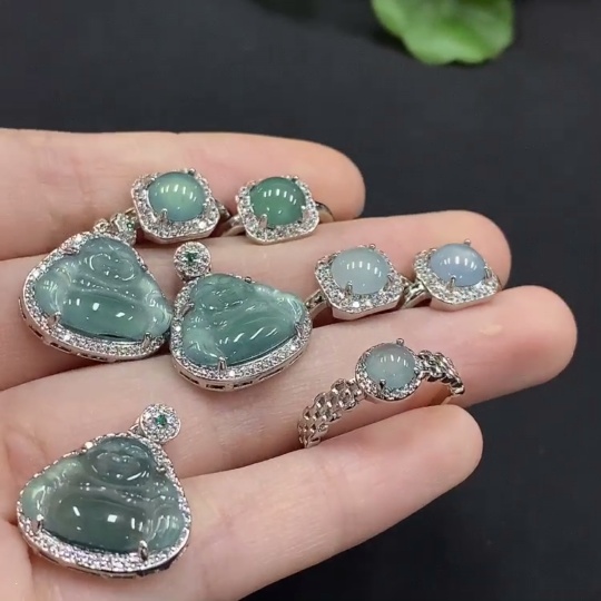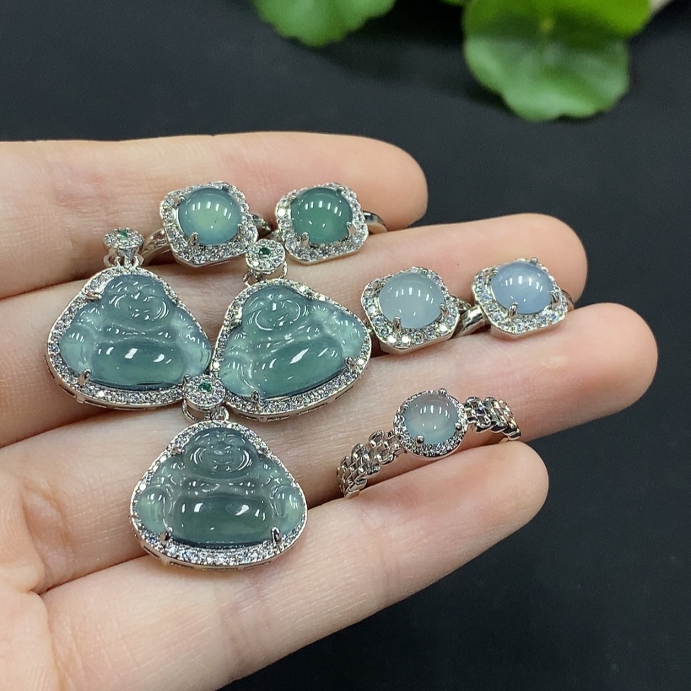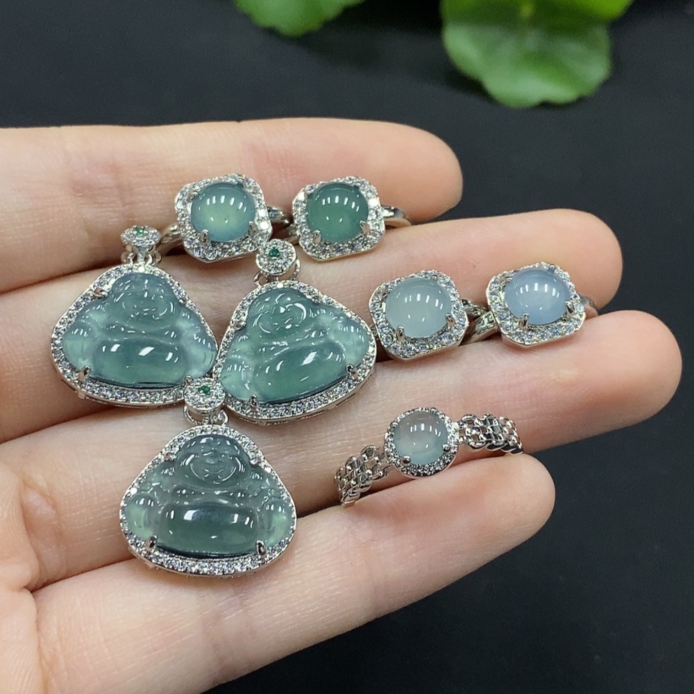 Jadeite Buddha Pendant/ Cabochon Earrings Non-Gold Inlay