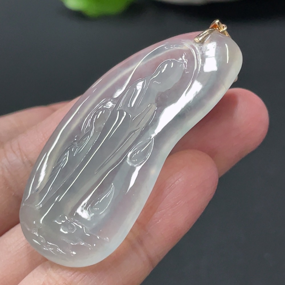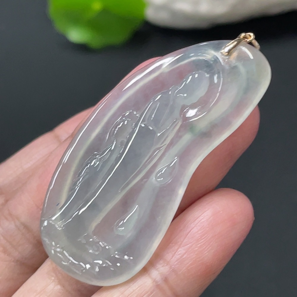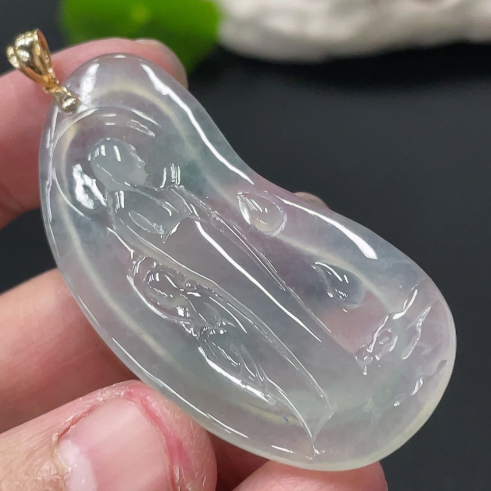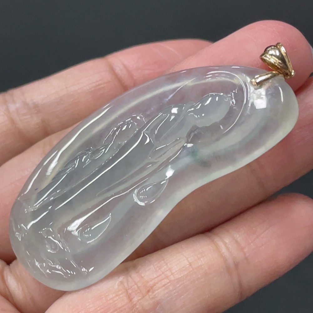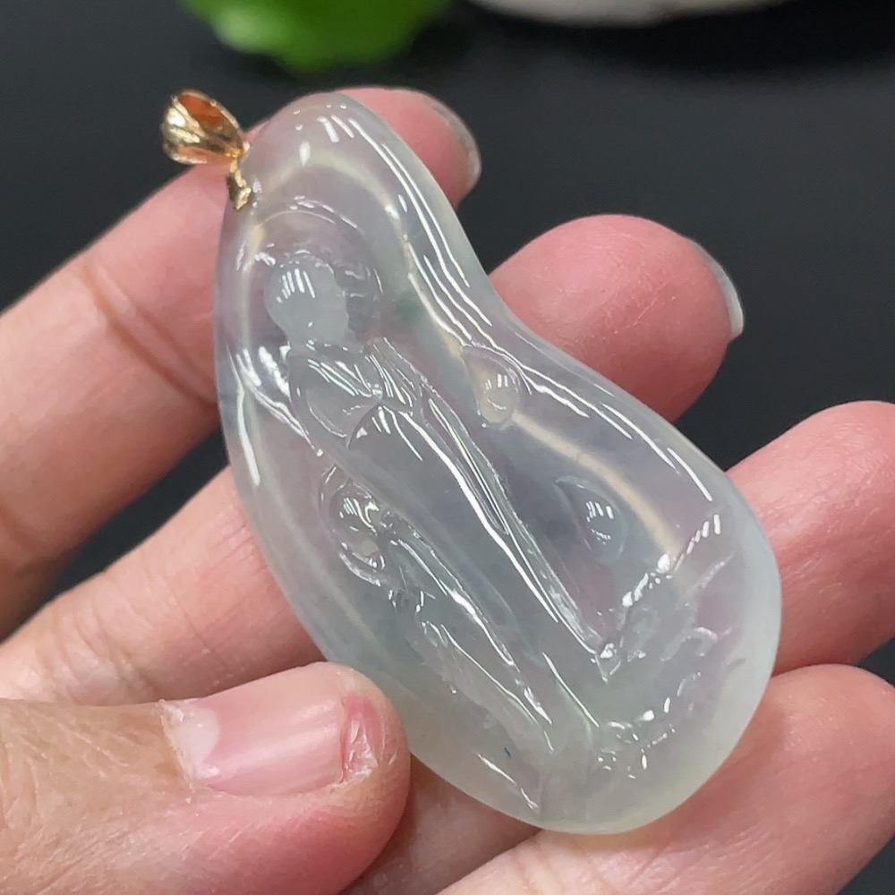 Jadeite Enlightenment Pendant, No Imprint, 18k Gold Clasp, Total Weight Approximately 11.7 Grams