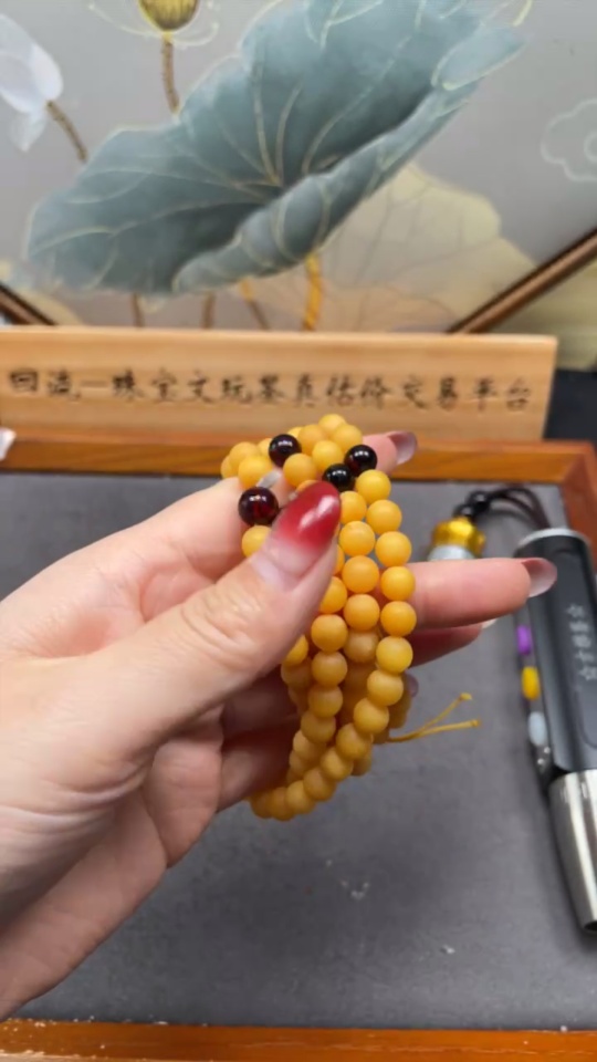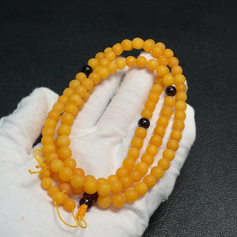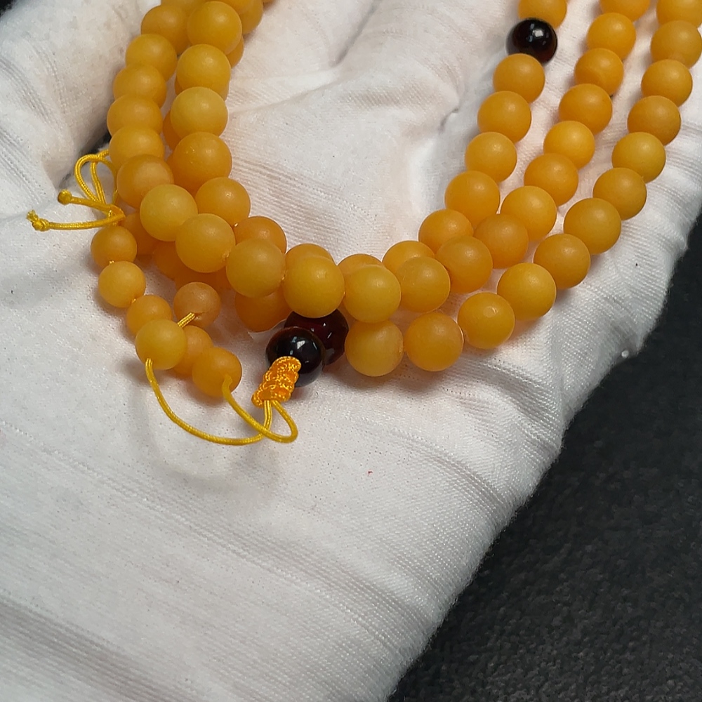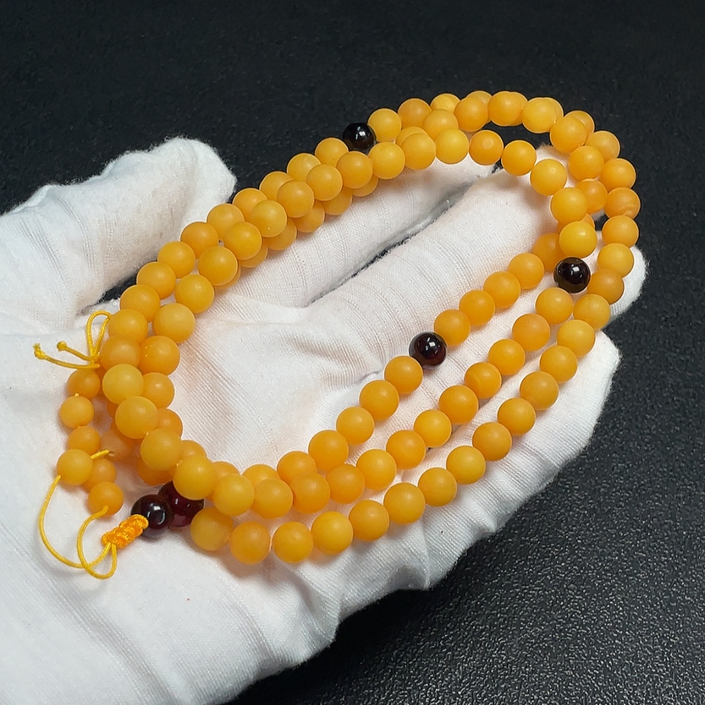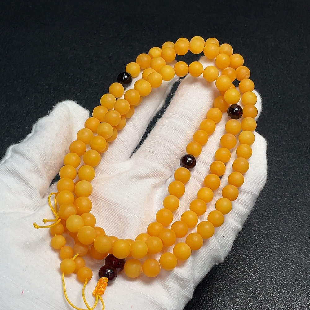 Amber Beeswax Bead Necklace, Total Weight Approx. 24.36g, Size About 7.2mm