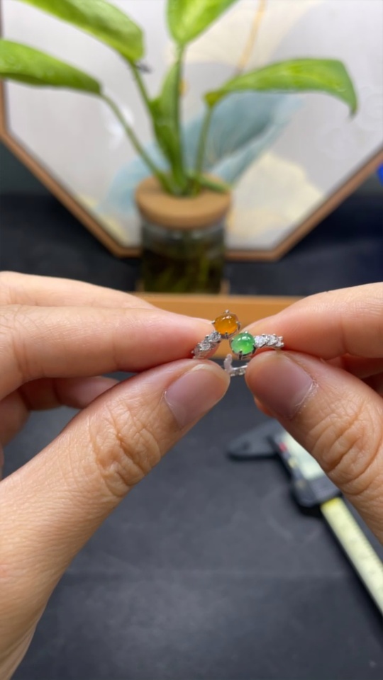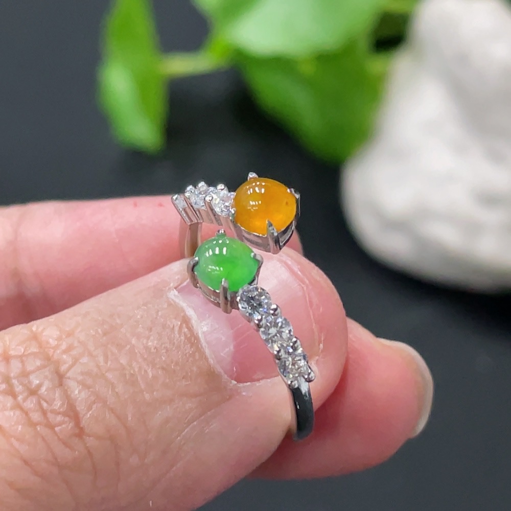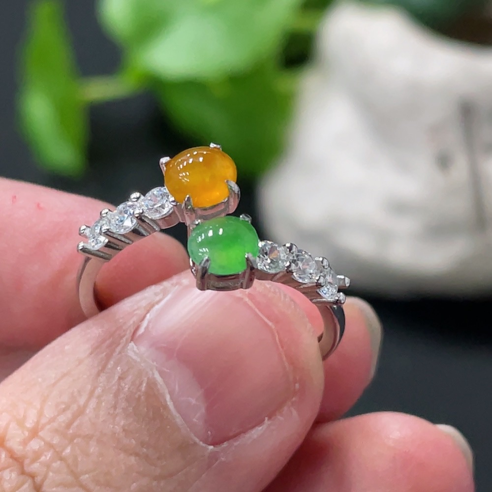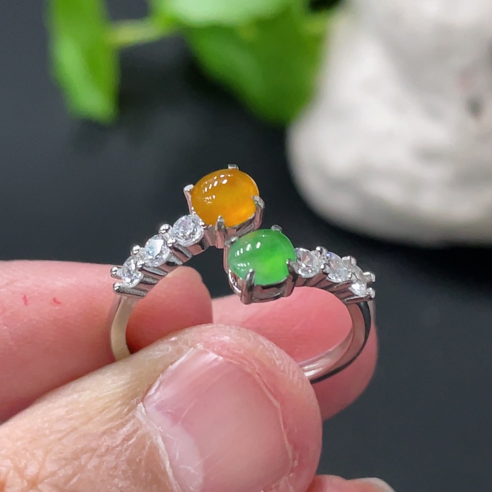 Jadeite Cabochon Inlaid Ring, Non-Gold Setting, Adjustable, Total Weight Approx. 2.1g, Yellow Cabochon Color Origin Undetermined