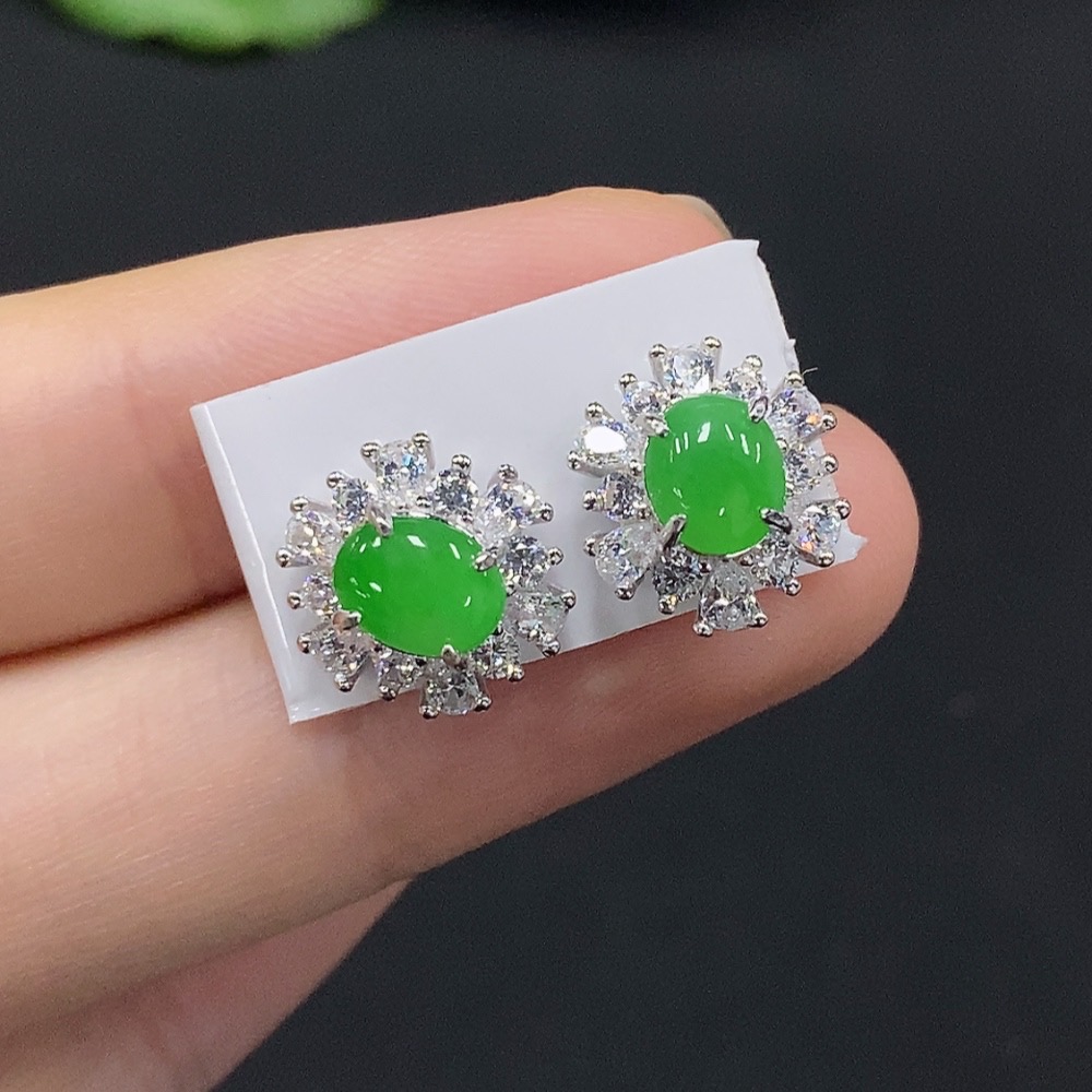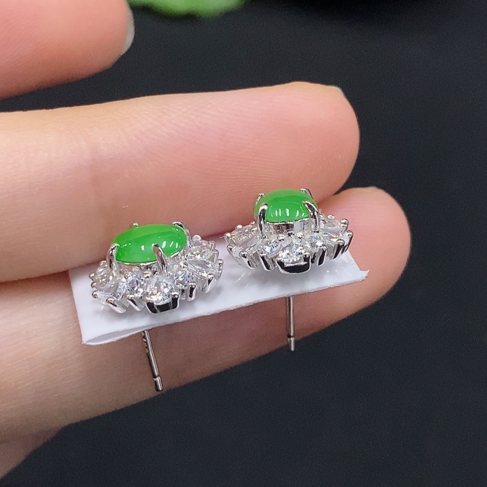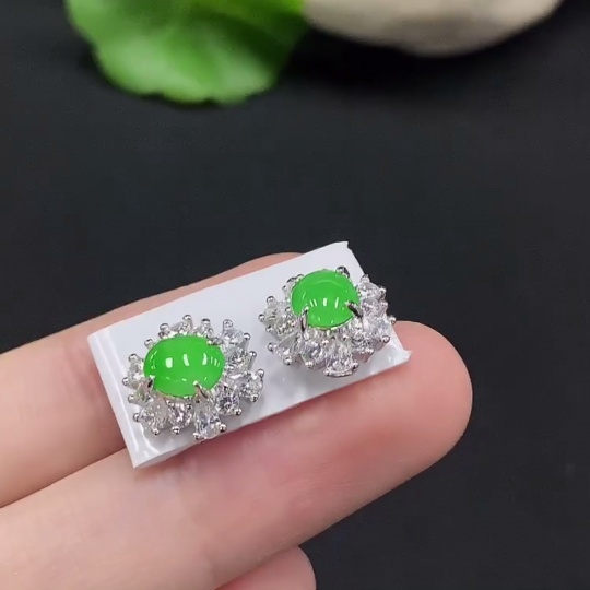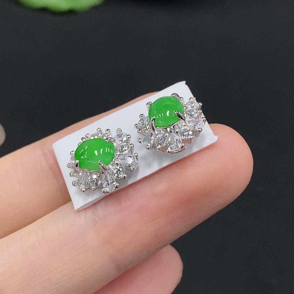 Jadeite Cabochon Earrings Non-Gold Setting Total Weight Approx. 2.79g
