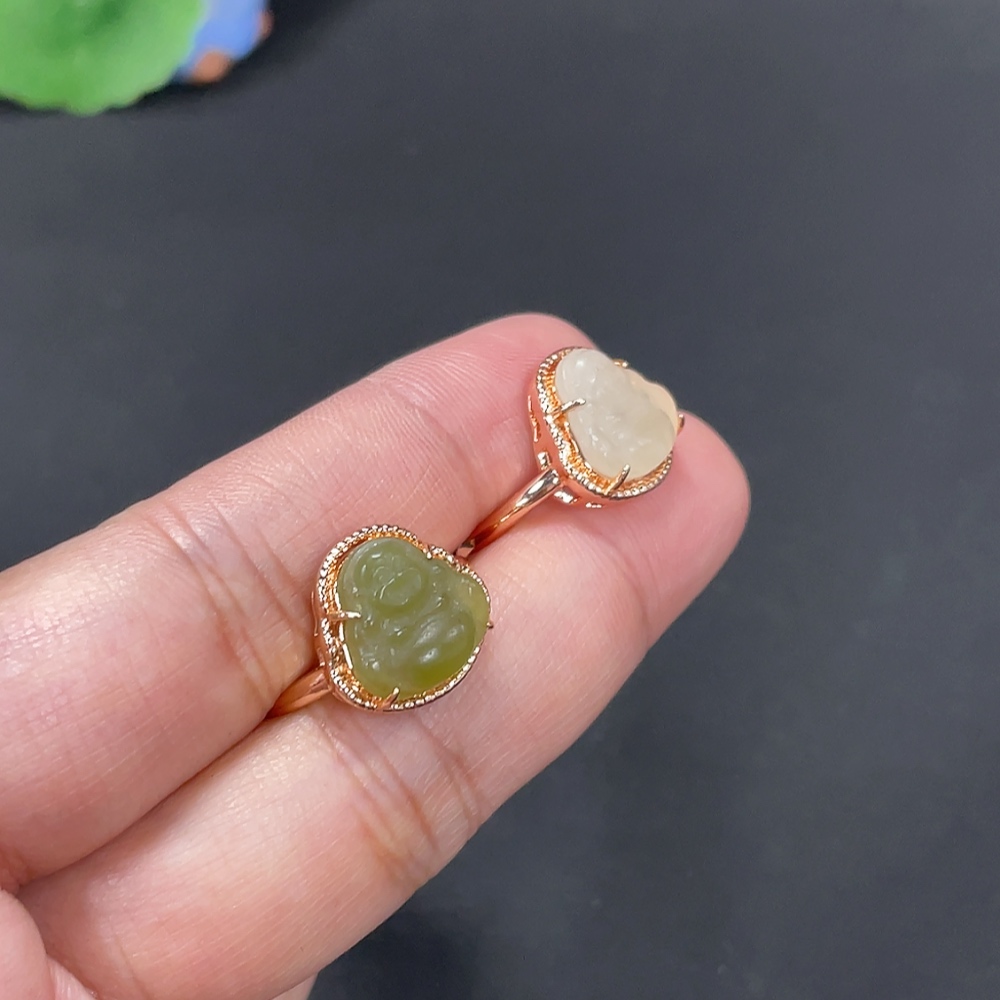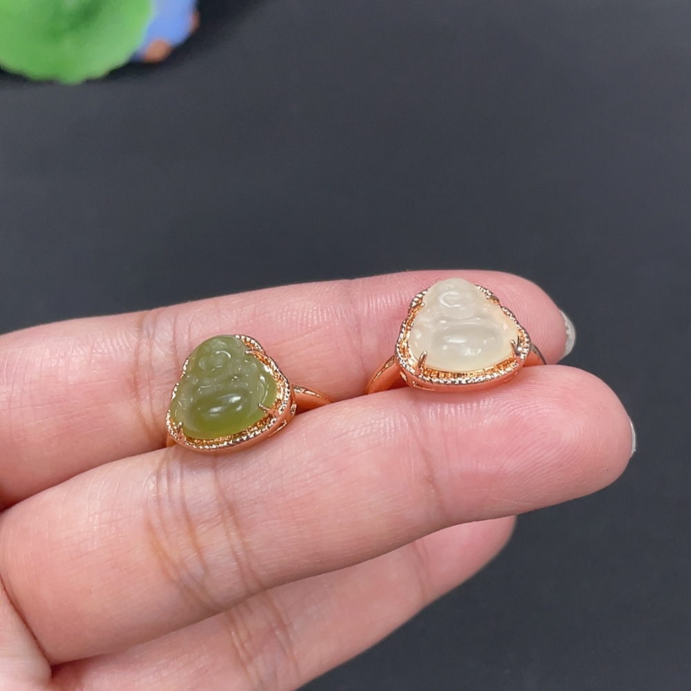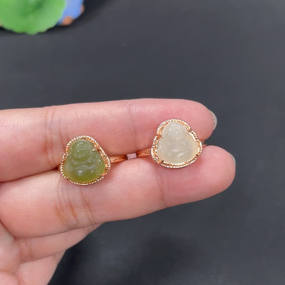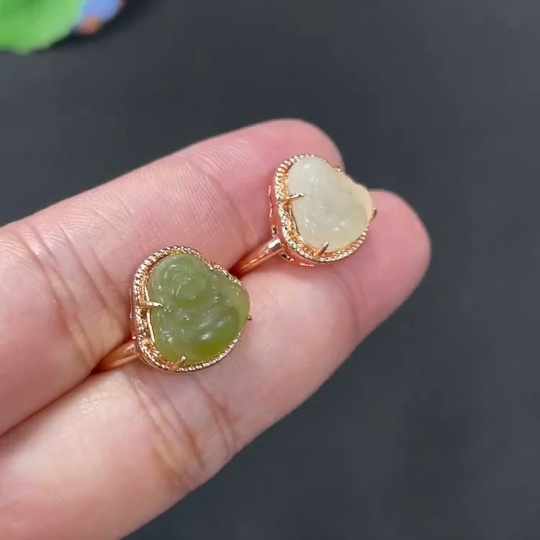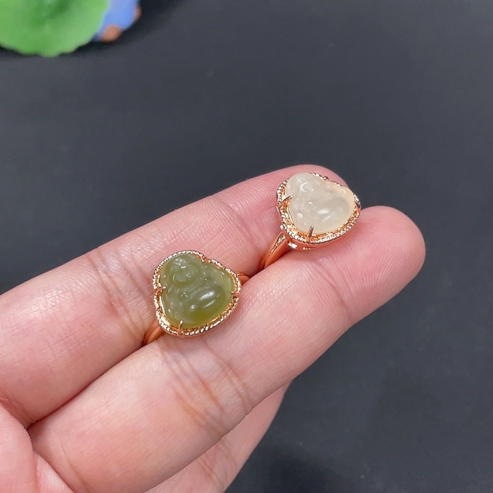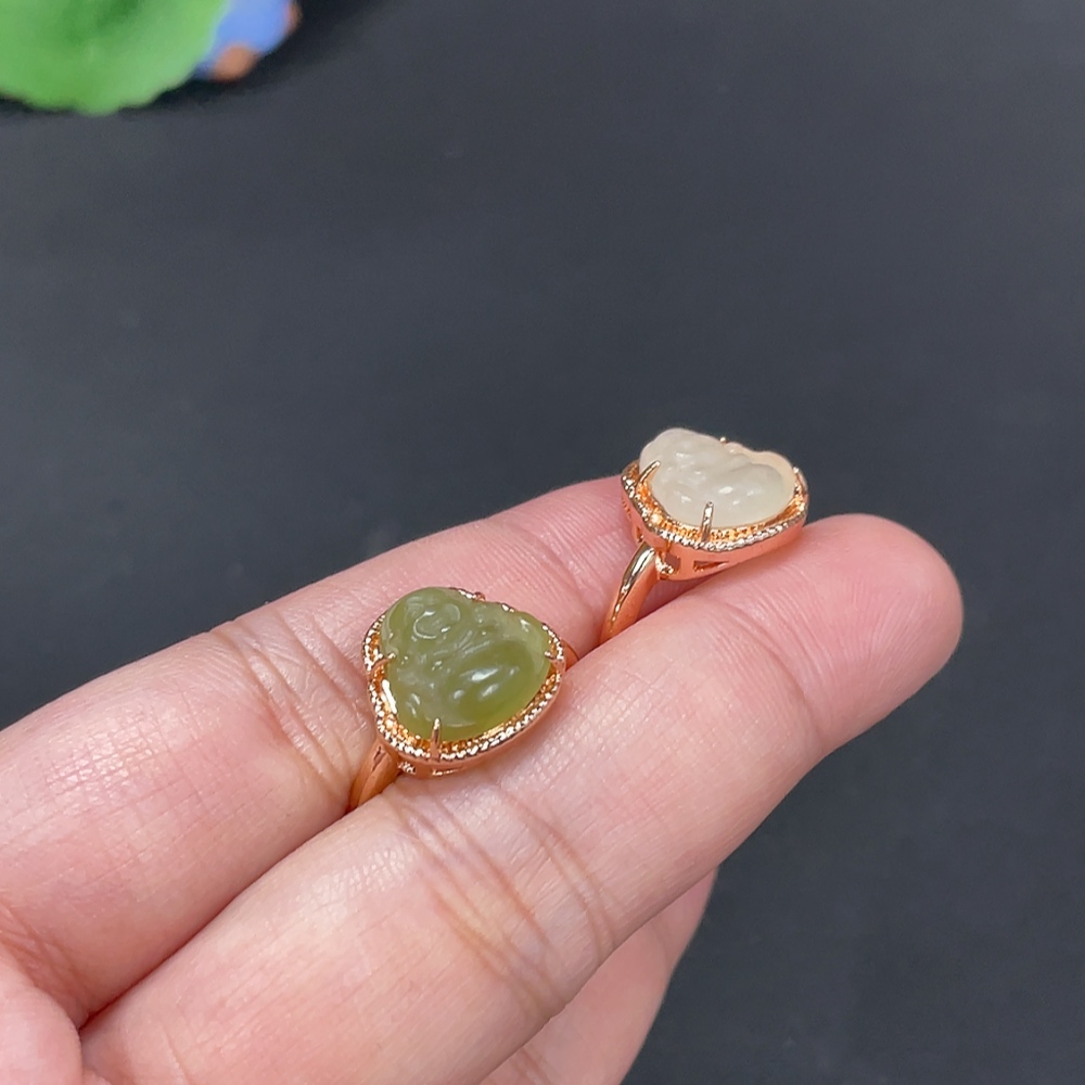 Hetian Jade Inlaid Adjustable Ring Buddha Total Weight Approx.5.3g Non-Gold