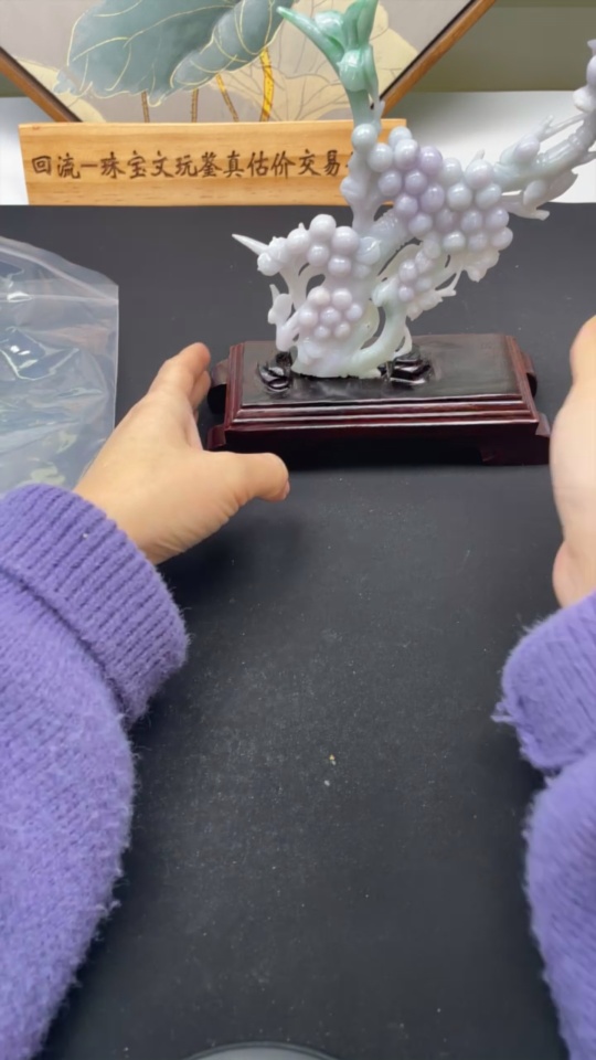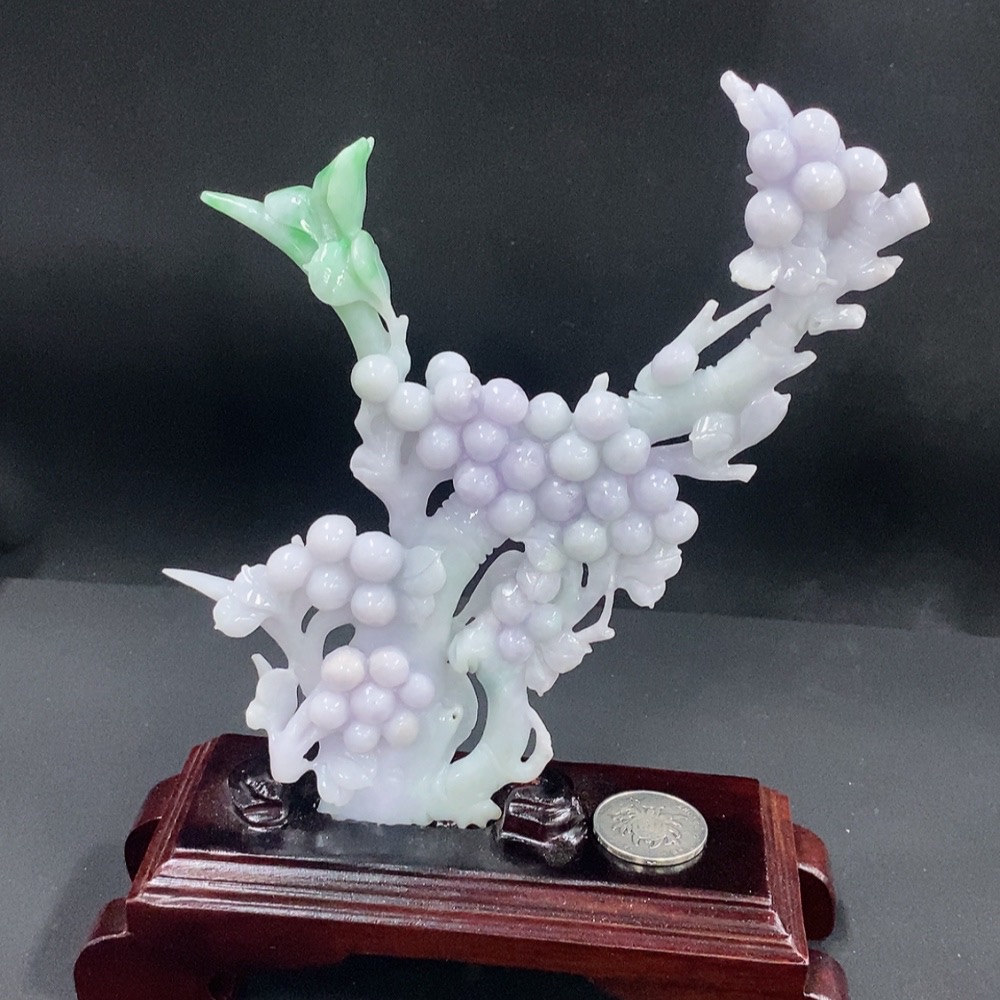 Jadeite ornament with base (wax-heavy), total weight approx. 194.22g excluding base