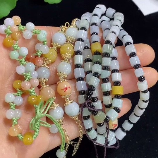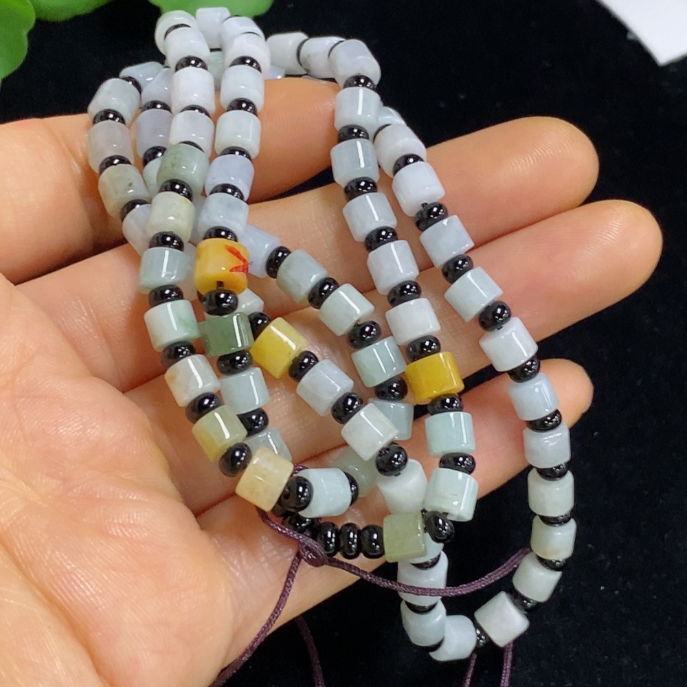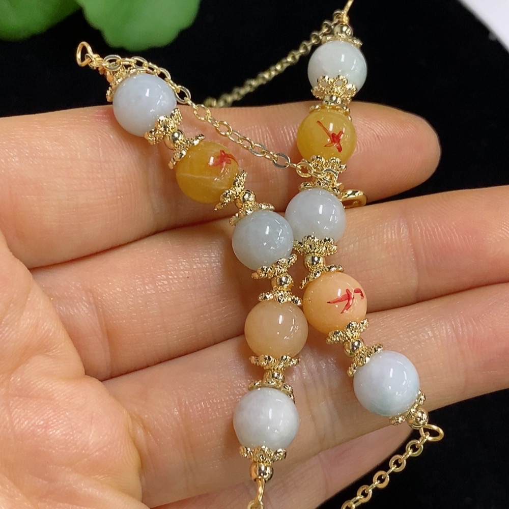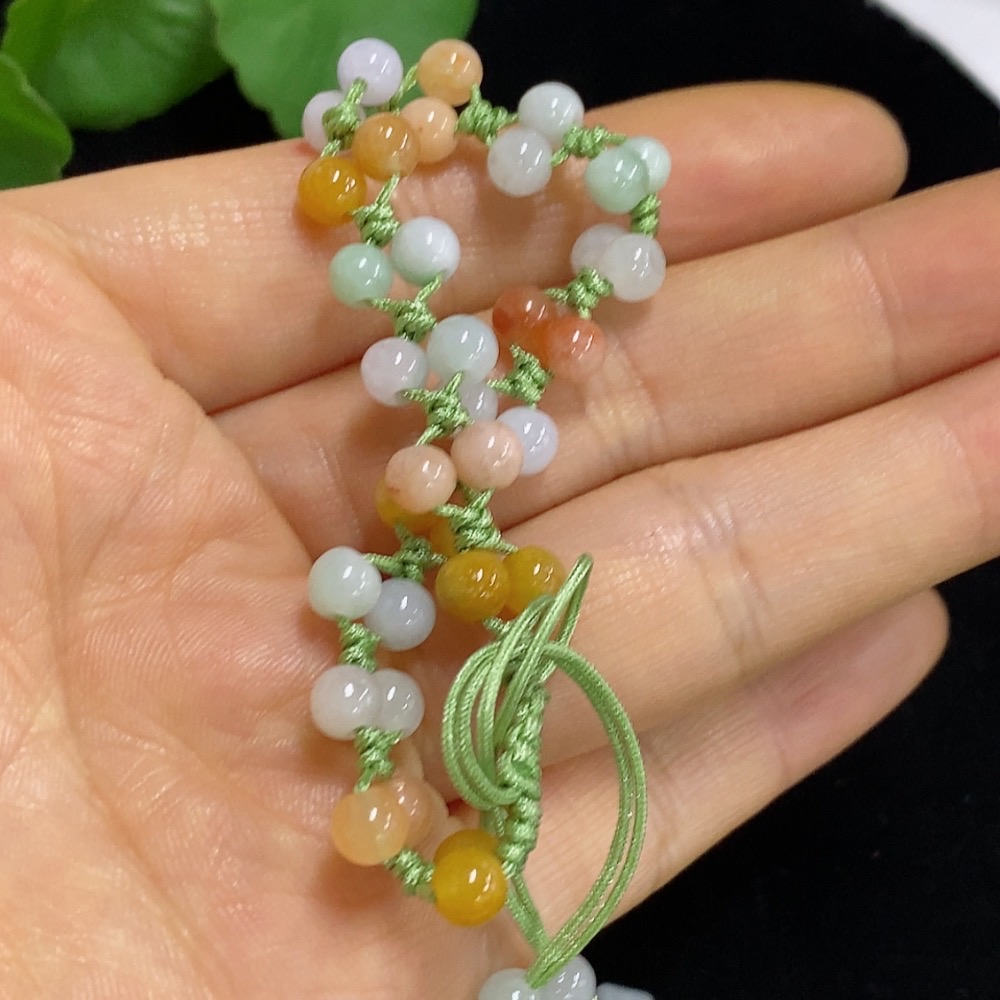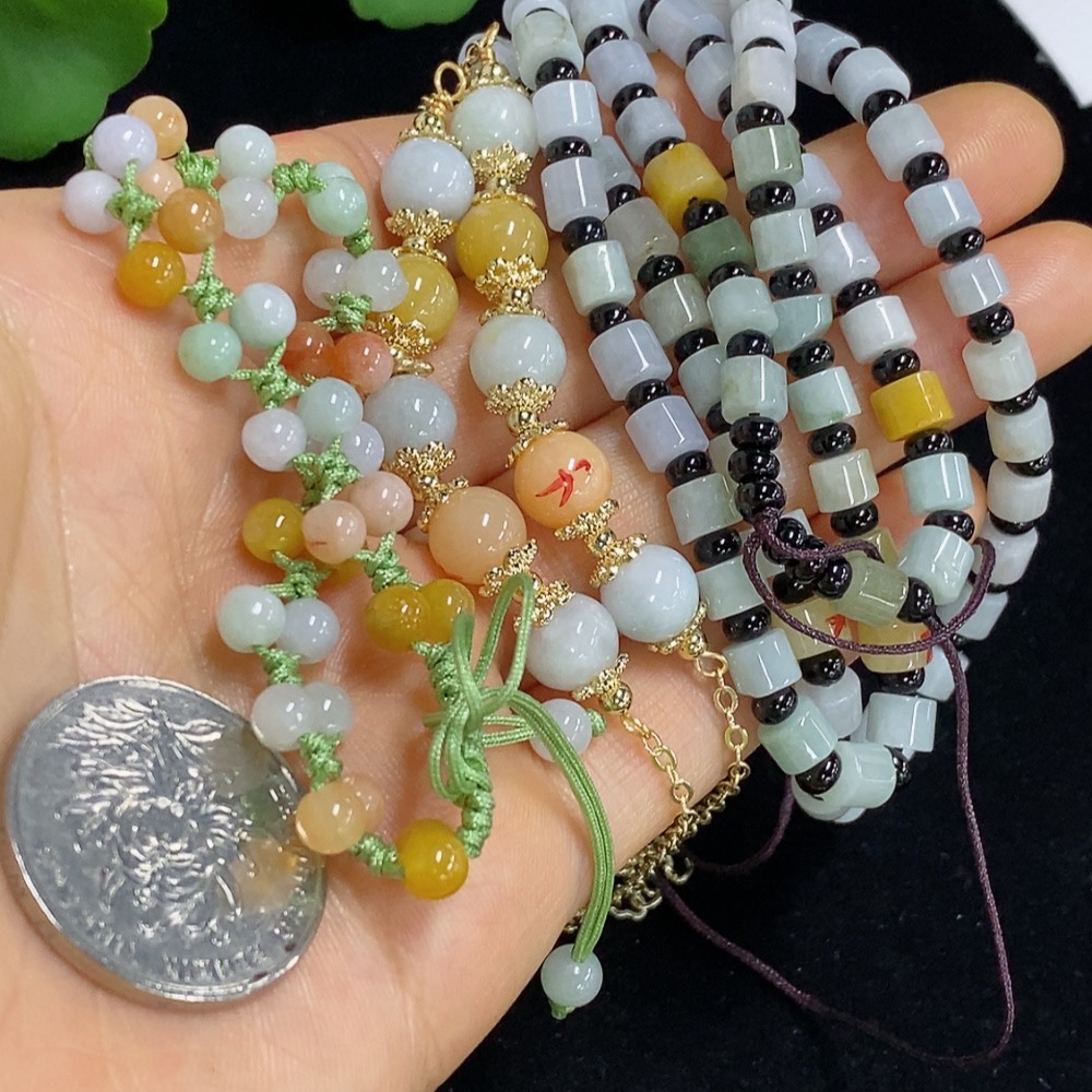Jadeite bead necklace (with non-A grade beads and mixed stones) / wrist rope + bracelet (with non-A grade yellow and red beads and mixed stones) non-gold total product weight approx. 50.65g