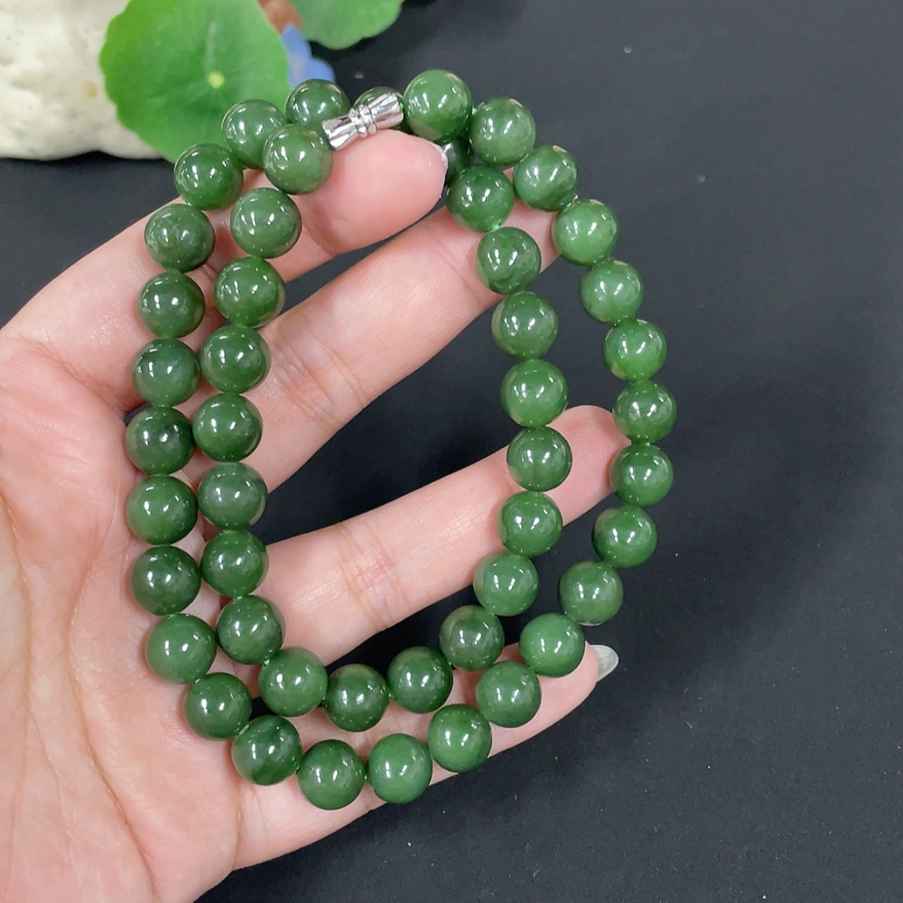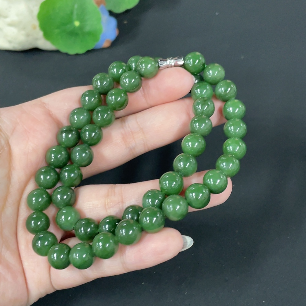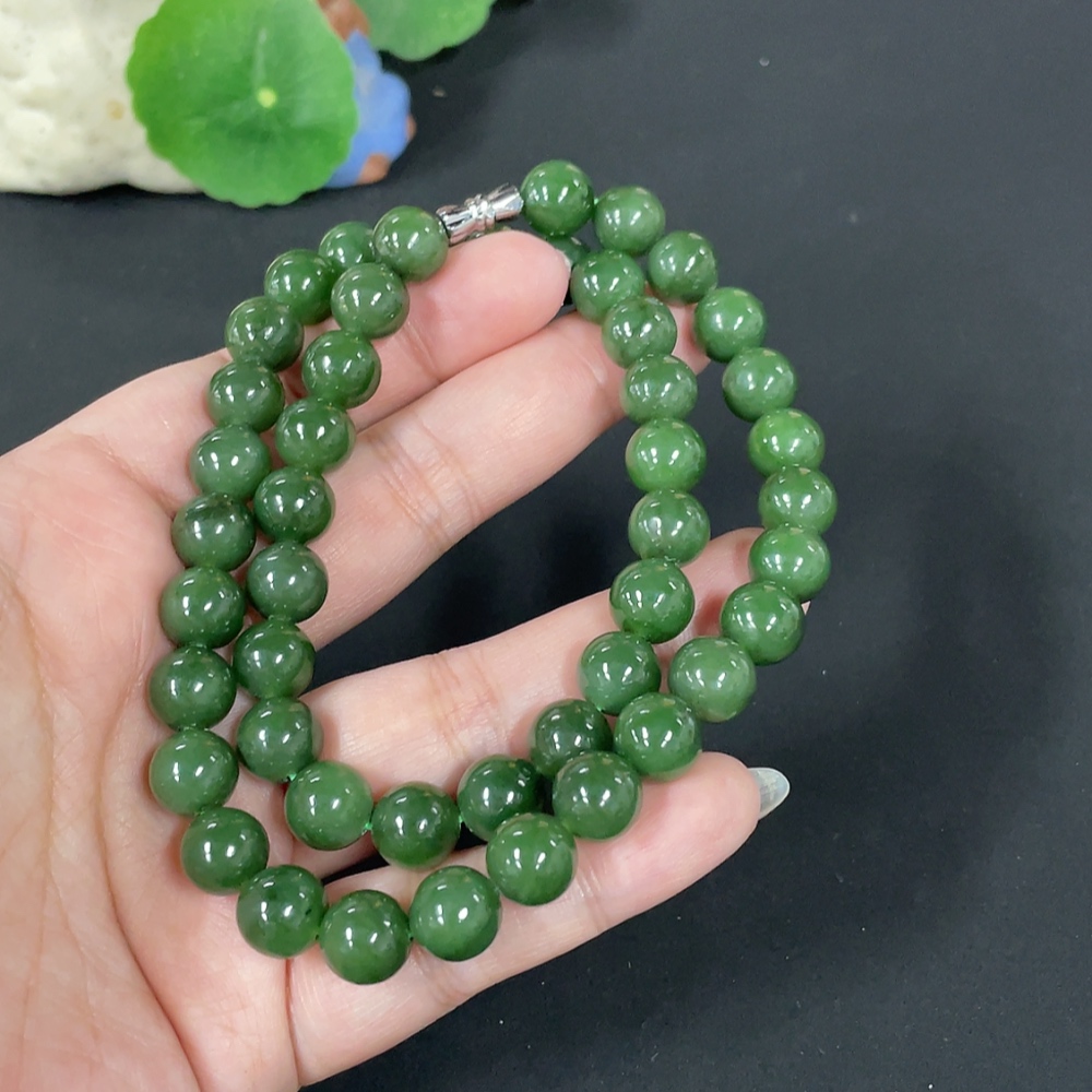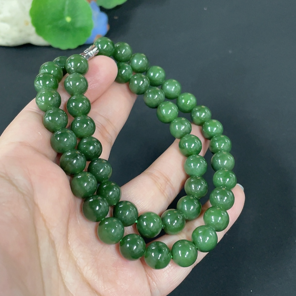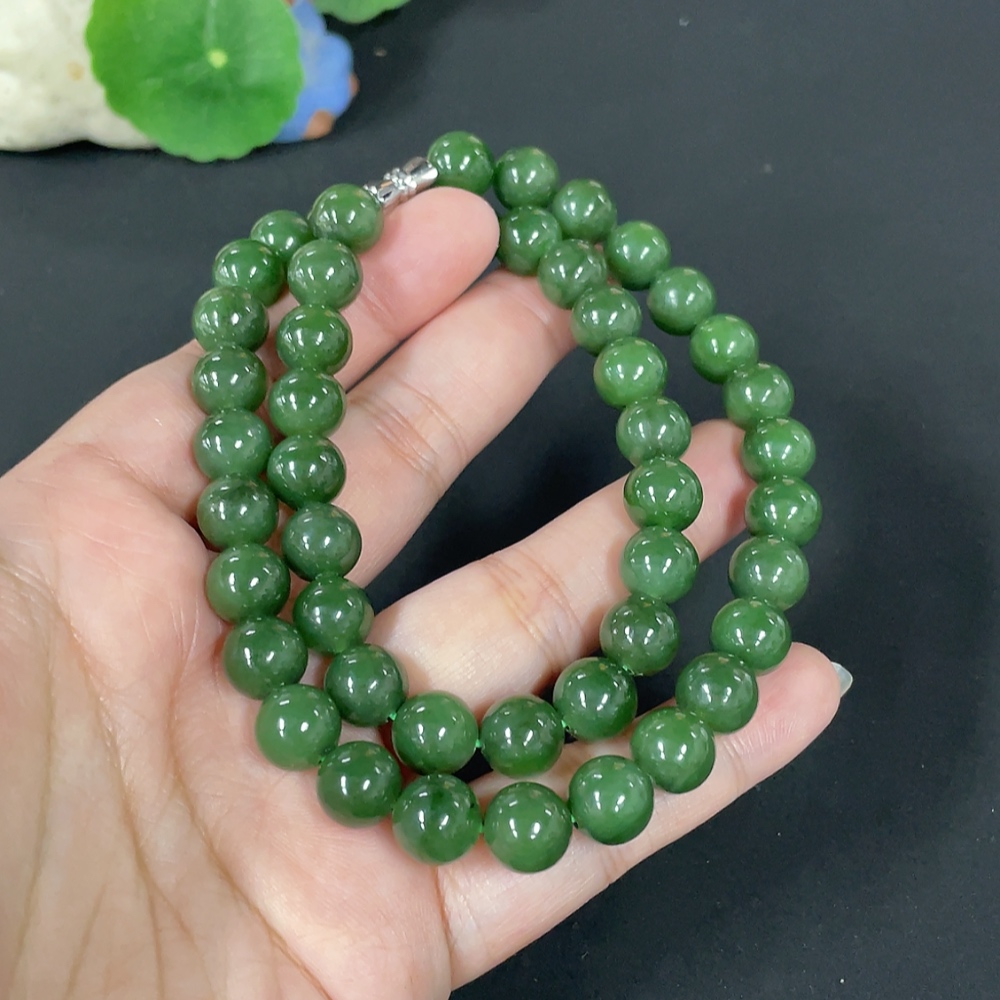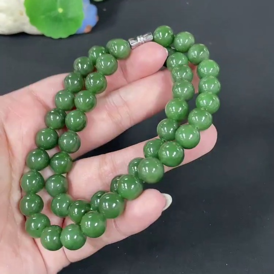 Hetian Jade Jasper Bead Necklace Approx. 9.5mm Total Weight Approx. 67.6g
