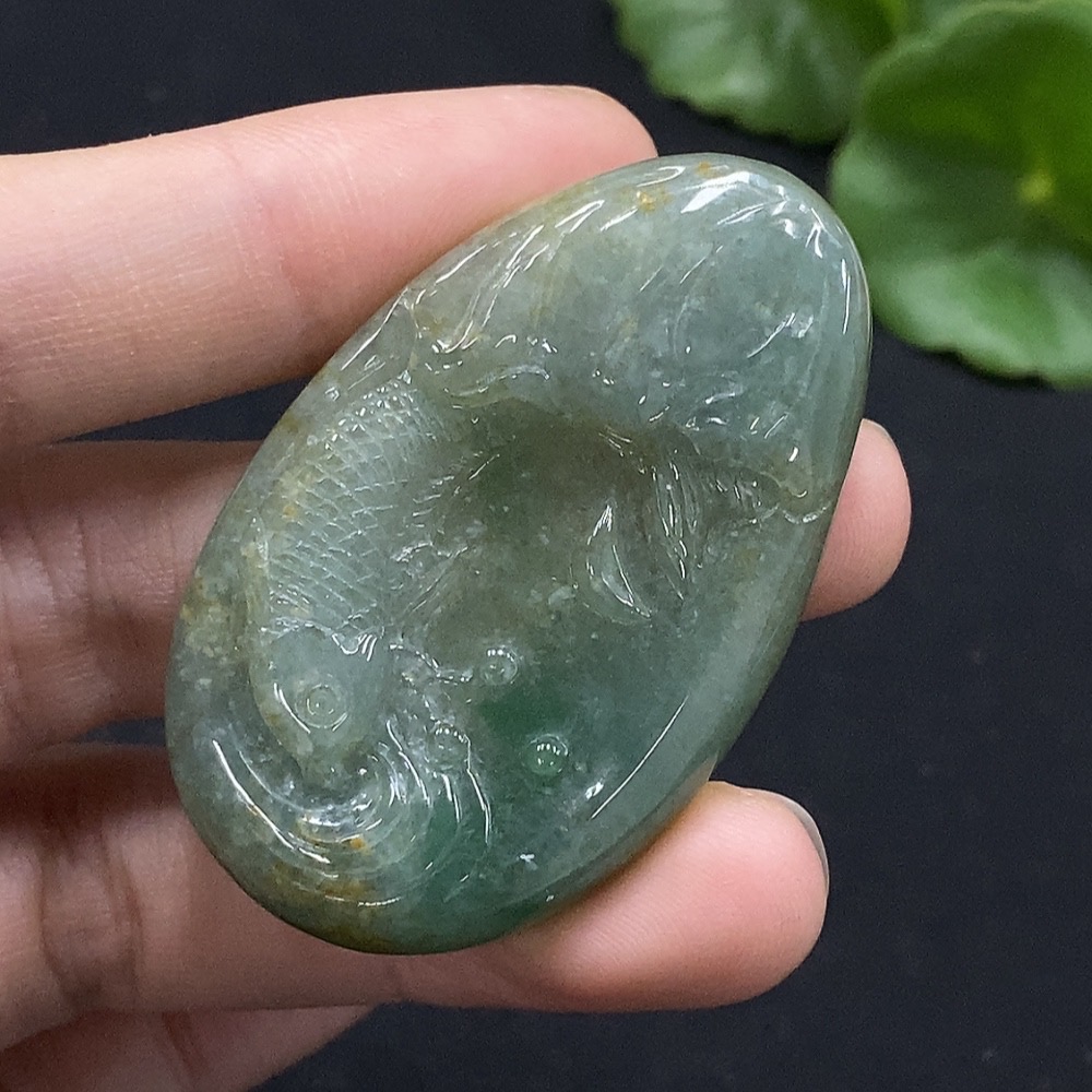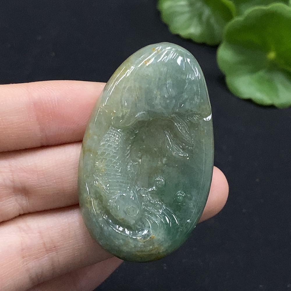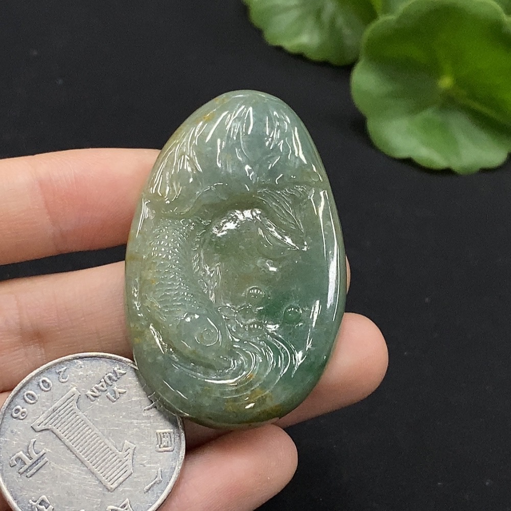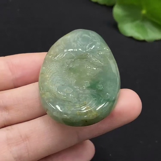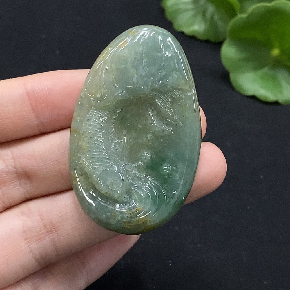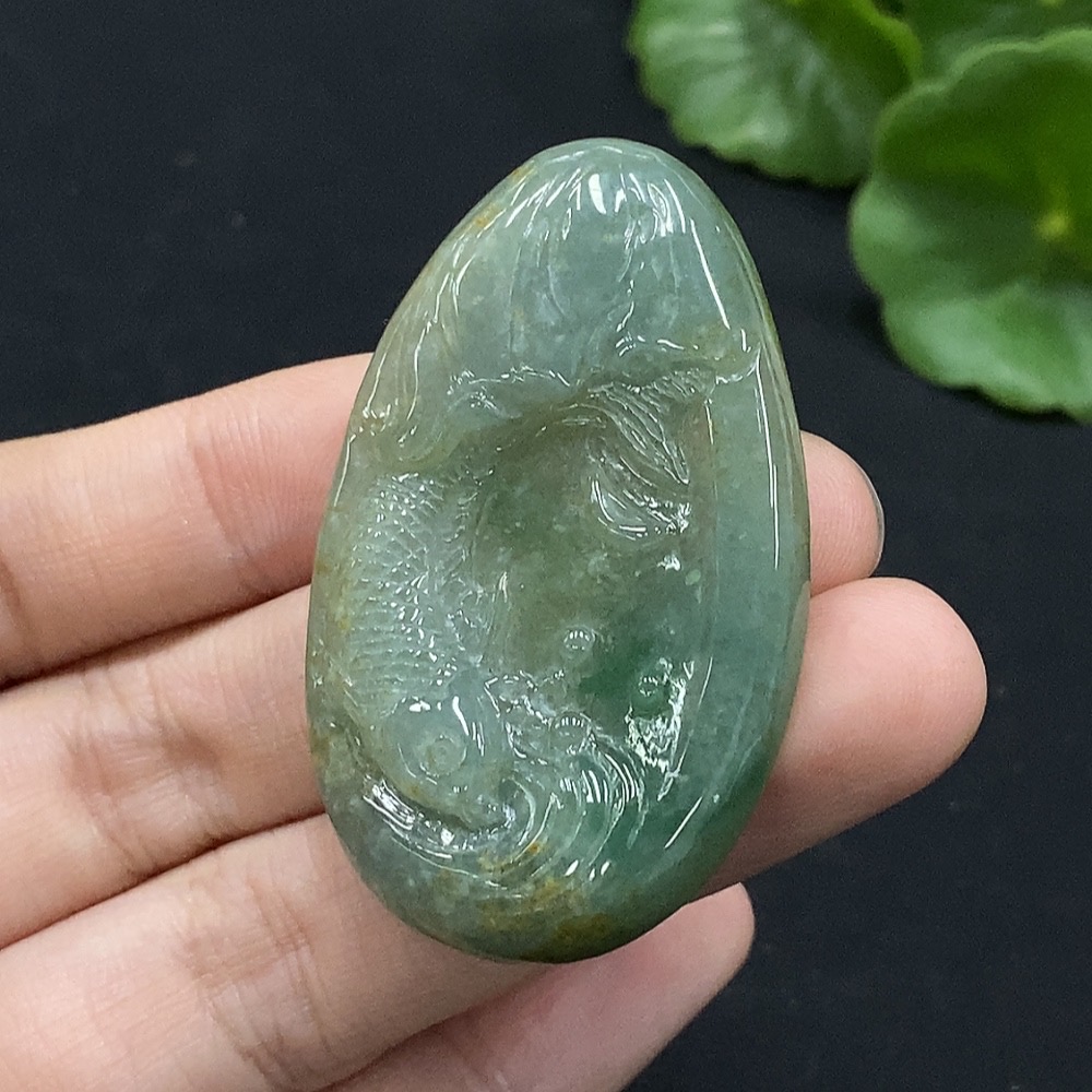 Jadeite Lotus Leaf Fish Pendant Total Weight Approx. 17.63g