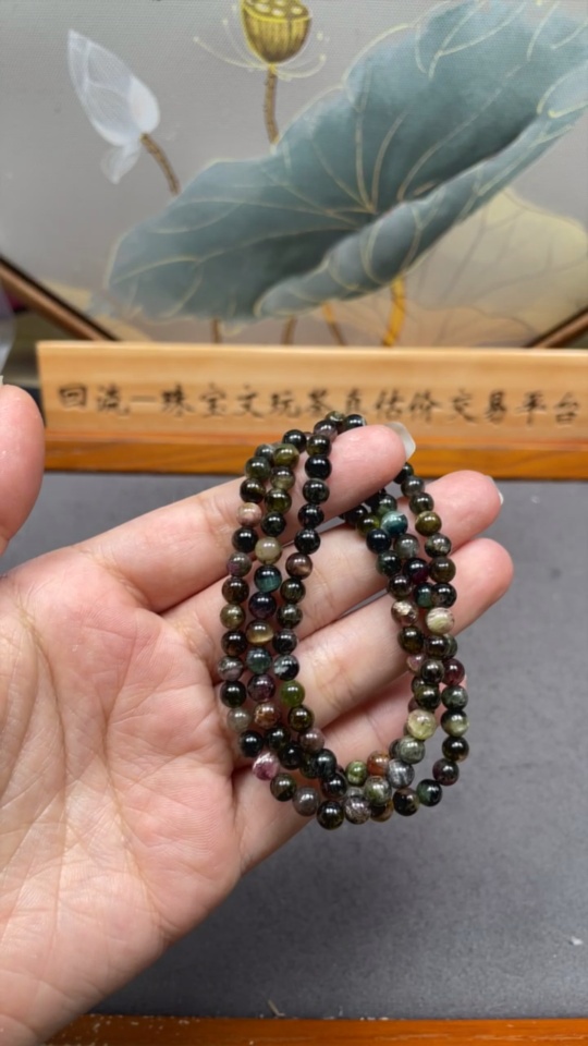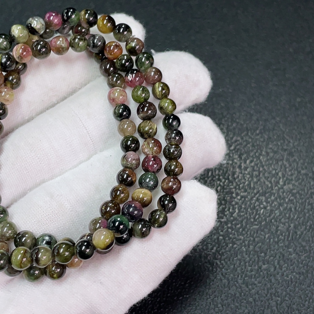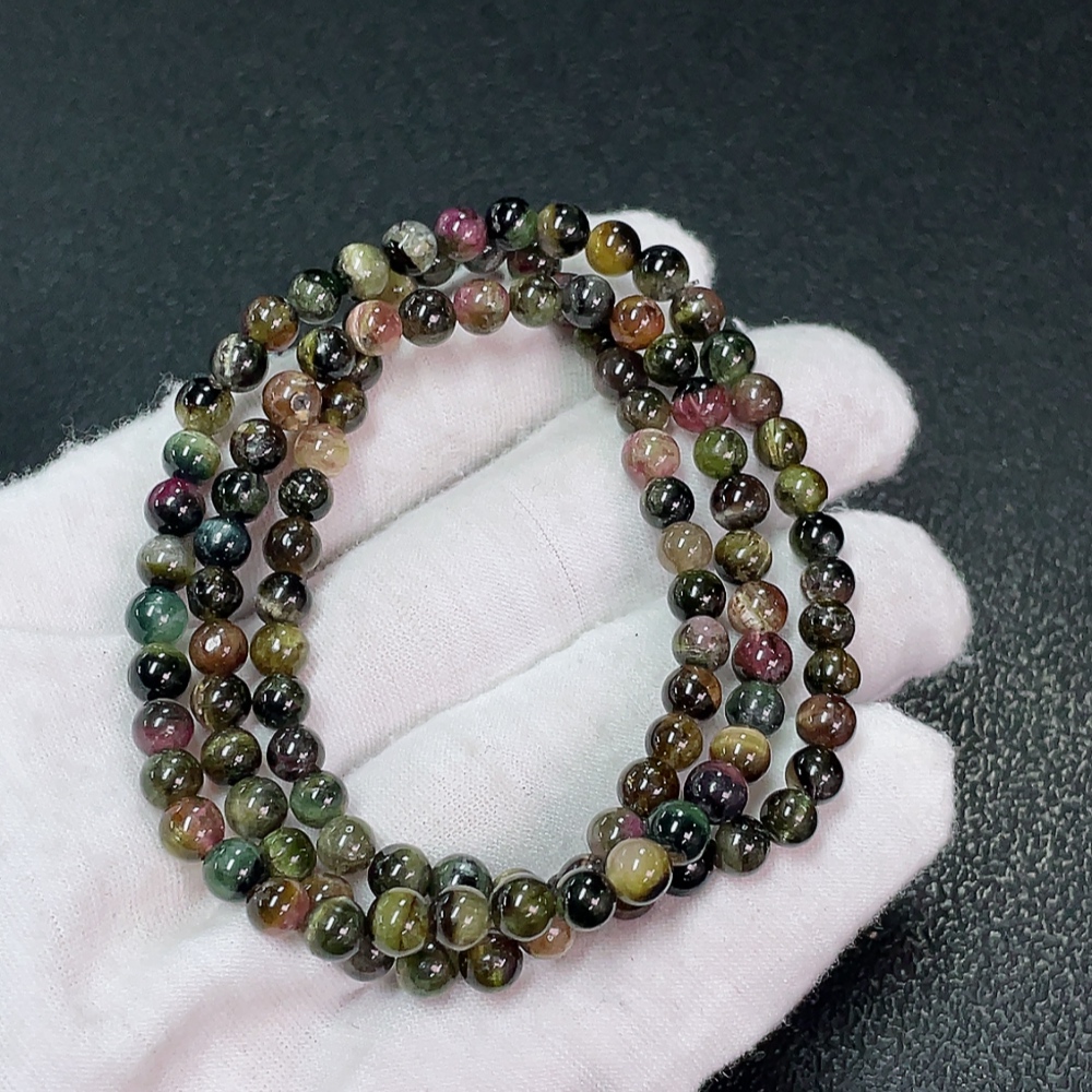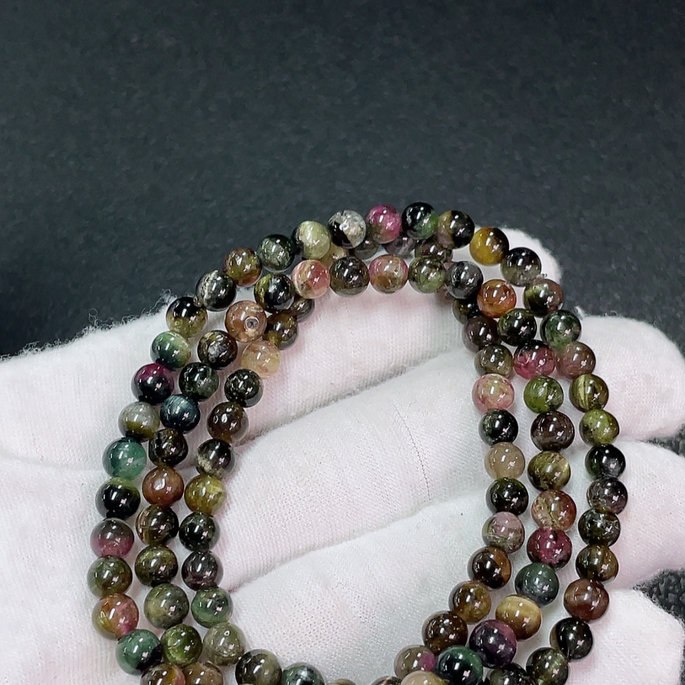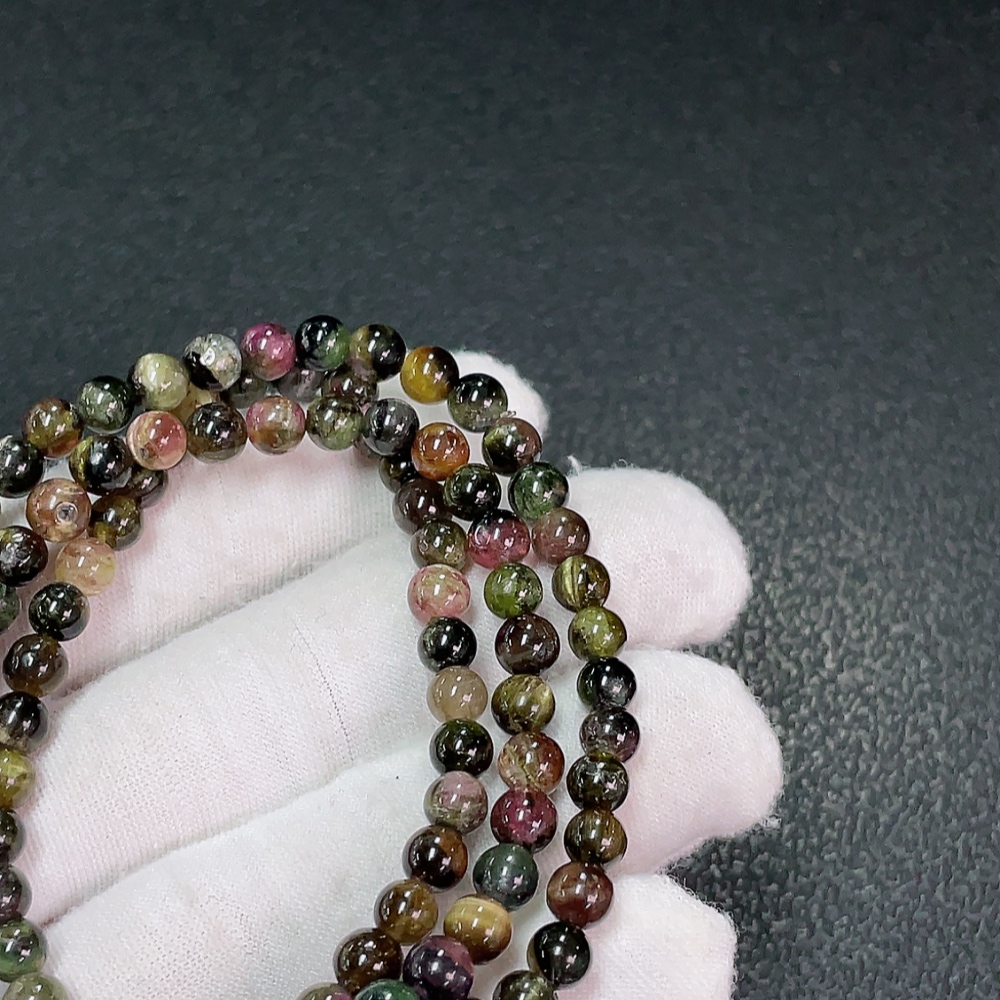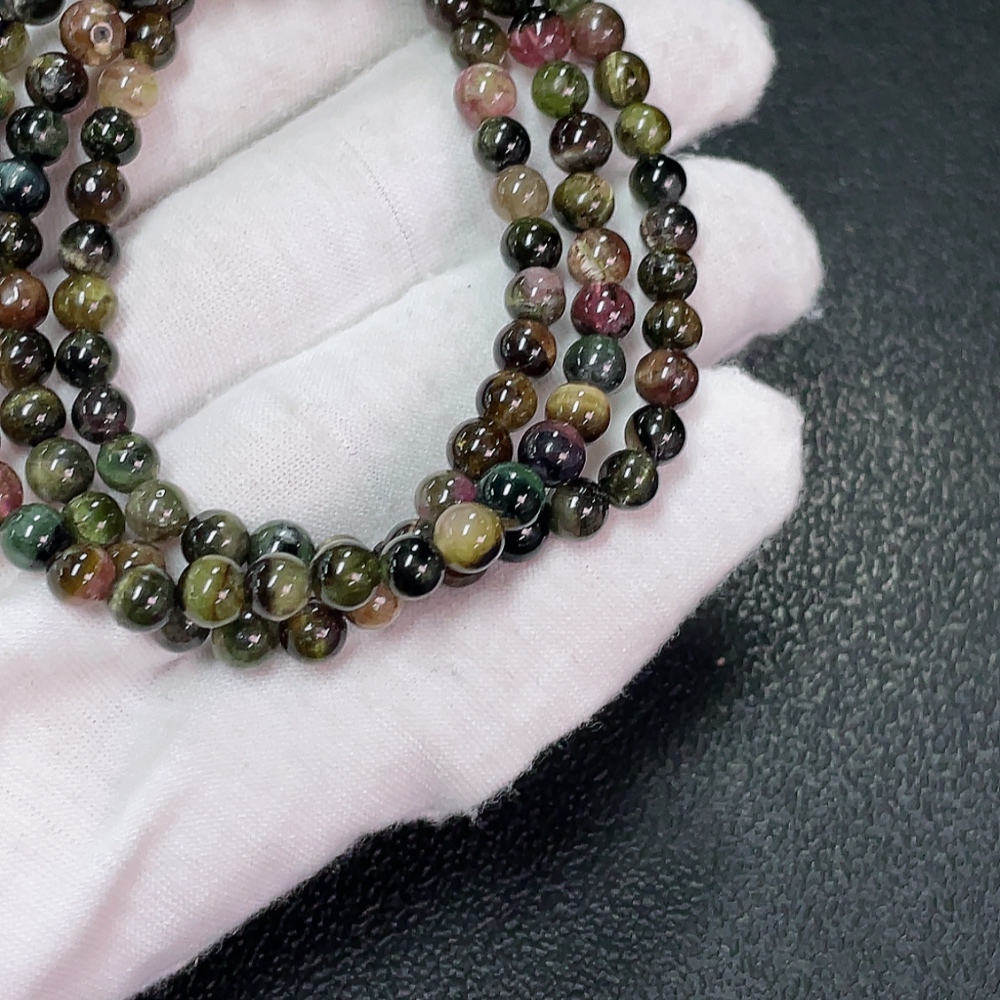 Tourmaline bead necklace containing other mineral components with visible organic matter, total weight approximately 22.40g, bead size about 5.2mm