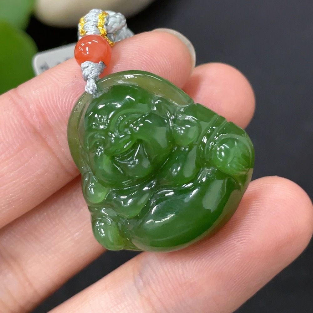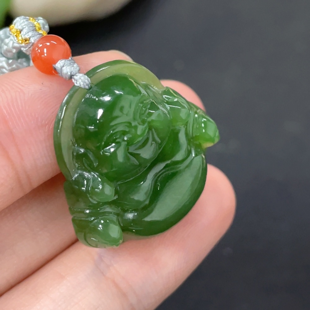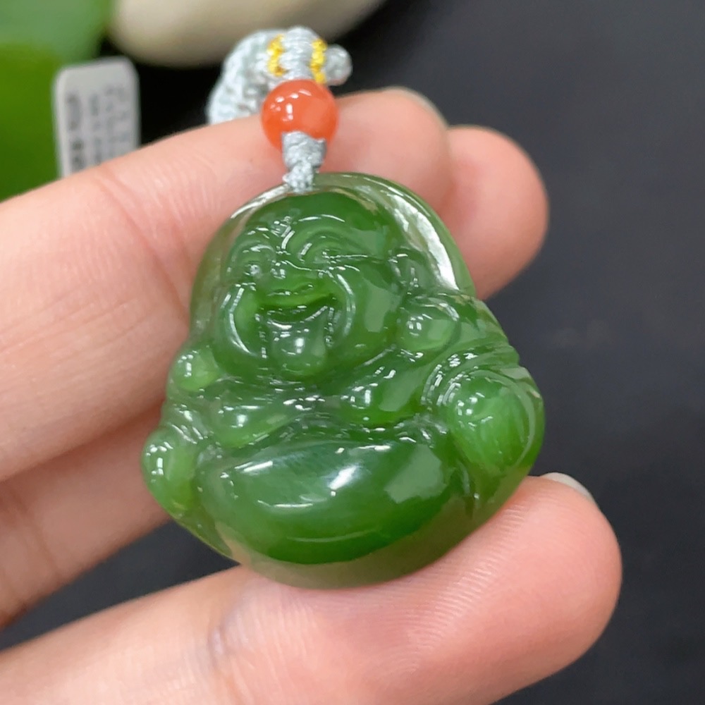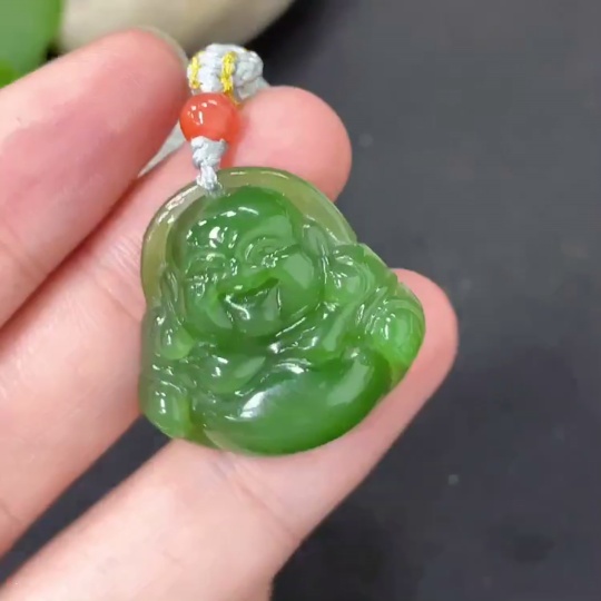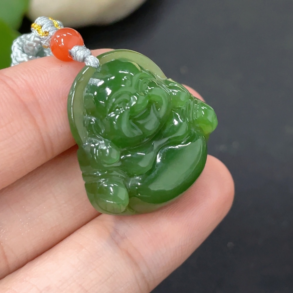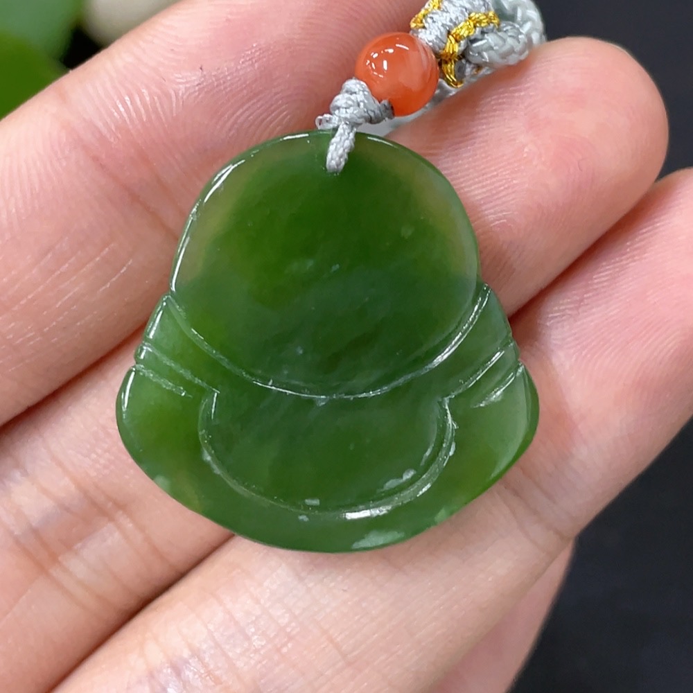 Hetian Jade Pendant Buddha with Non-Hetian Jade Beads Total Weight Approx. 8.5g (Incl. Cord)