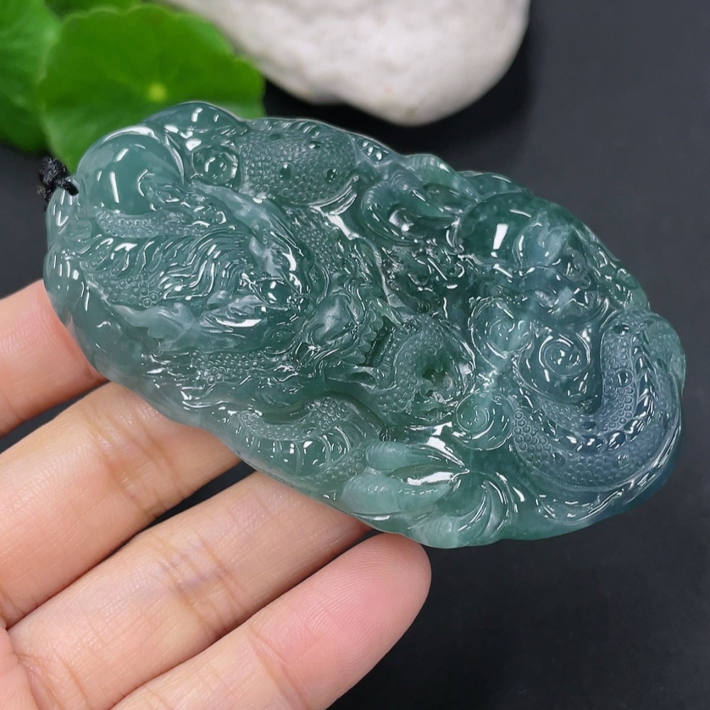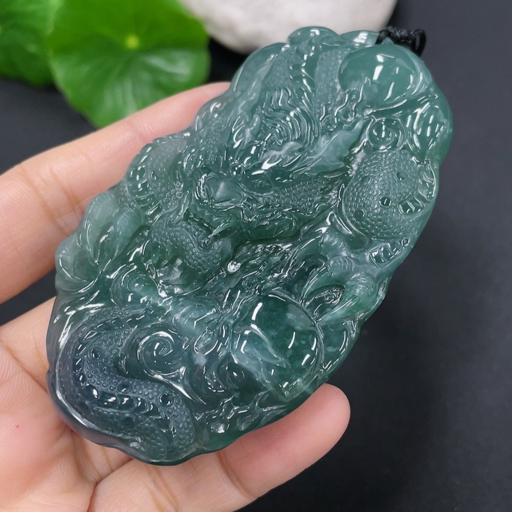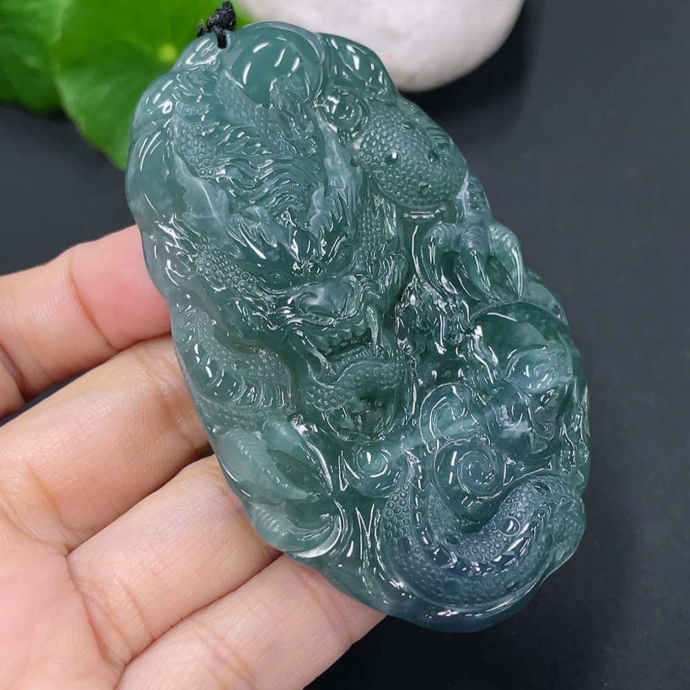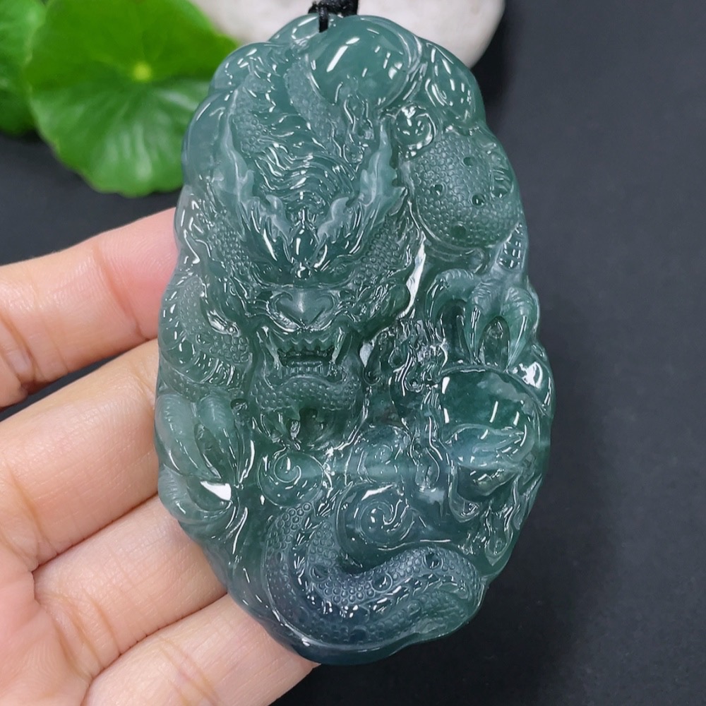 Jadeite Pendant Dragon Plaque Total Weight Approx. 52.7g Including Rope