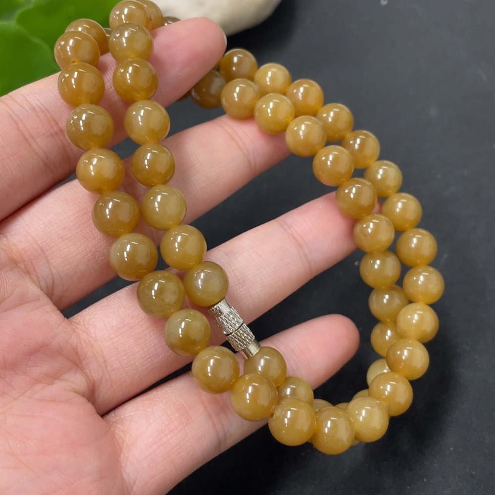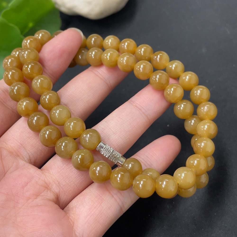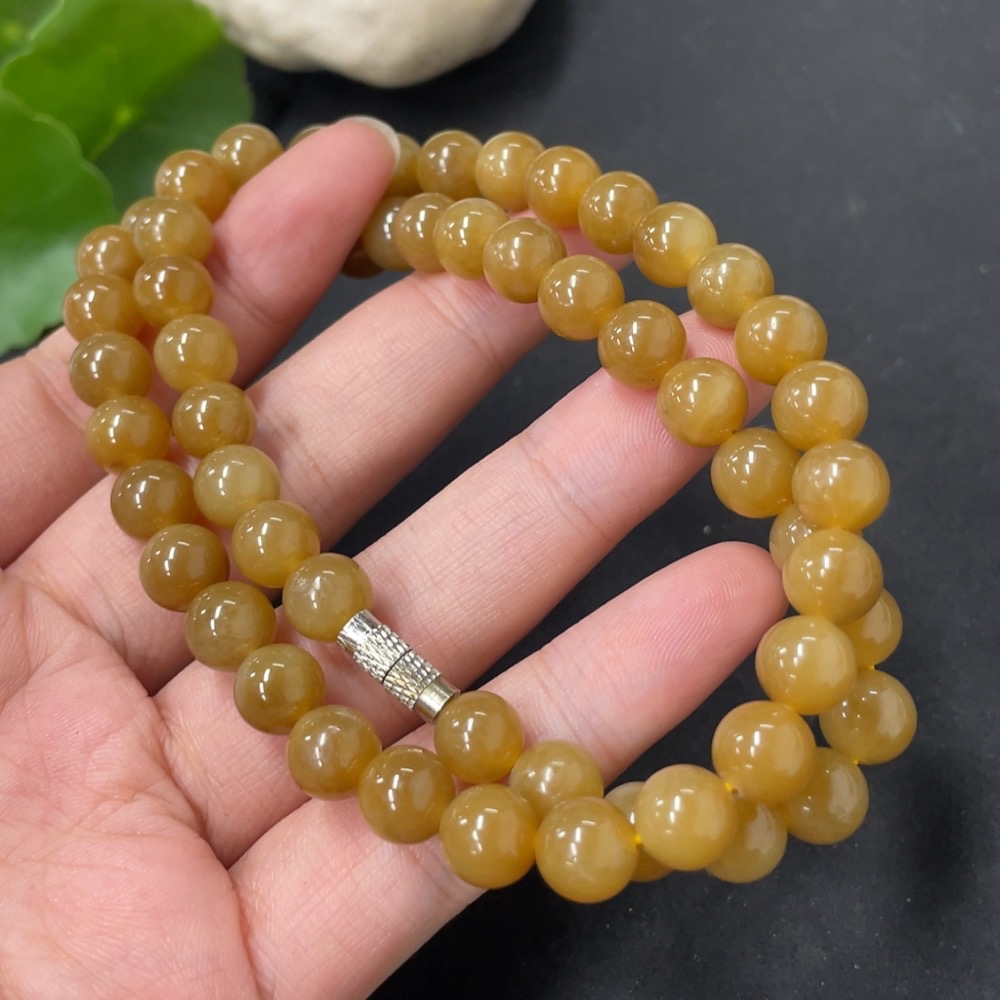 Hetian Jade Bead Necklace Approx. 7.7mm Total Weight About 44.6g Non-Gold