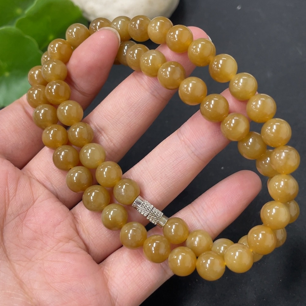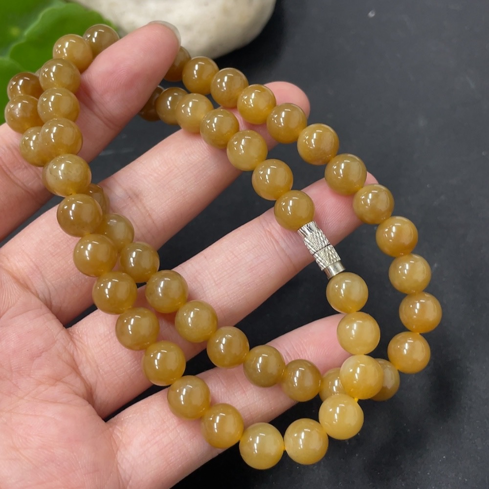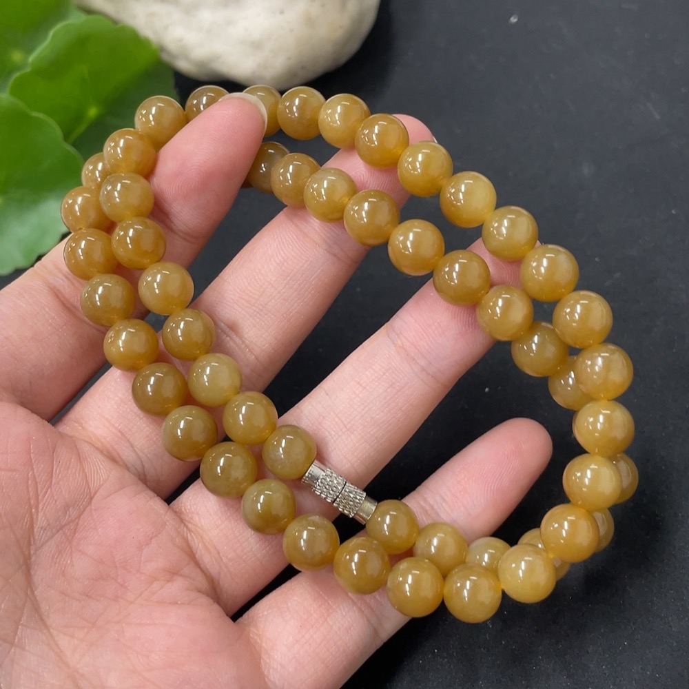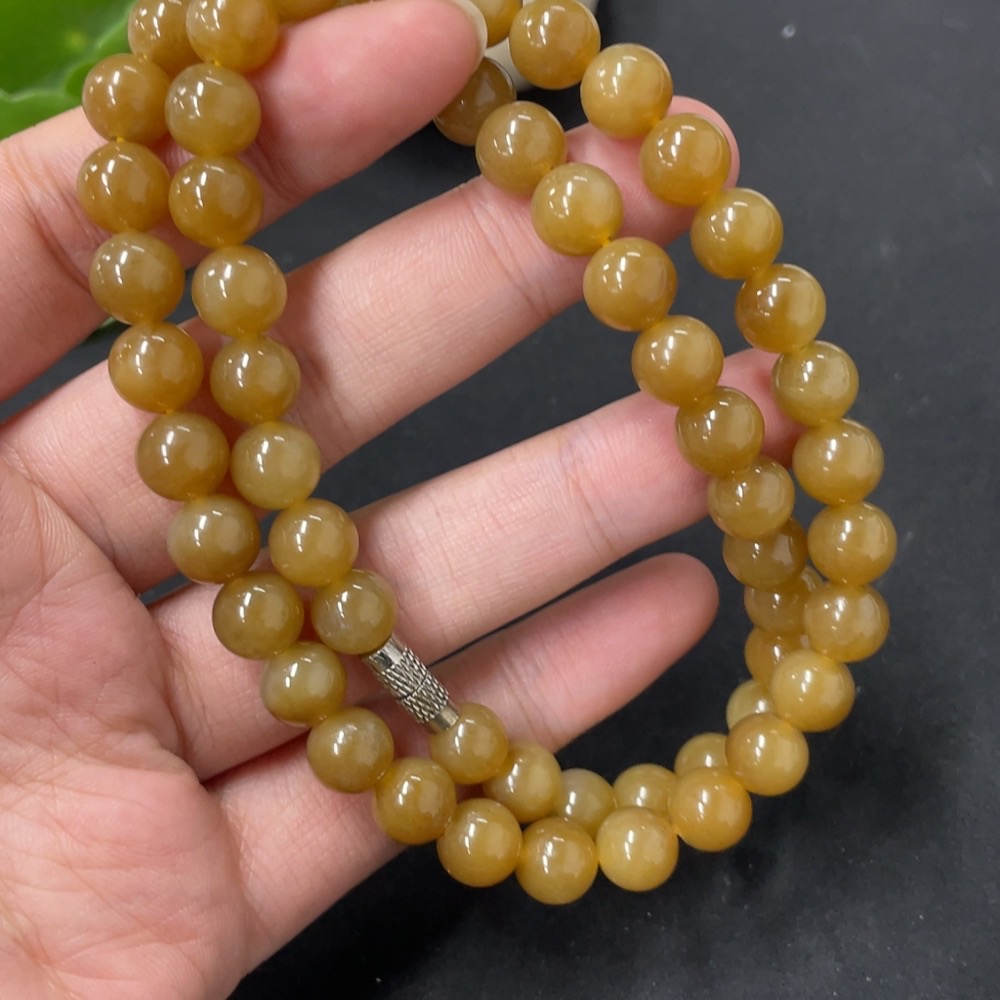 Hetian Jade Bead Necklace Approx. 7.7mm Total Weight About 44.6g Non-Gold