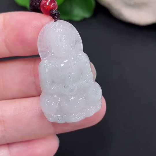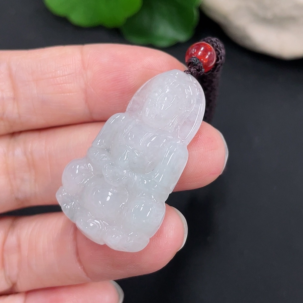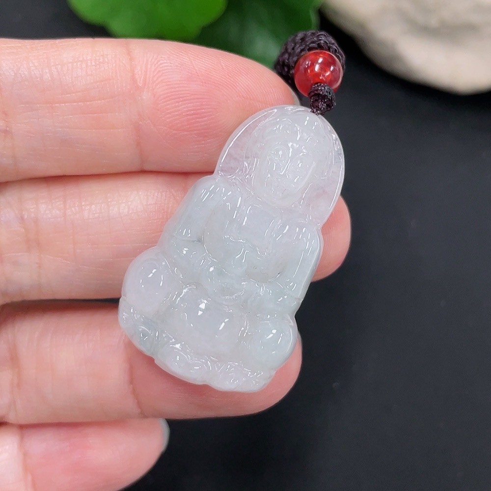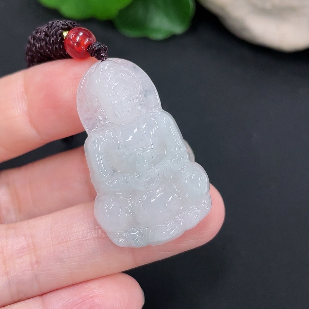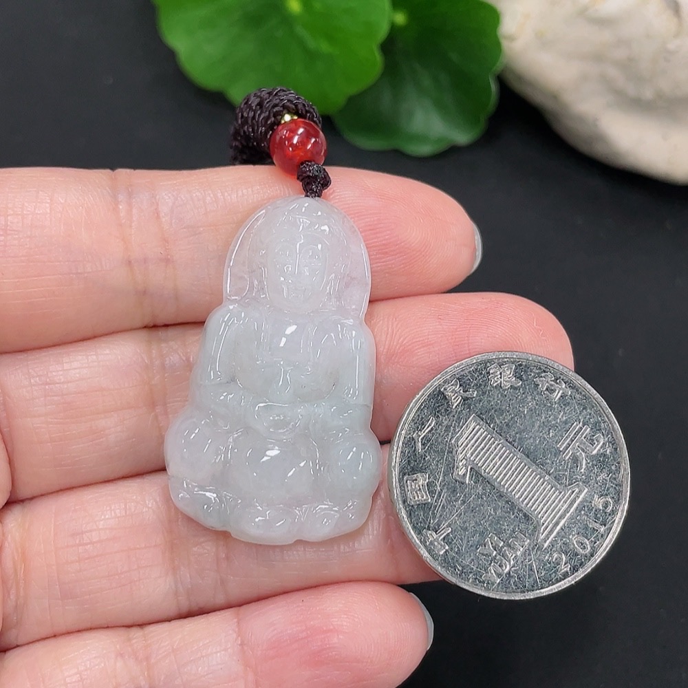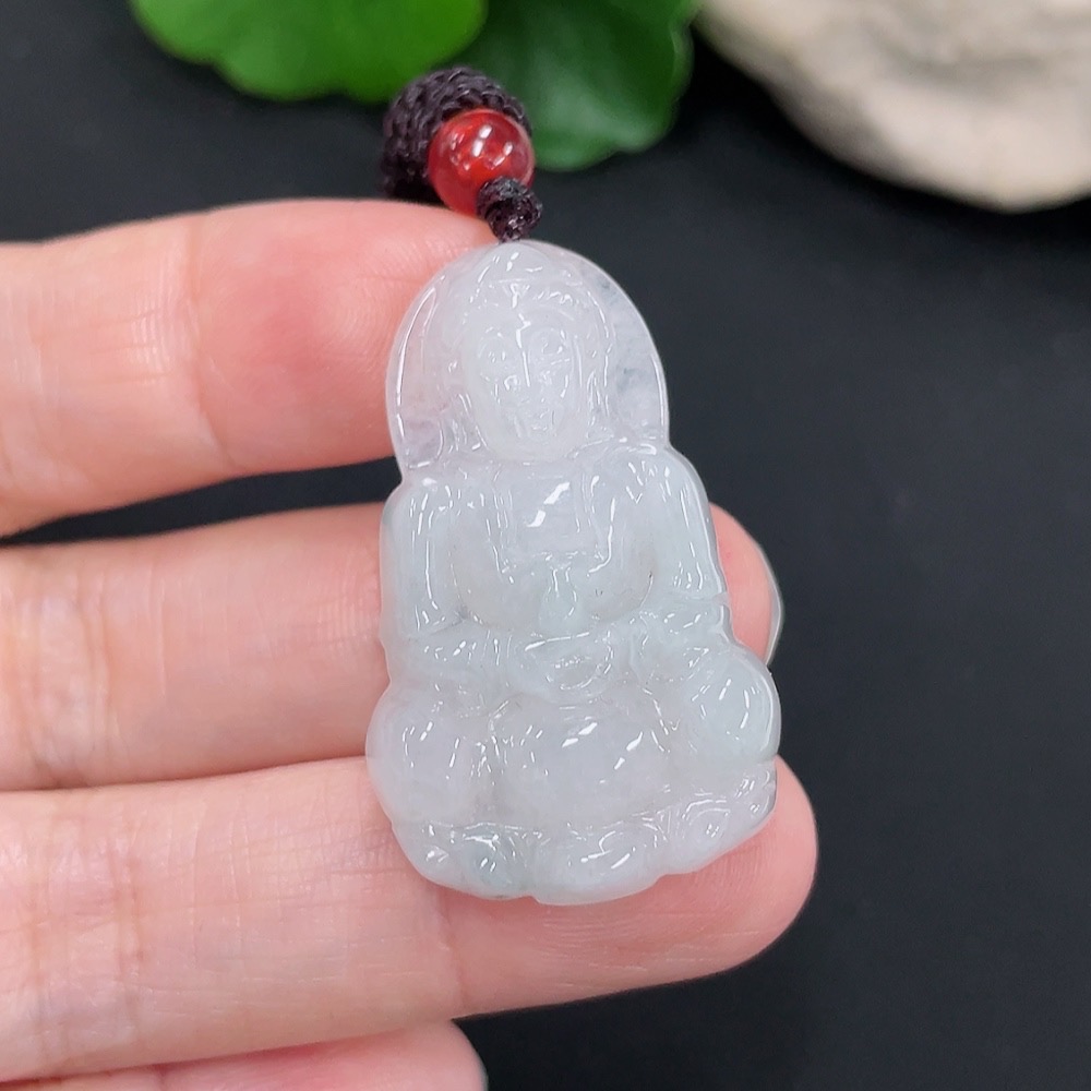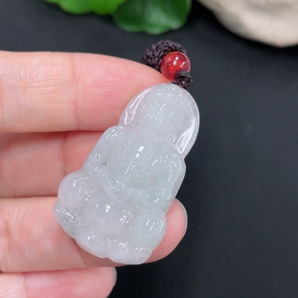 Jadeite Guanyin Pendant Total Weight Approx. 9.6g (Including Rope Weight) (Matching Beads Non-A)