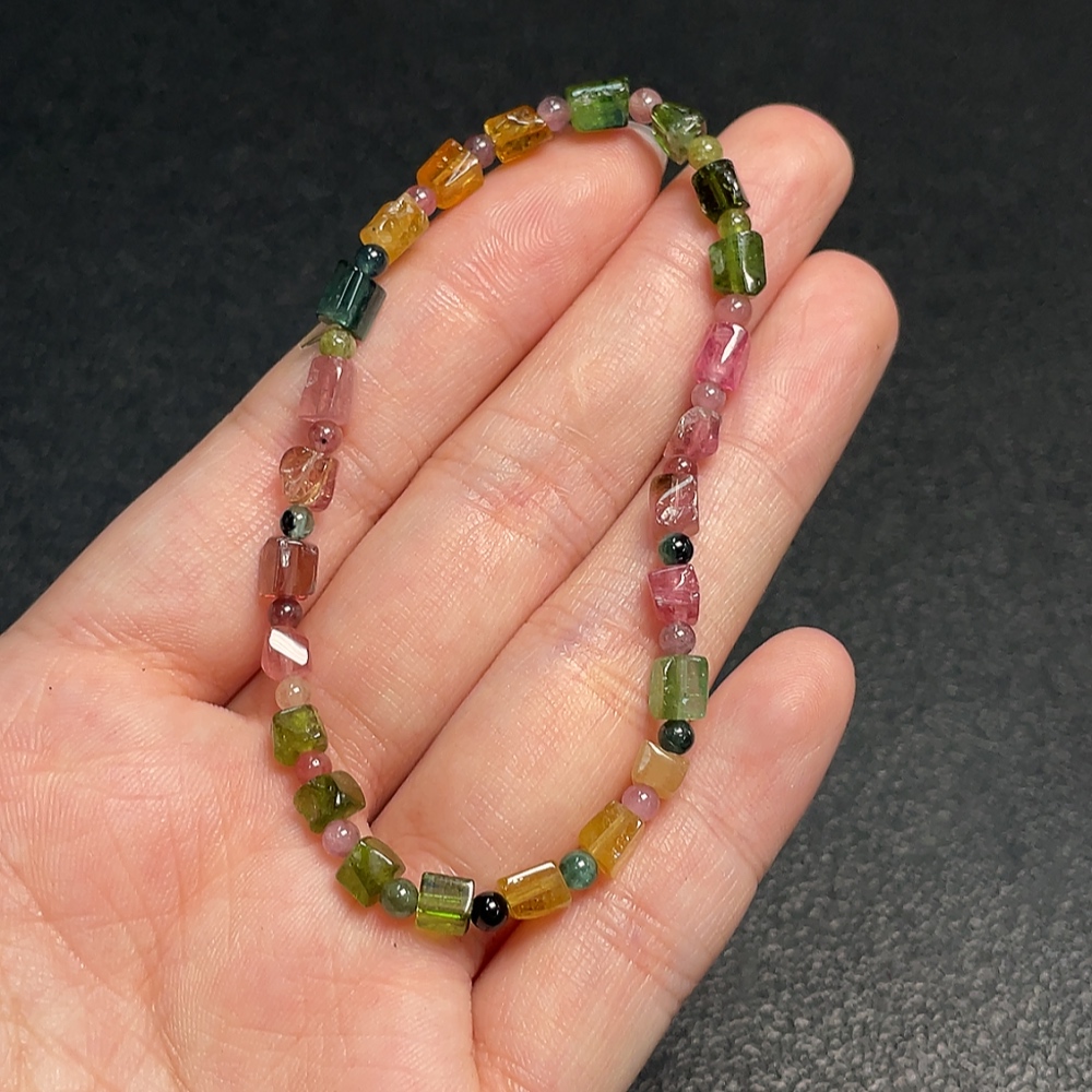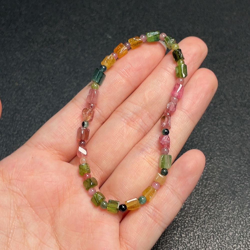 Tourmaline Bracelet with Visible Organic Matter, Total Weight Approx. 5.28g, Size 3-3.9mm